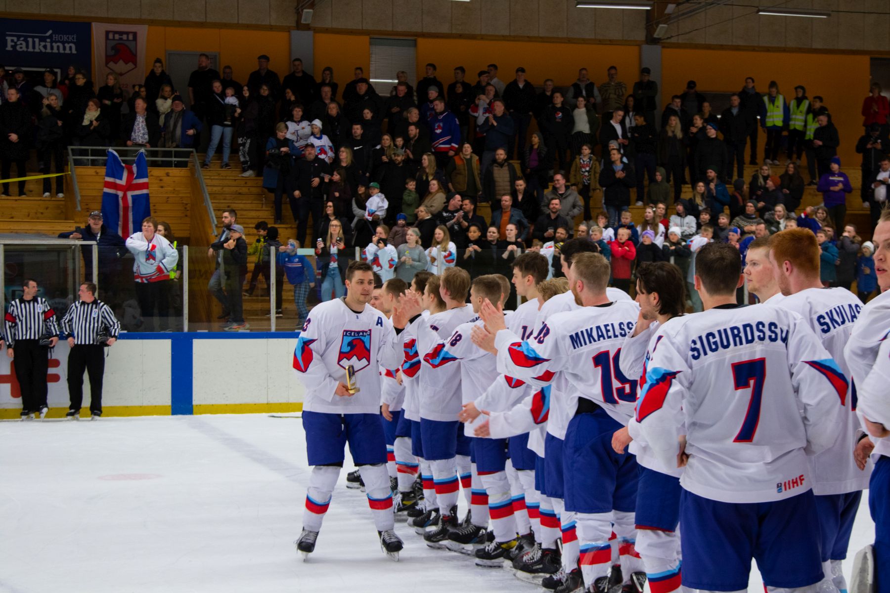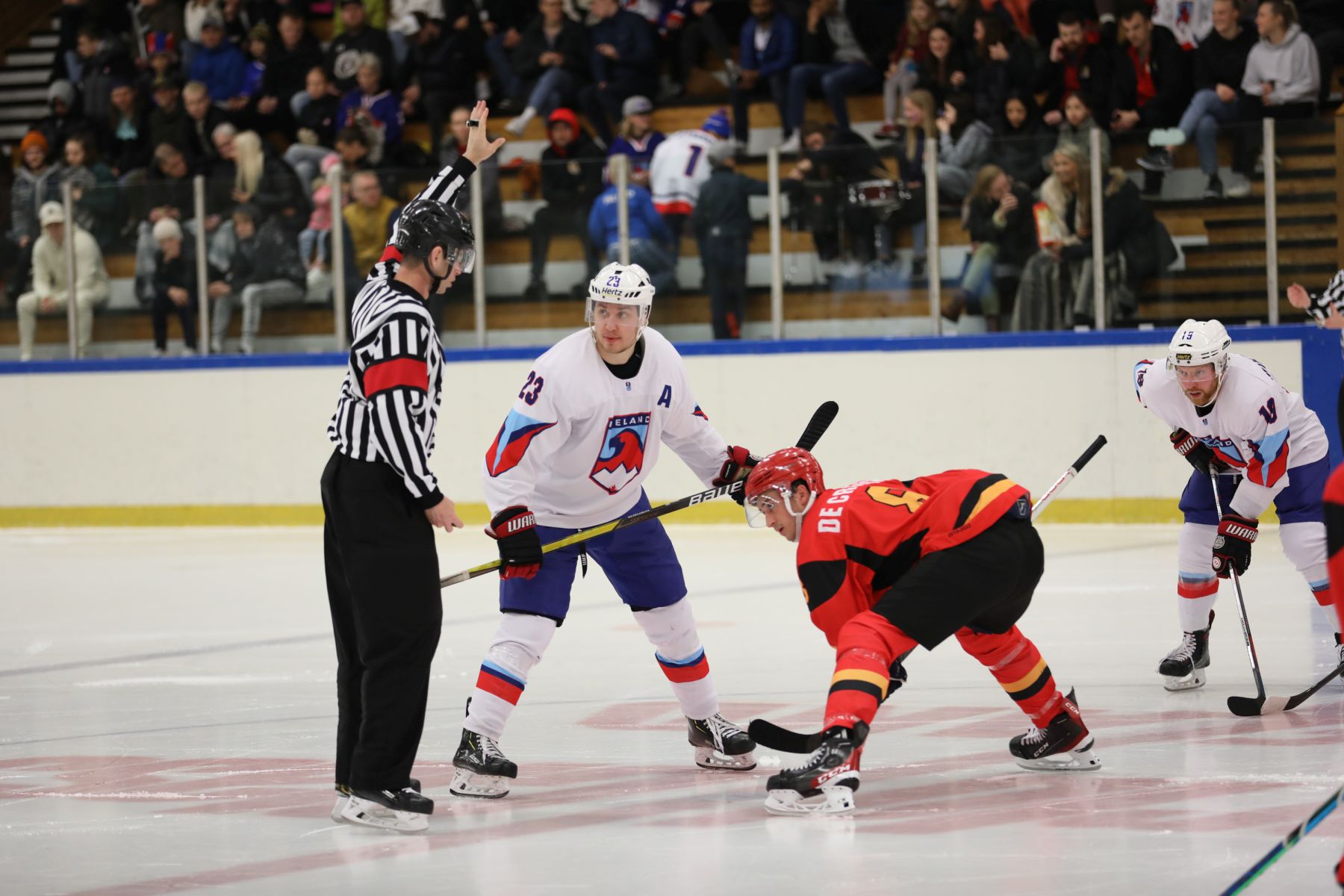 After an even first period, Belgium took lead in the second when Jacques de Ceuster potted his third goal of the tournament. Suddenly, Iceland’s grip on top spot looked less secure and Belgium was one marker away from assuming the lead. However, the home team responded with two goals in the middle frame to move ahead in the game and enliven the Laugardalur Arena crowd.