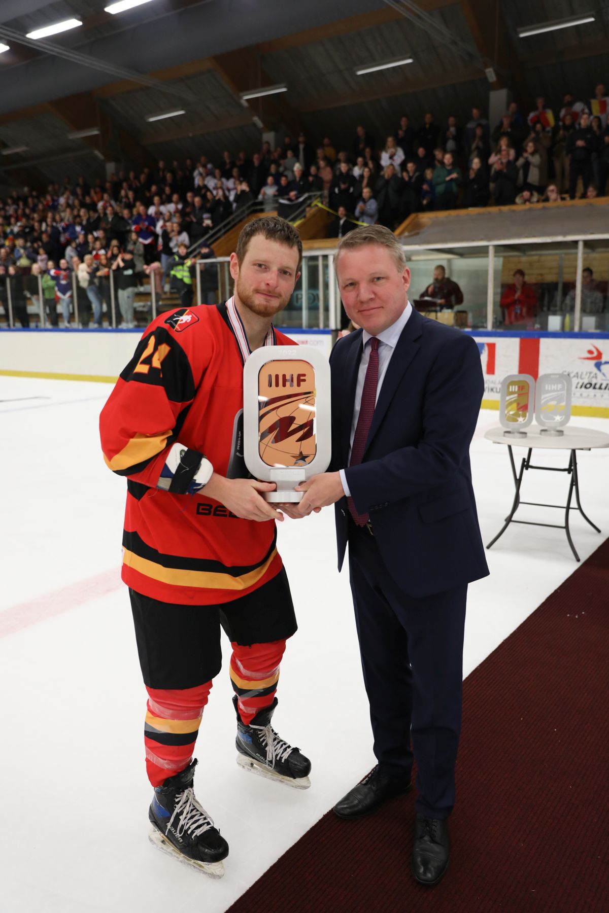 The directorate awards went to Ragnarsson (best goalie), Belgium’s Neven (best defenceman) and Leifsson (best forward).