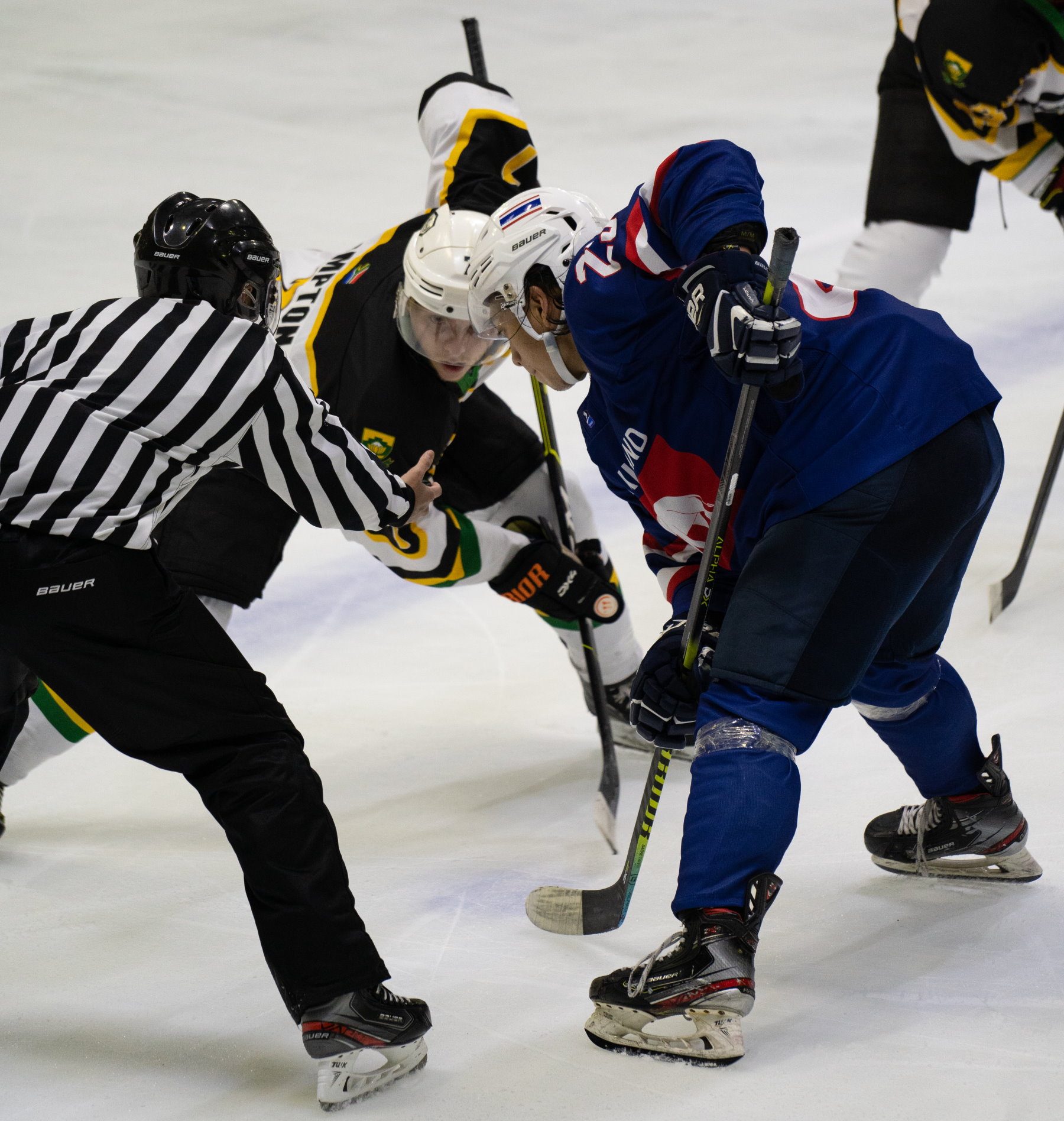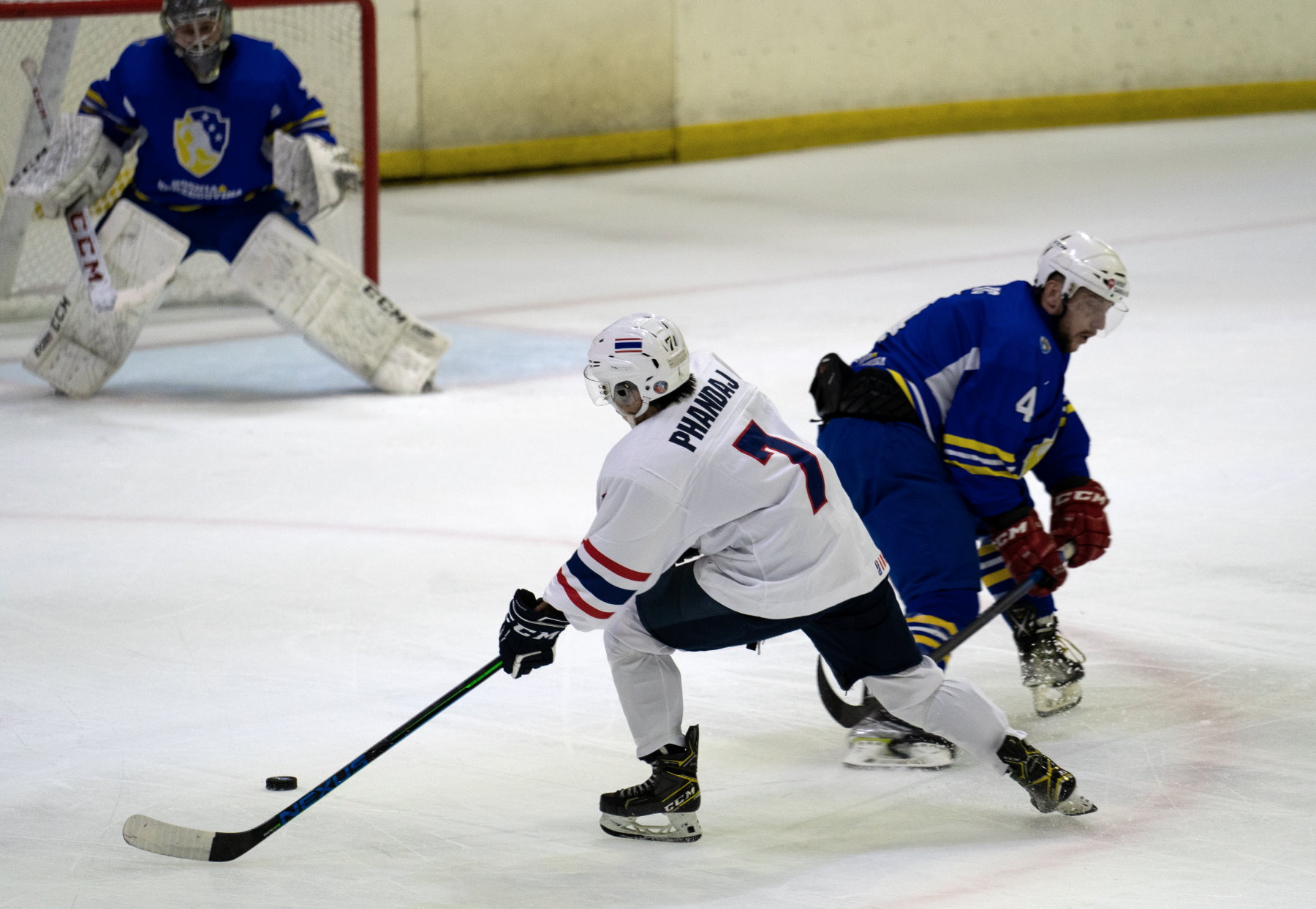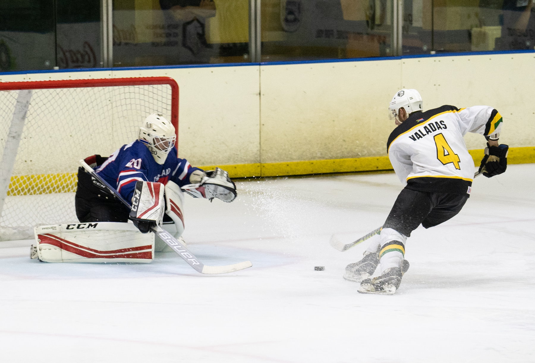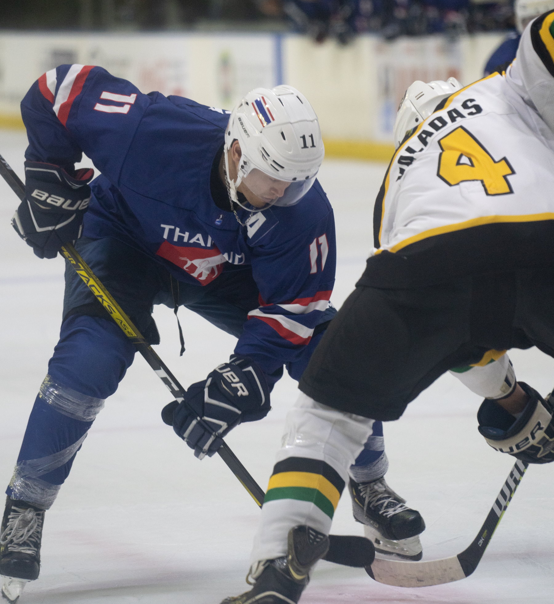 Despite losing the earlier meeting between the two countries, Thailand showed enough to suggest that it could be competitive against South Africa. And on Friday the visitor’s first-period performance was good enough to blow the whole tournament wide open. Two goals from Nattasate Phatigulsate sandwiched another from Phanaruj Surachiwat as the Thais stomped into a 3-0 lead. Early in the second, Surachiwat got his second of the game and suddenly Thailand was on course for gold.Then it all began to change. South Africa was always competitive in this game but struggled to turn chances into goals. However, in the 36th minute captain Uthmann Samaai set up John Ventner at the point and the defender’s shot, although it lacked power, somehow squirmed through the equipment of goalie Benjamin Kleinechay. Thailand still had a commanding lead in the game, but South Africa was back on top in the standings.