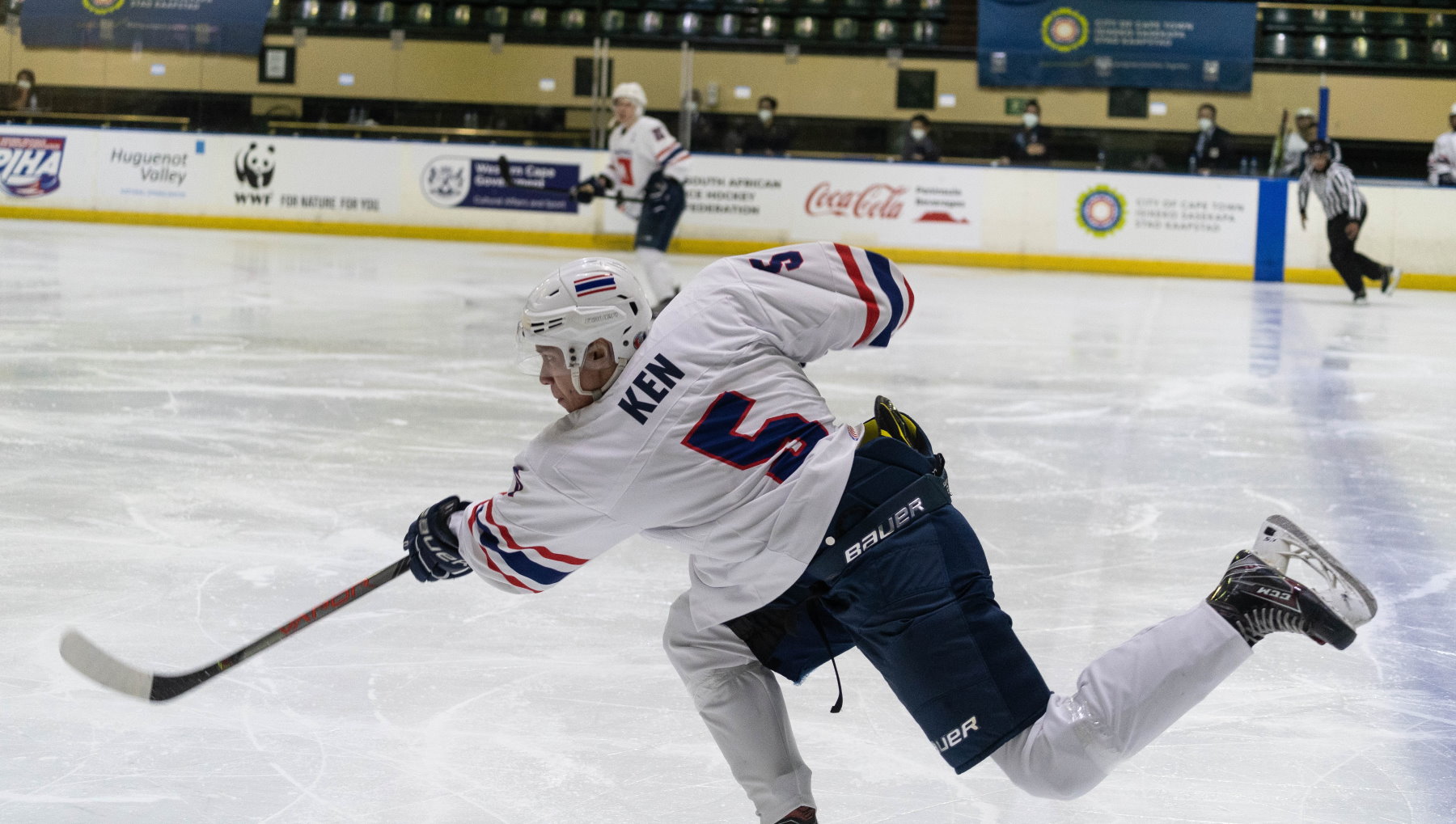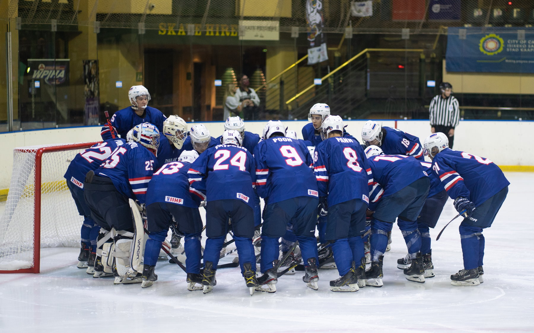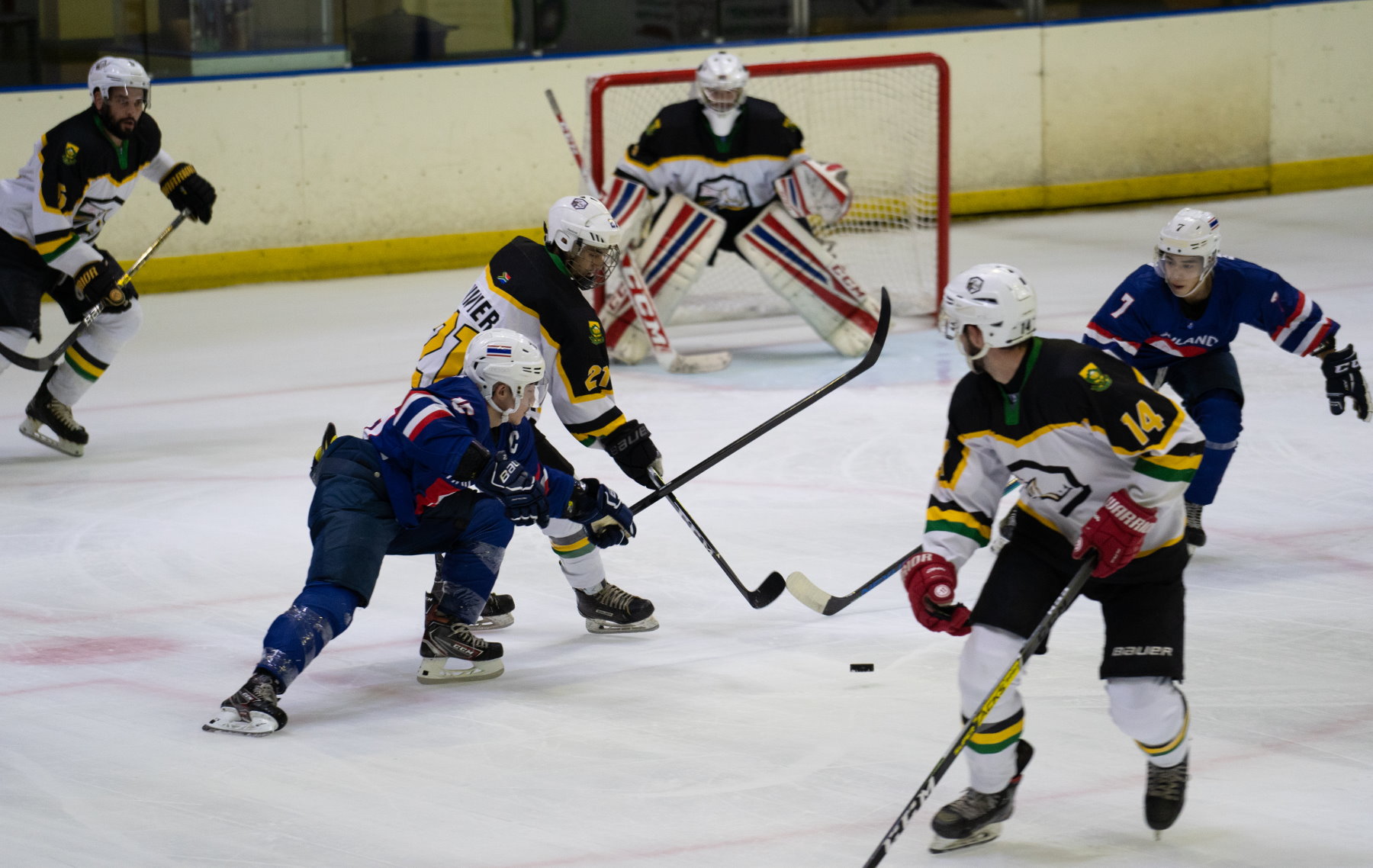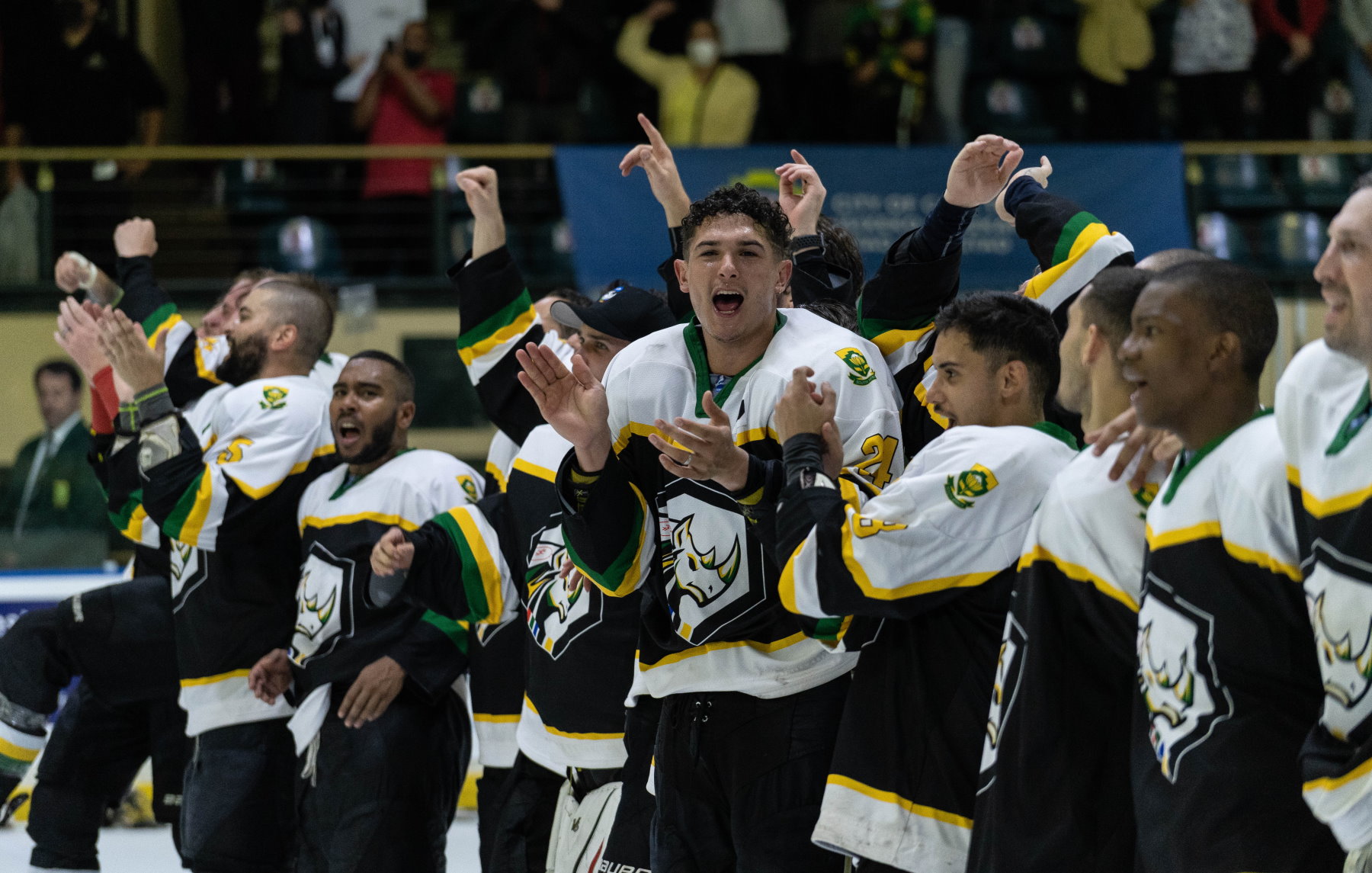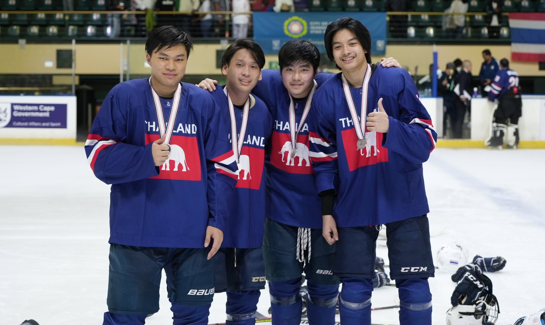 Yet that penalty kill turned the game upside down, with captain Samaai to the fore. The Rhinos scored two short-handed goals, one either side of the intermission, to tilt the game and the tournament back in their favour. First, Samaai led the rush and Luke Carelse followed up to shoot home the rebound after the initial shot was padded away. Then, after the break, Samaai did it all himself, bursting through a startled Thai defence and winning his duel with Kleinechay. Ninety seconds later, Stefan Kluyts got it back to 4-5 and the Thais called a time-out but could not find a way to rebuild their lead.Given the situation in the tournament, fans at Cape Town’s Ice Station arena were treated to the unusual sight of a team withdrawing the goalie while leading the game. Stranger still, head coach Juhani Ijaes – Finnish born, but based in Thailand since 2016 as a coach and sometime player – called Kleinechay to the bench with 7:27 remaining. With three goals needed, it was a brave gambit but on this occasion, courage went unrewarded. South Africa survived a shot against its post and forced a turnover before Jean-Michel van Doesburgh scored into the empty net to tie the game.