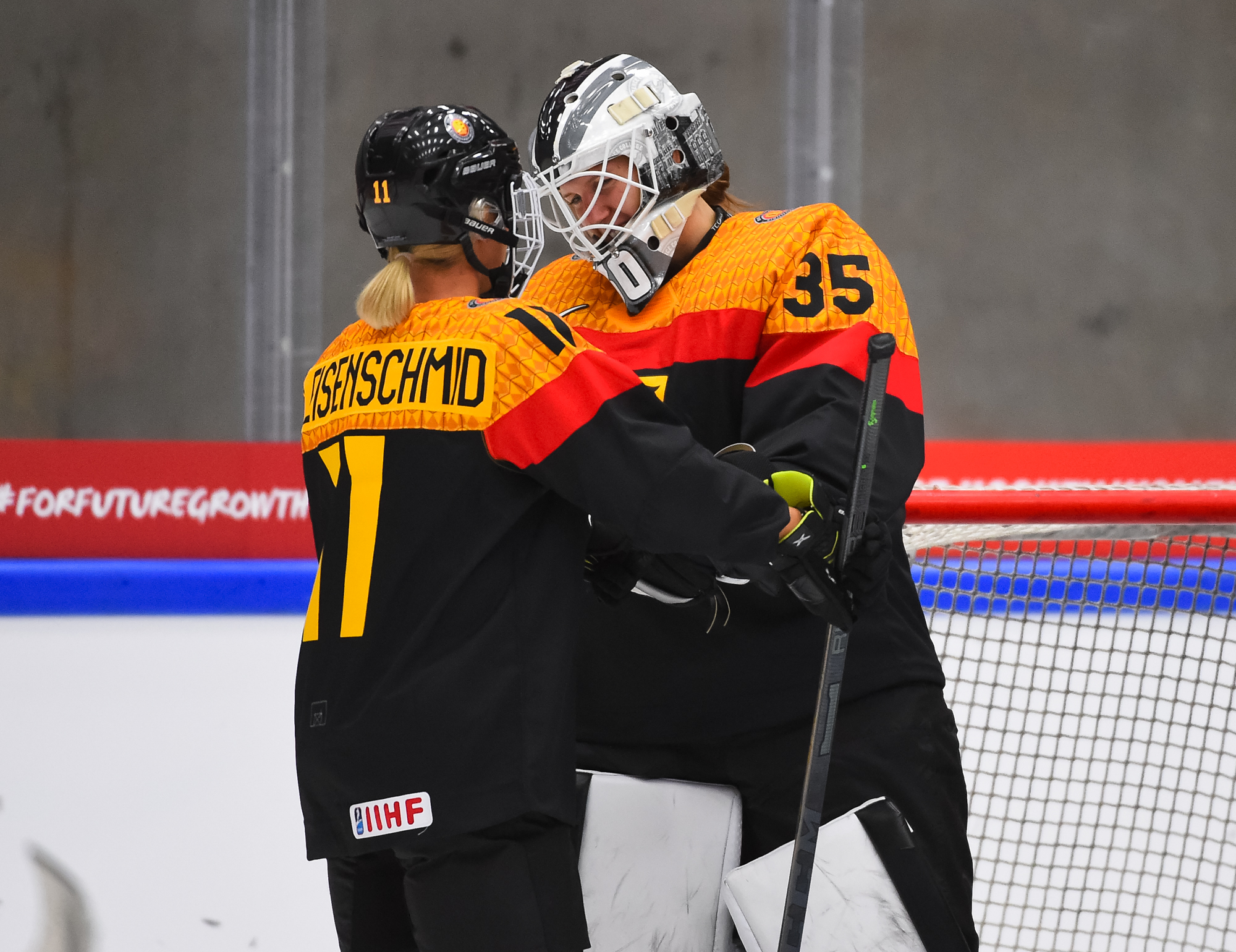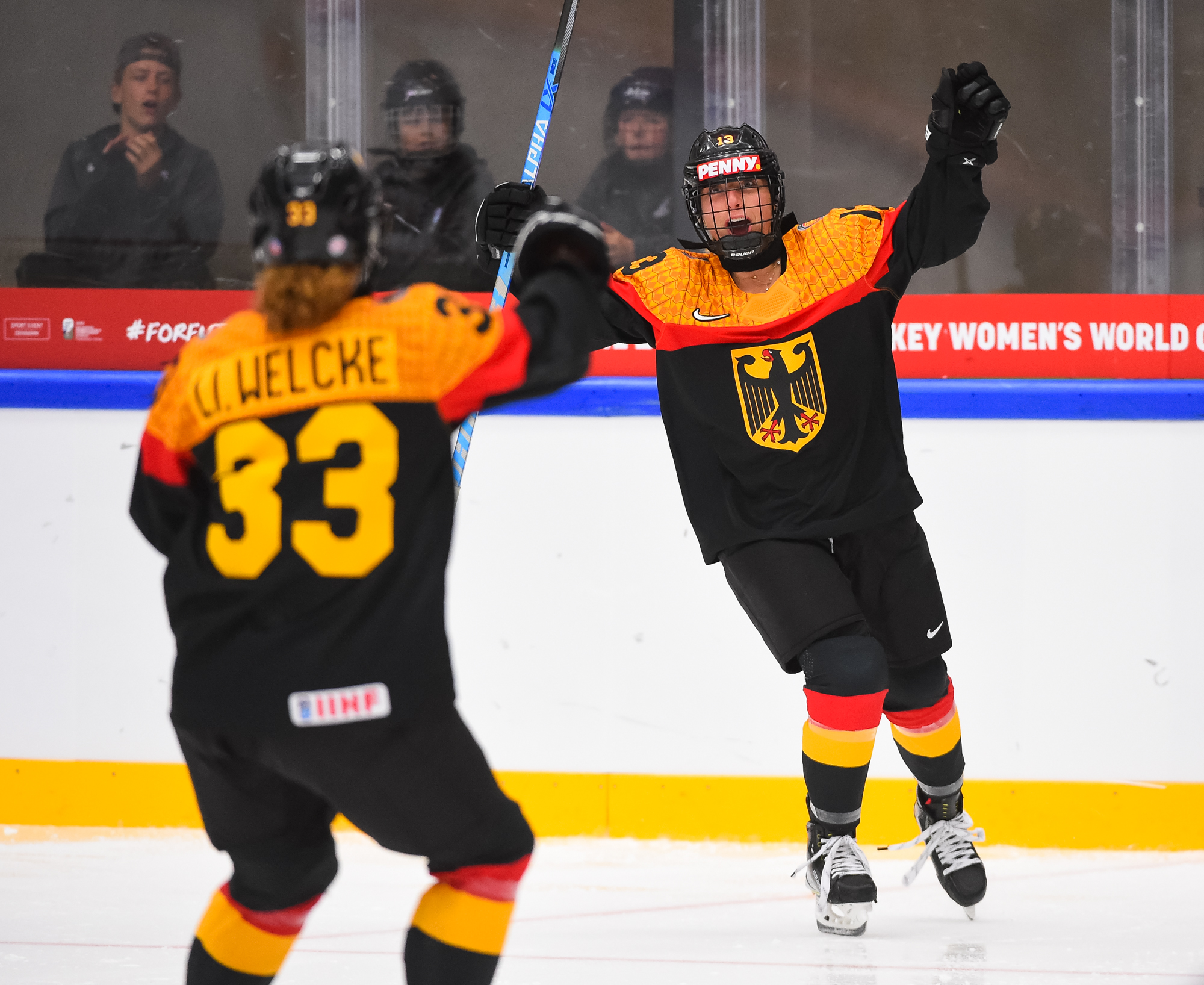 Germany took a 2-0 lead within the first 11 minutes, with Luisa Welcke opening scoring off of a long pass up centre ice from Heidi Strompf. Playing on a line with her twin Lilli, who will join her at the University of Maine this fall, and centre Bernadette Karpf, this was a monumental moment for Welcke.