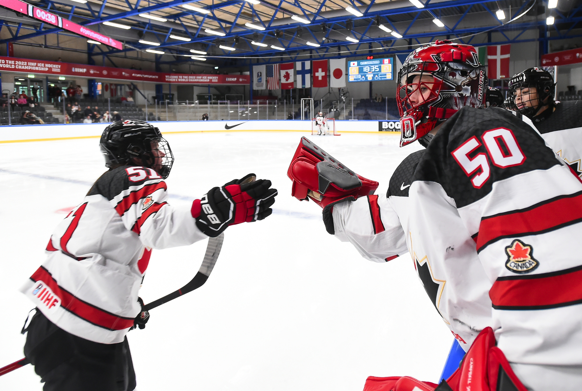 Shots favoured Canada, 69-5. Emerance Machmeyer, making her first appearance here, got credit for what will surely be the easiest shutout of her career.