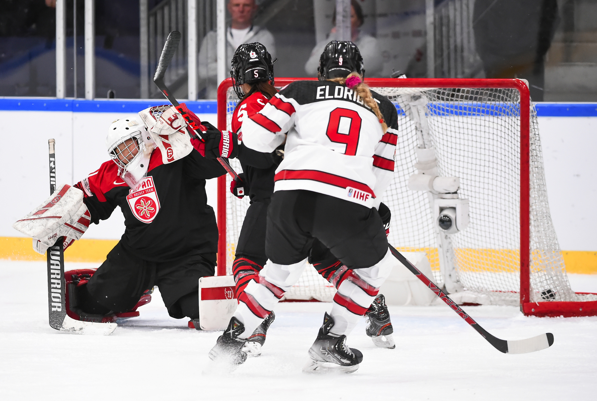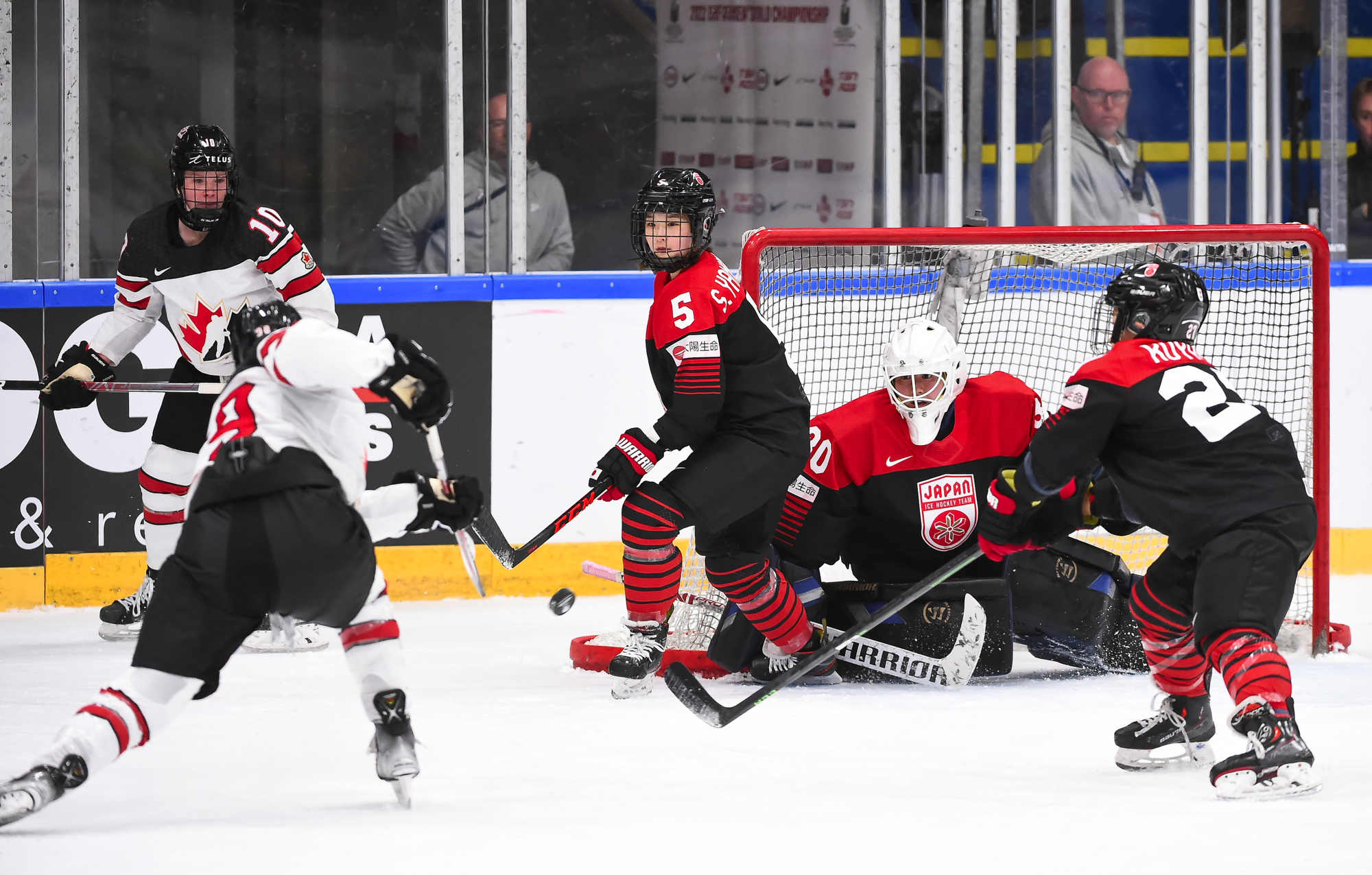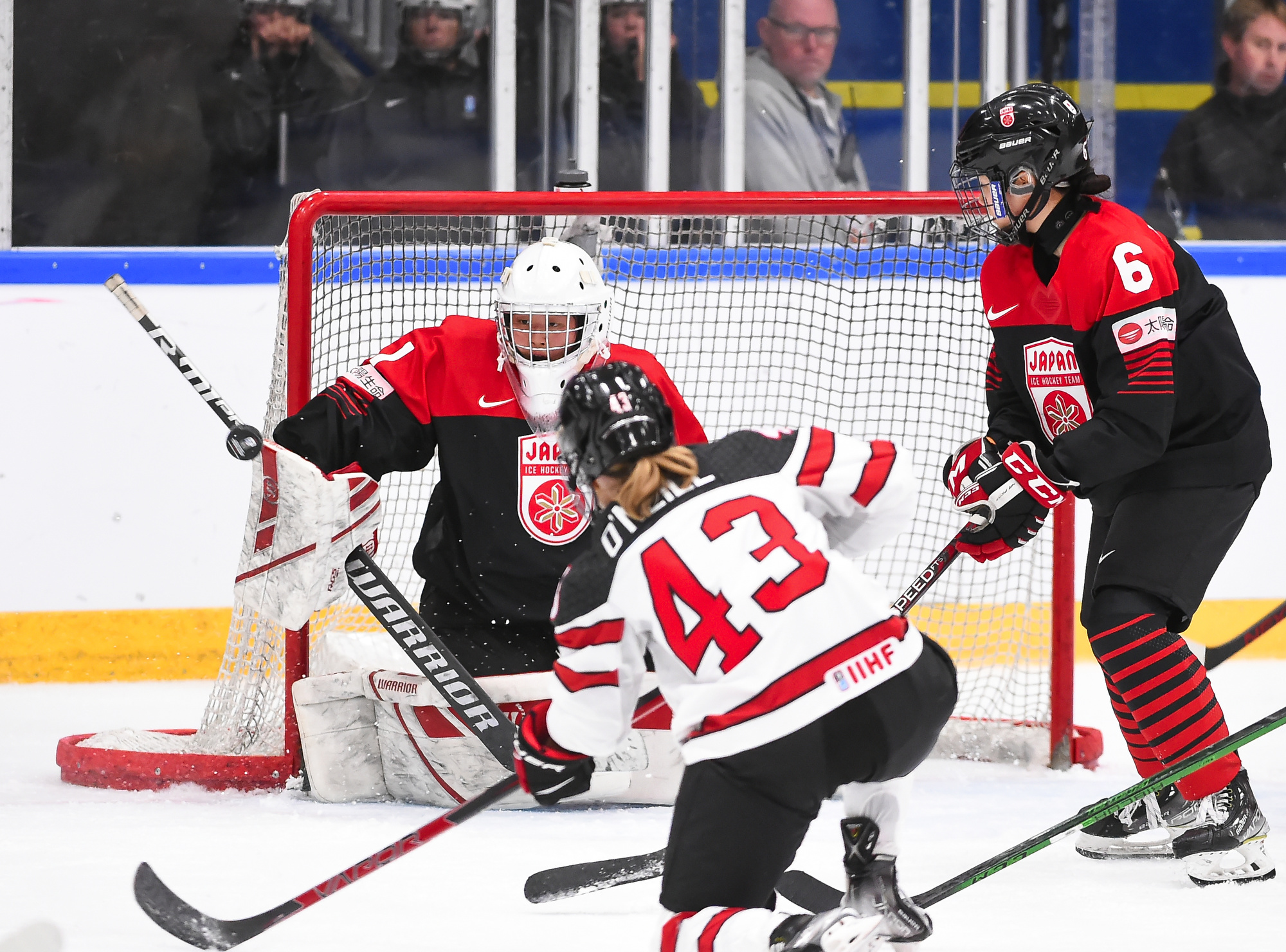 Japan knew life in Group A of the Women’s Worlds would be radically different from Group B, and today they got a reminder of just how different. Canada stormed their goal for 60 minutes and skated to a 9-0 win this afternoon to re-join the United States at the top of the Group A standings.
