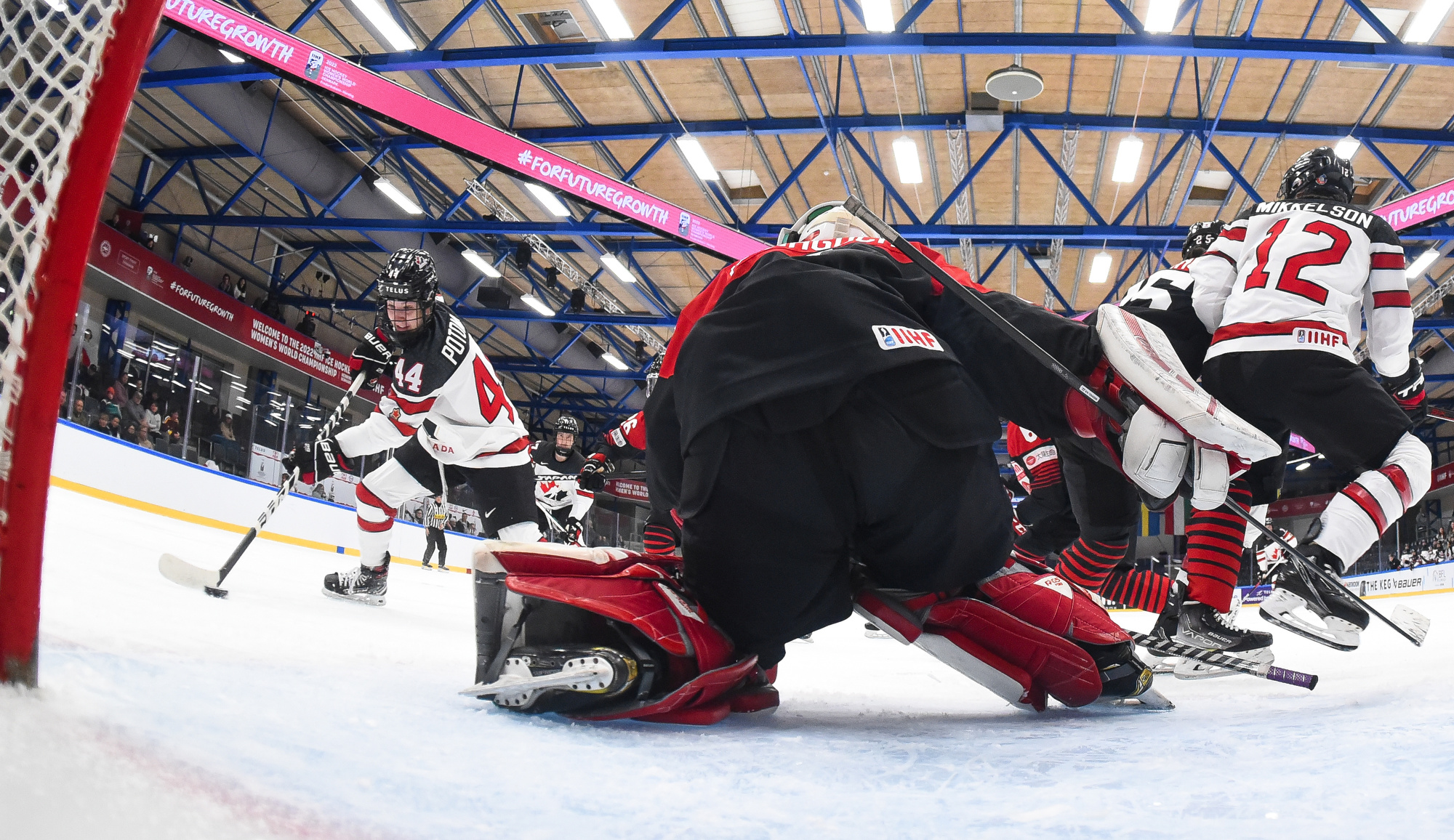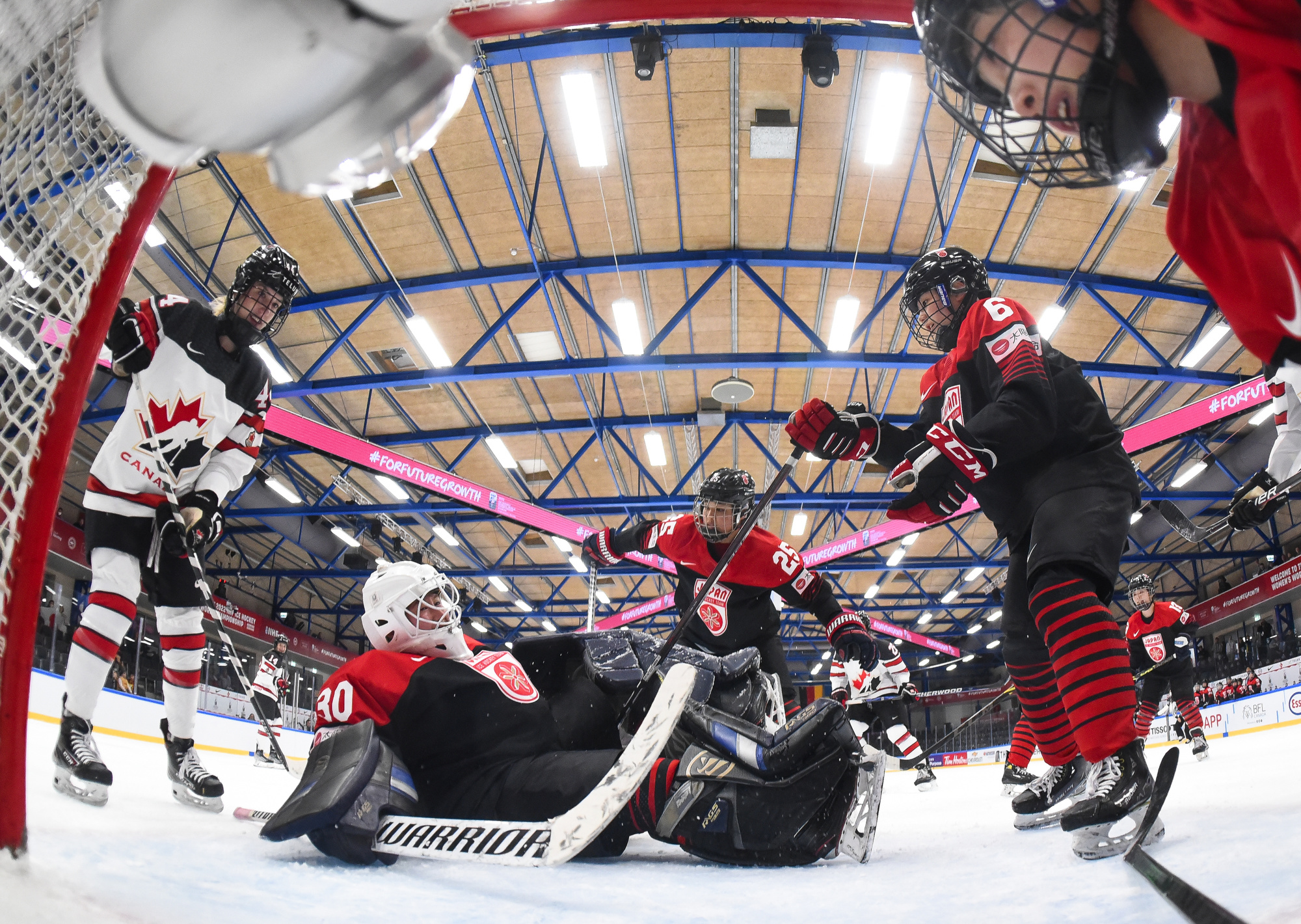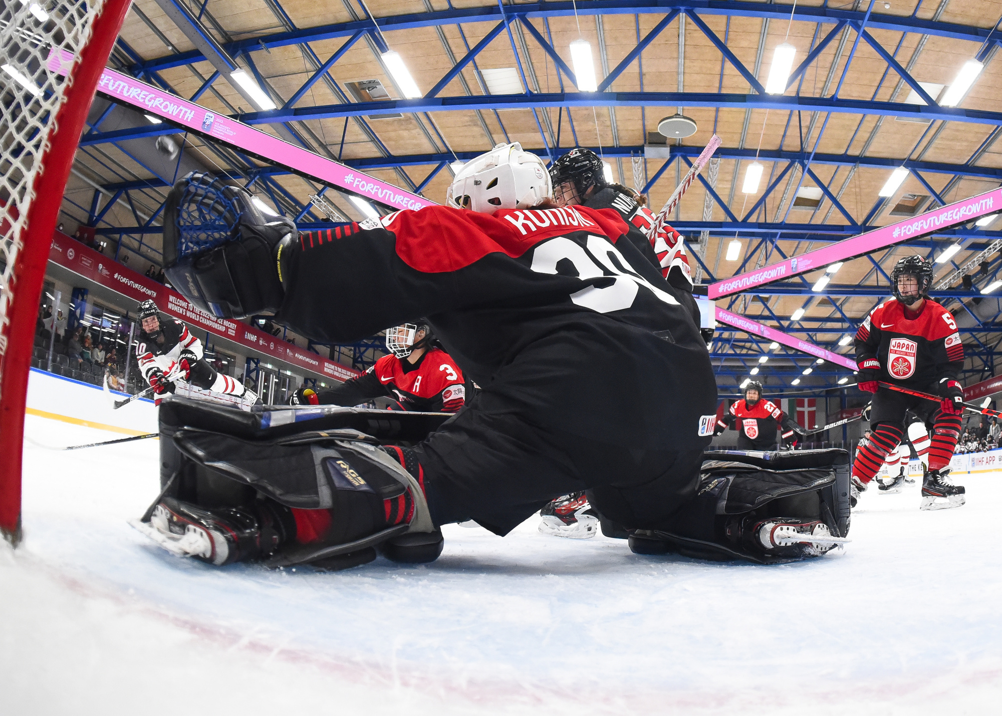 Japan knew life in Group A of the Women’s Worlds would be radically different from Group B, and today they got a reminder of just how different. Canada stormed their goal for 60 minutes and skated to a 9-0 win this afternoon to re-join the United States at the top of the Group A standings.