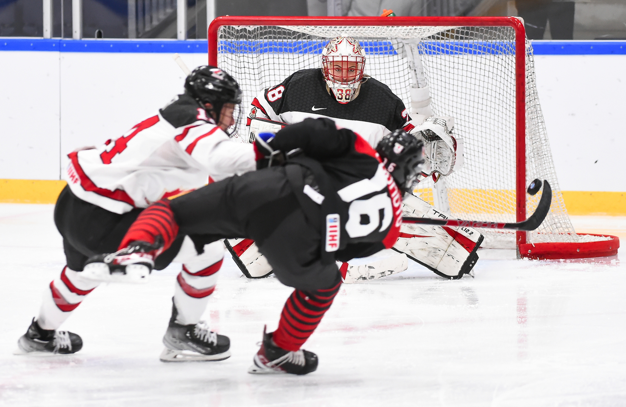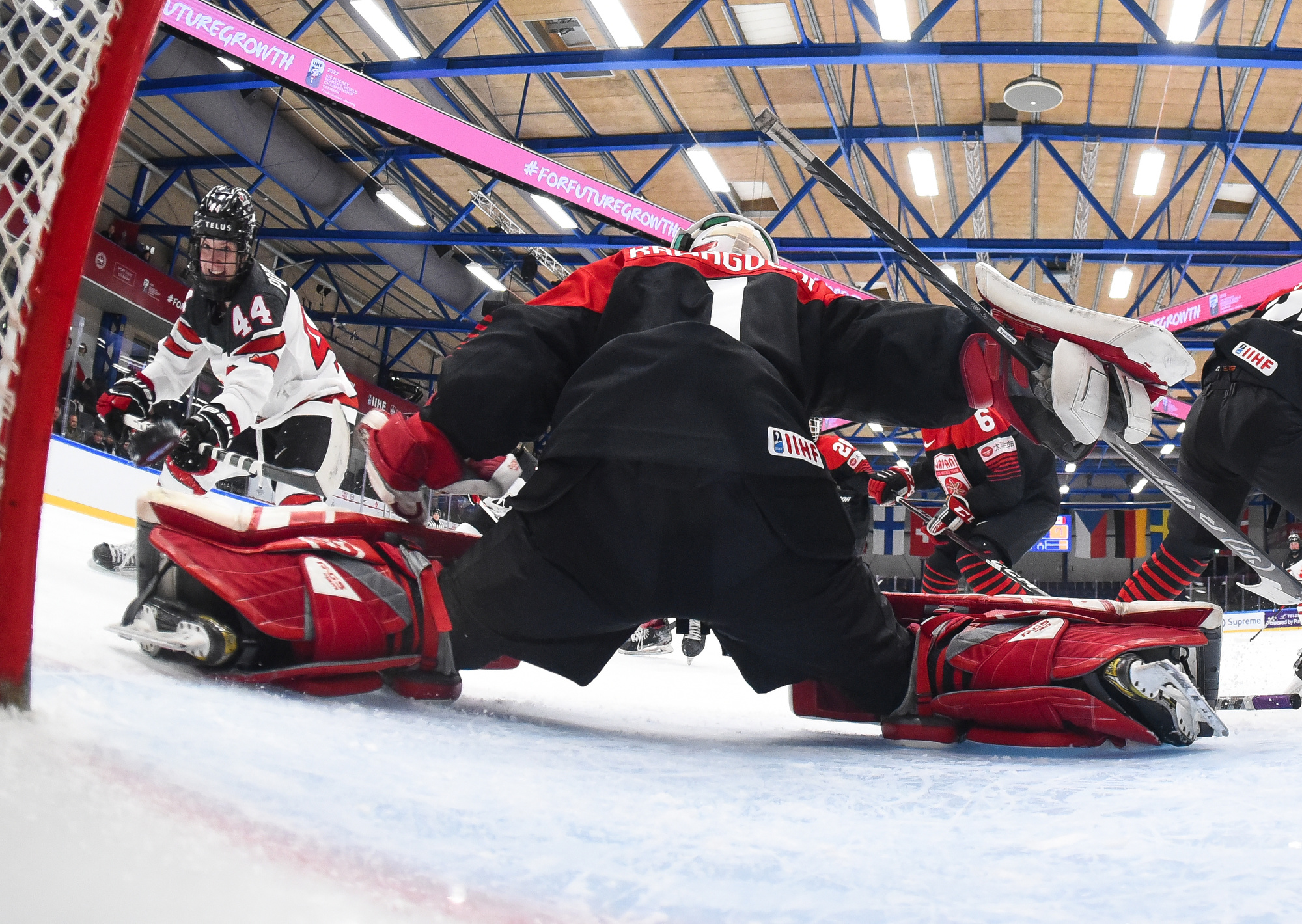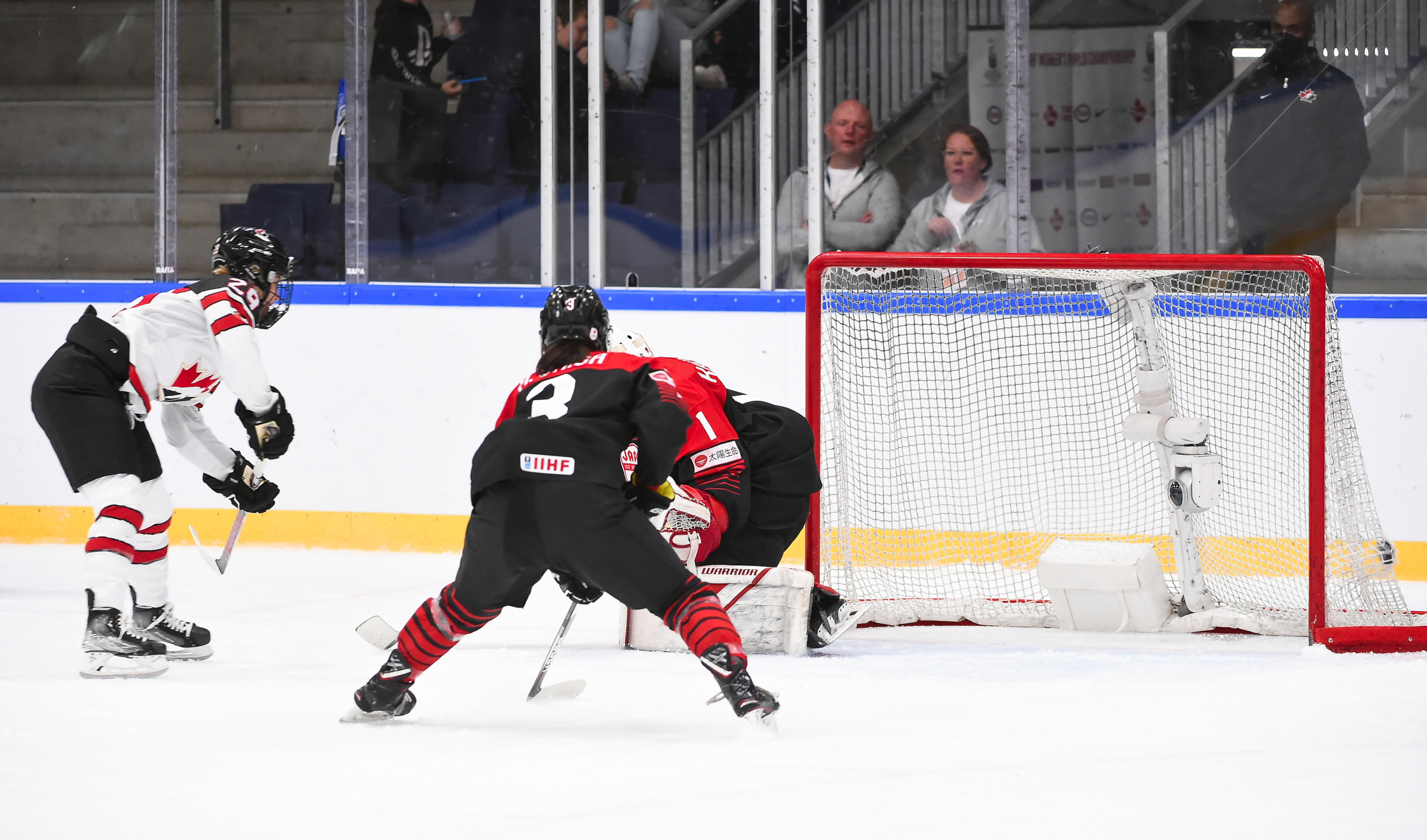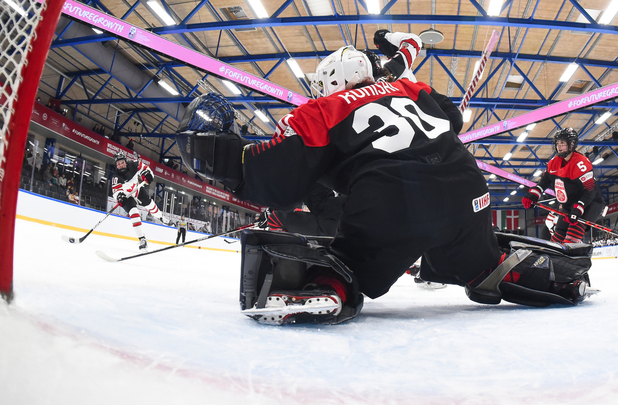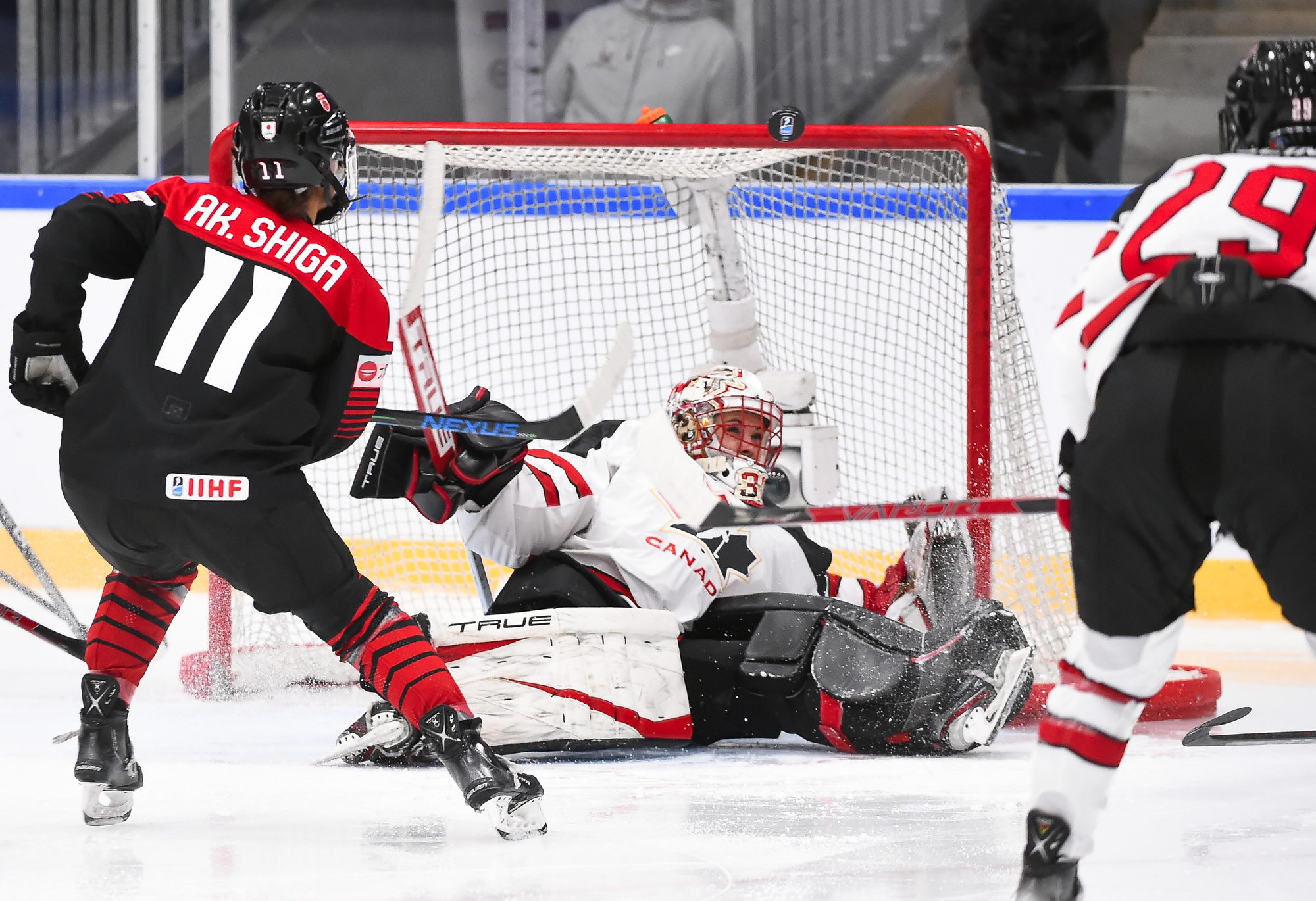 Japan failed to get a shot in the first period and didn’t test Maschmeyer until the second period had only 19 seconds left in it. She made a nice save in front on Akane Shiga, but by this time it was a 7-0 game. Canada made it 4-0 at 2:26 when Blayre Turnbull scored.