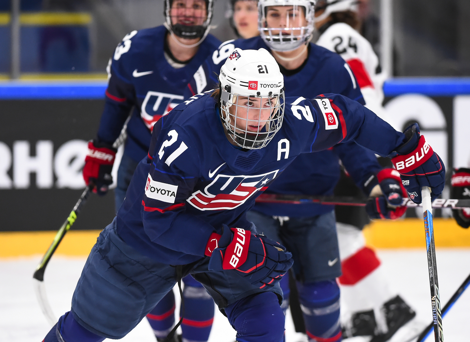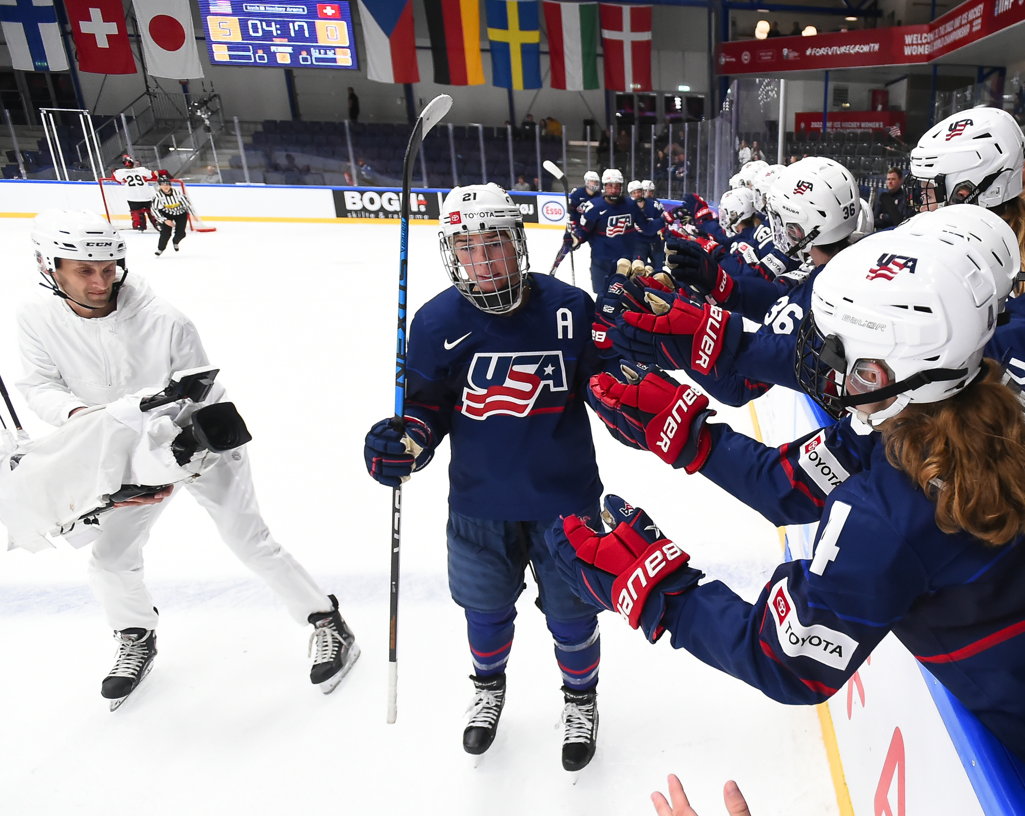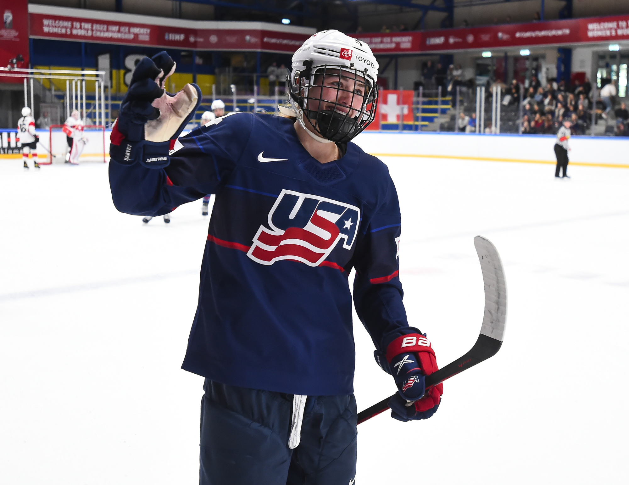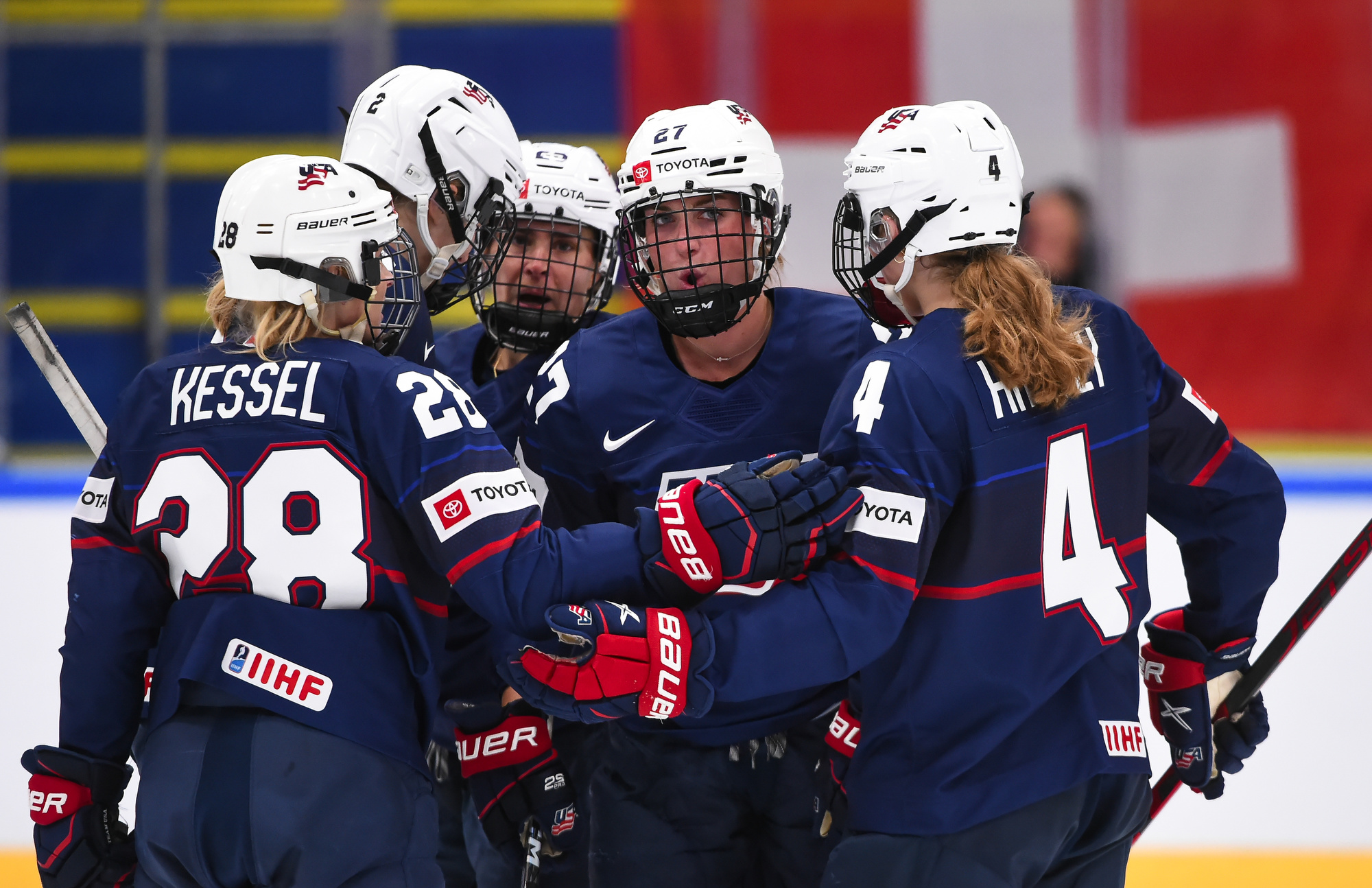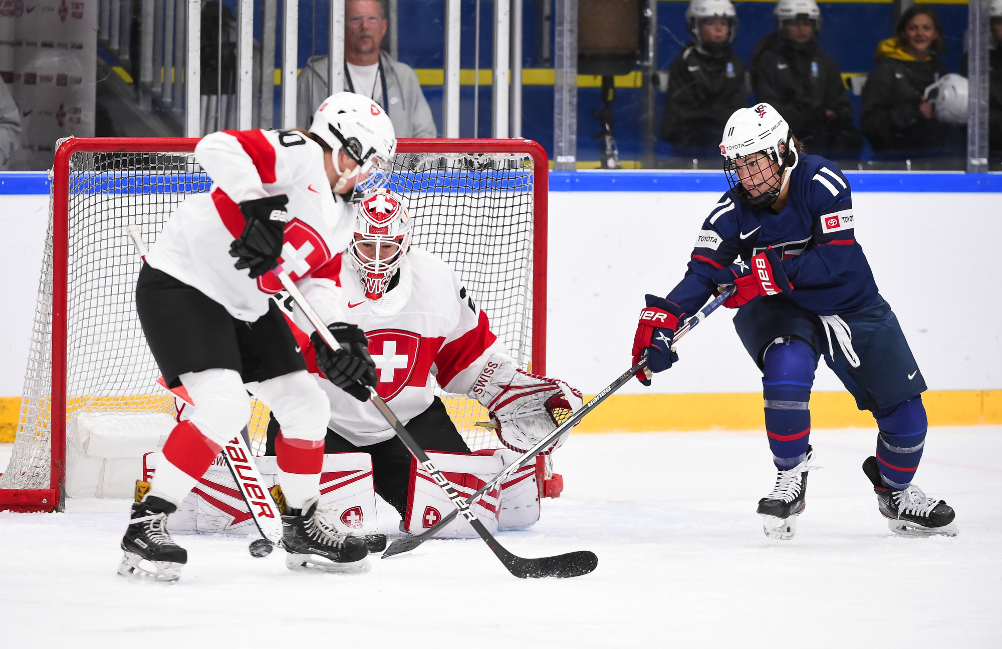 Taylor Heise scored two of the U.S.’s four goals in the first period to set up a dominant 9-0 win over Switzerland tonight in Herning. The win keeps the U.S. even with Canada, both with 3-0 records, and sets up a showdown between the North Americans tomorrow night for first place in Group A and what could be a potential preview to the gold medal game on Sunday.