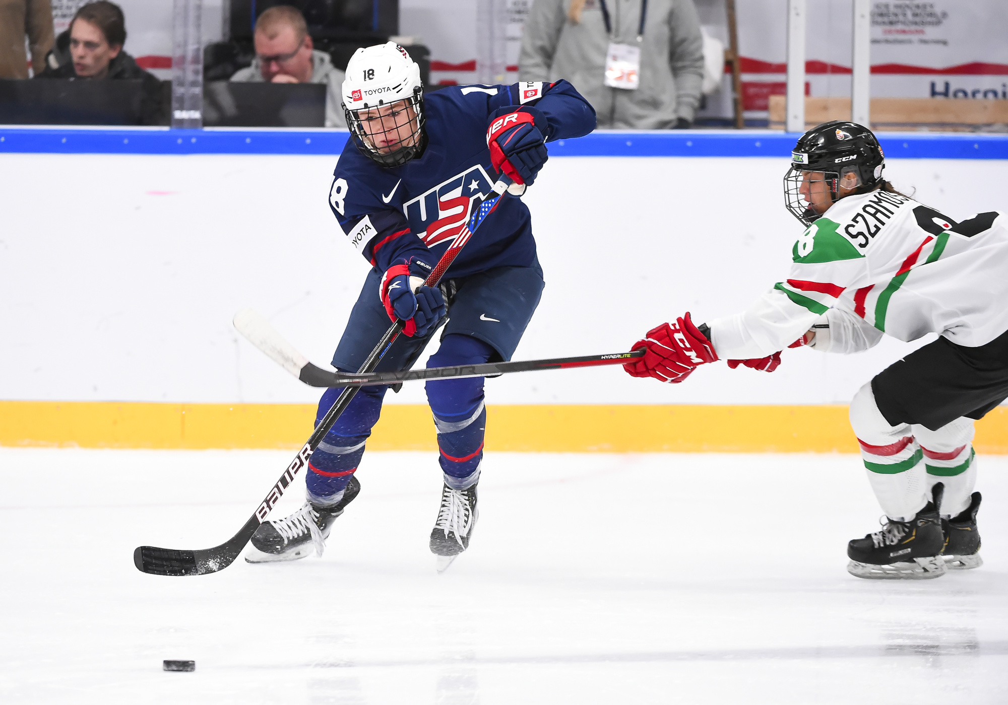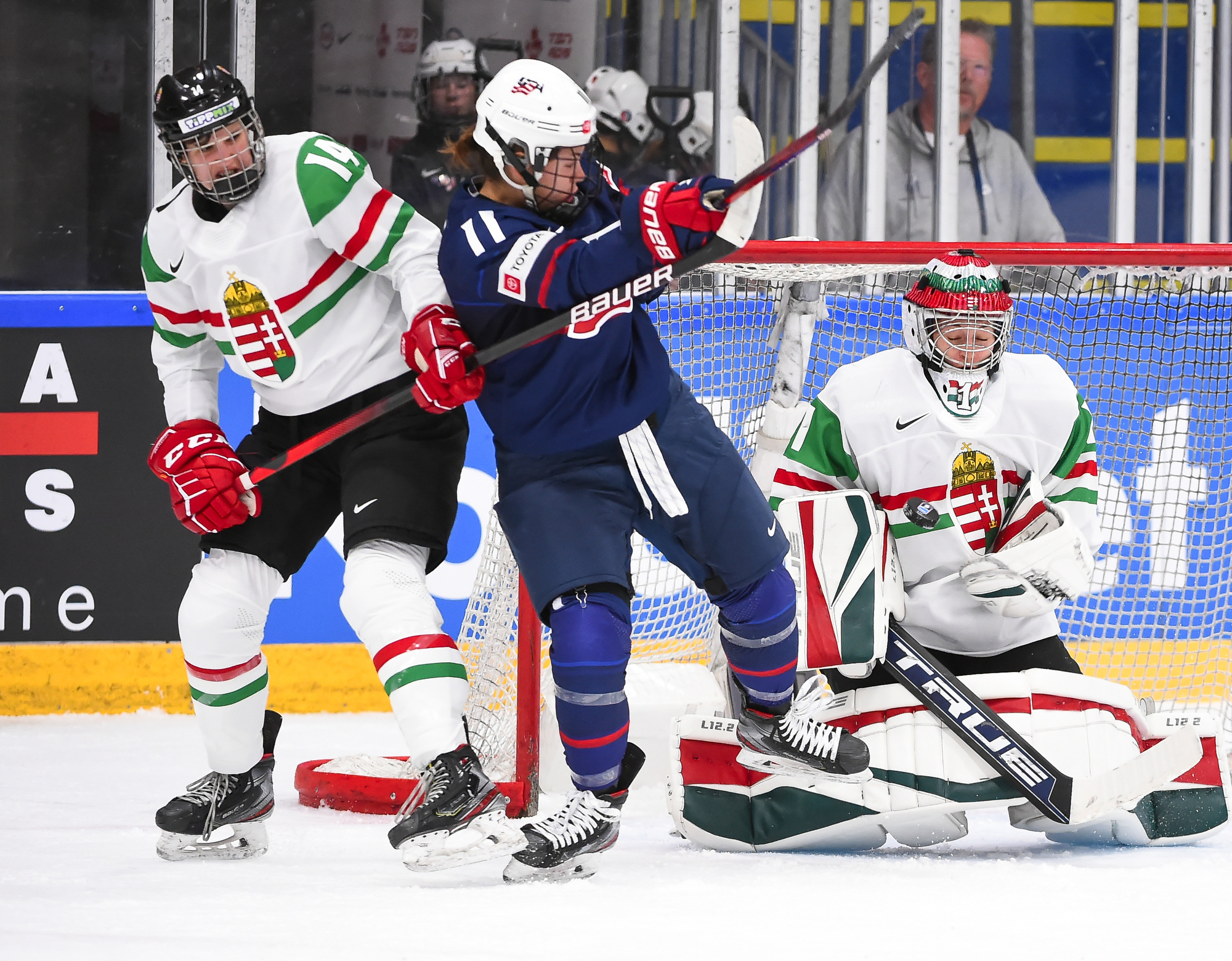 Hungary blocked shots, got sticks on others, and played superbly around their net. The only goal came off the rush, when Taylor Heise snapped a long shot between two defenders that fooled Nemeth at 1:36. But the goalie settled down and stopped 18 of 19 shots she faced while her teammates managed only one harmless shot on Nicole Hensley.