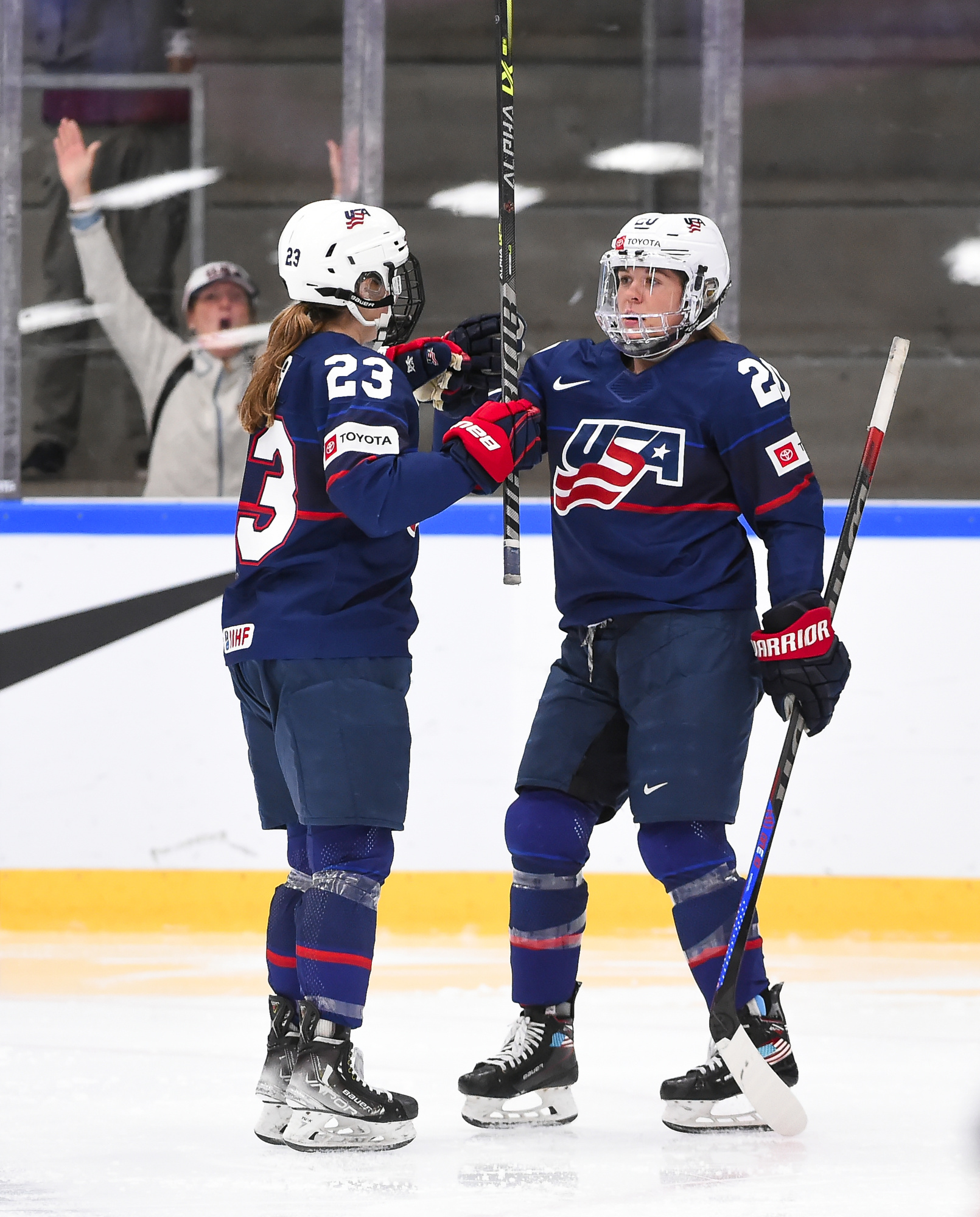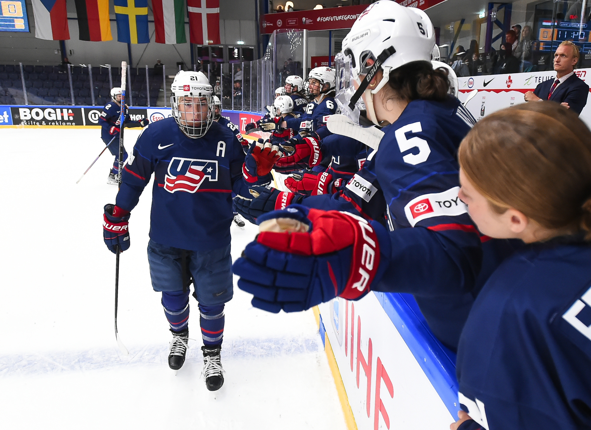In all, the U.S. scored nine times in the second, one off a record the record set by the U.S. a the first Women’s Worlds in 1990 against Switzerland.