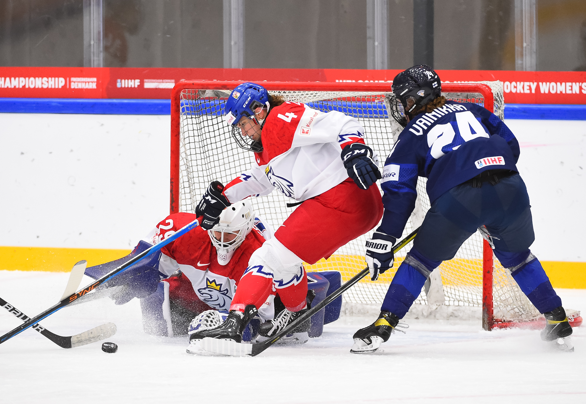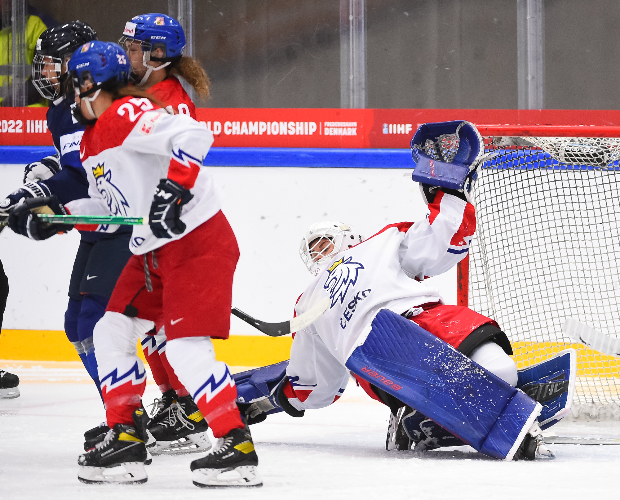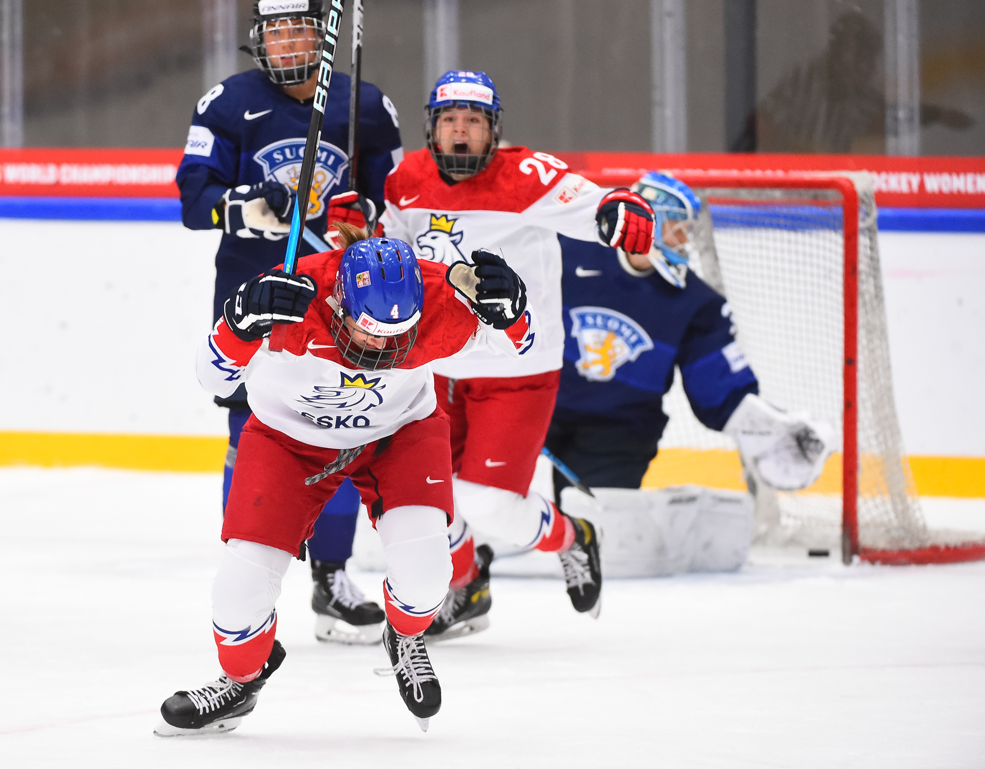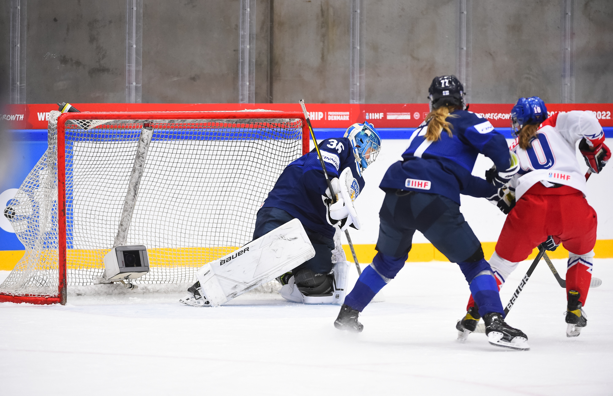 Defender Daniela Pejsova gave Czechia a 1-0 lead at 37:00. Jumping up into Finland’s zone, she received a pass from captain Alena Mills with her back to the net, and spun around to face Keisala and score her fourth of the tournament.