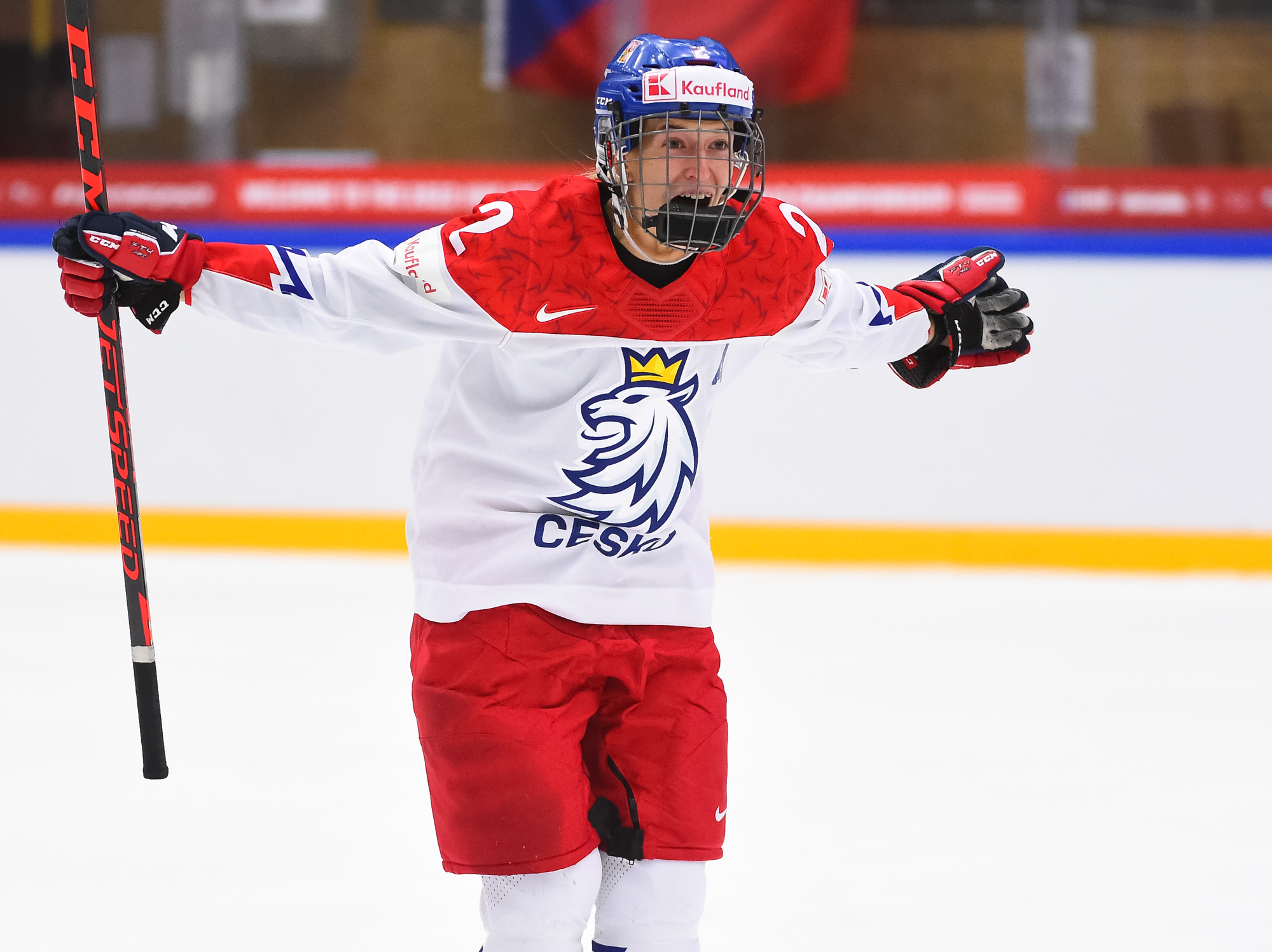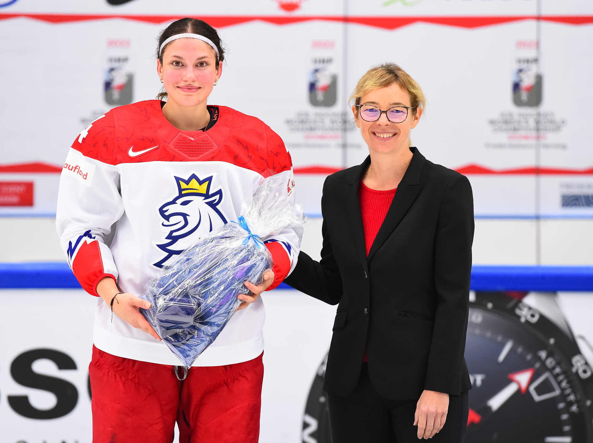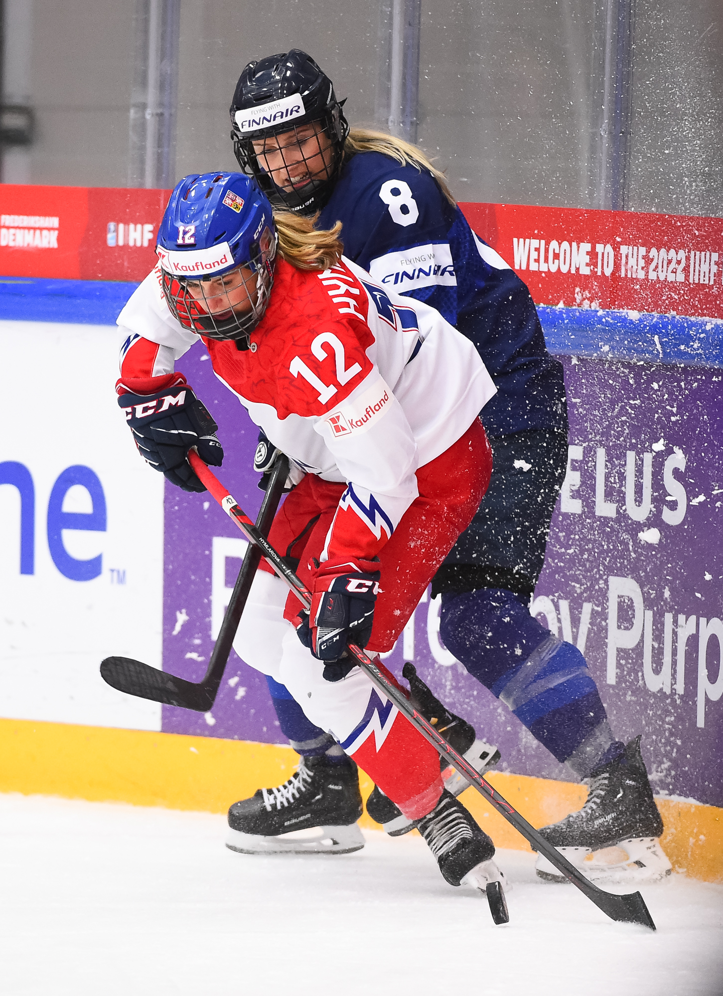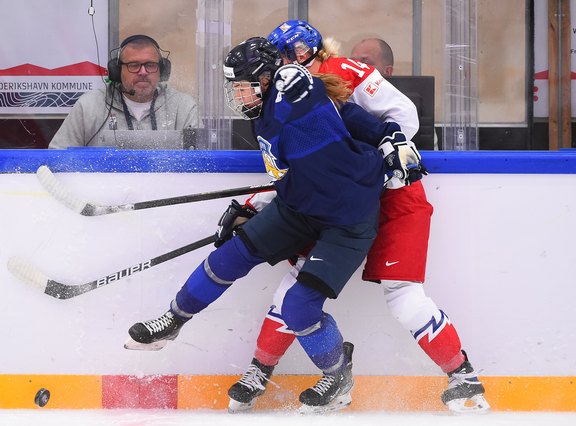 Defender Daniela Pejsova gave Czechia a 1-0 lead at 37:00. Jumping up into Finland’s zone, she received a pass from captain Alena Mills with her back to the net, and spun around to face Keisala and score her fourth of the tournament.