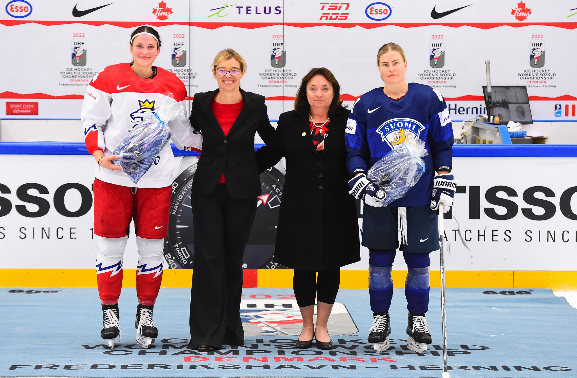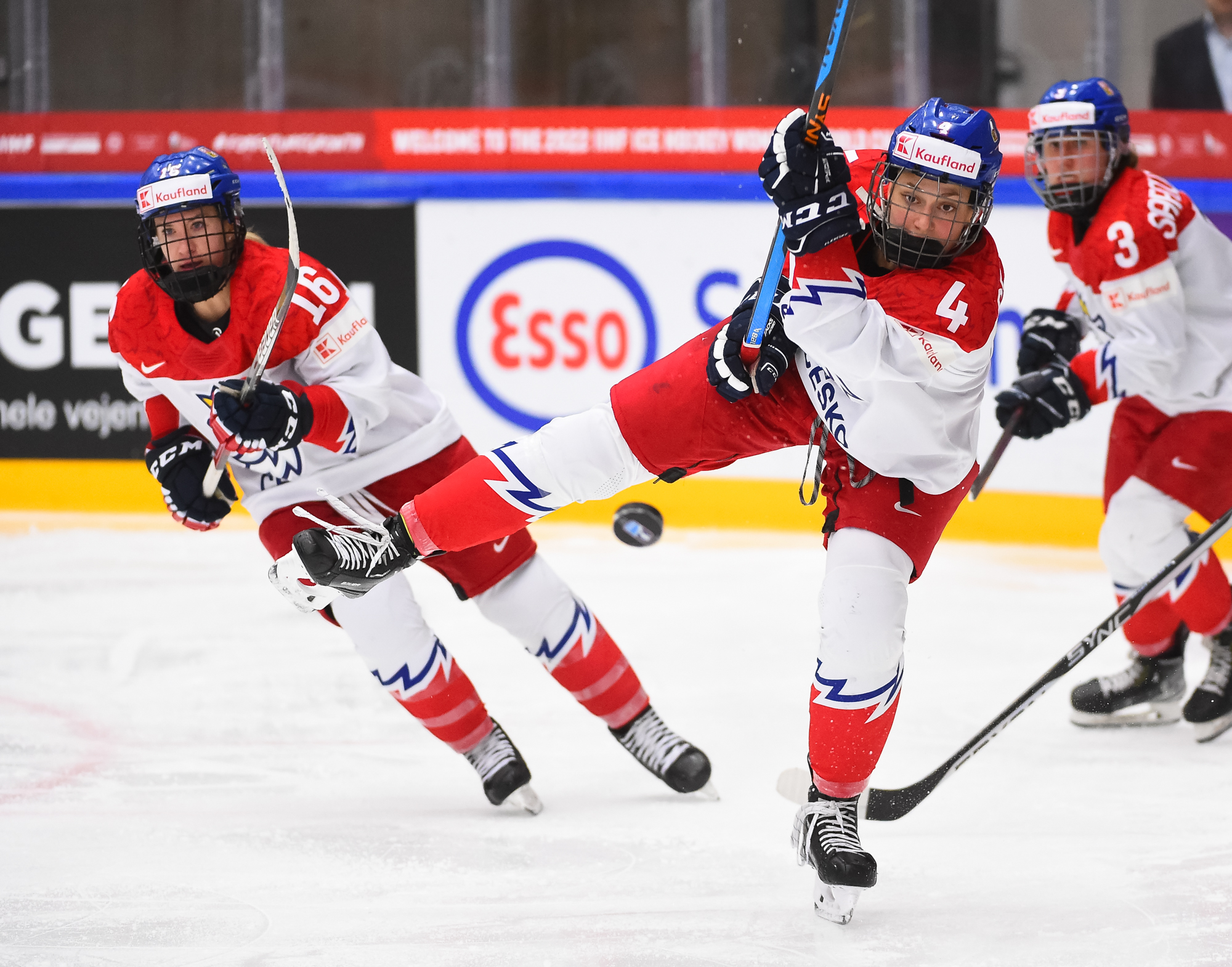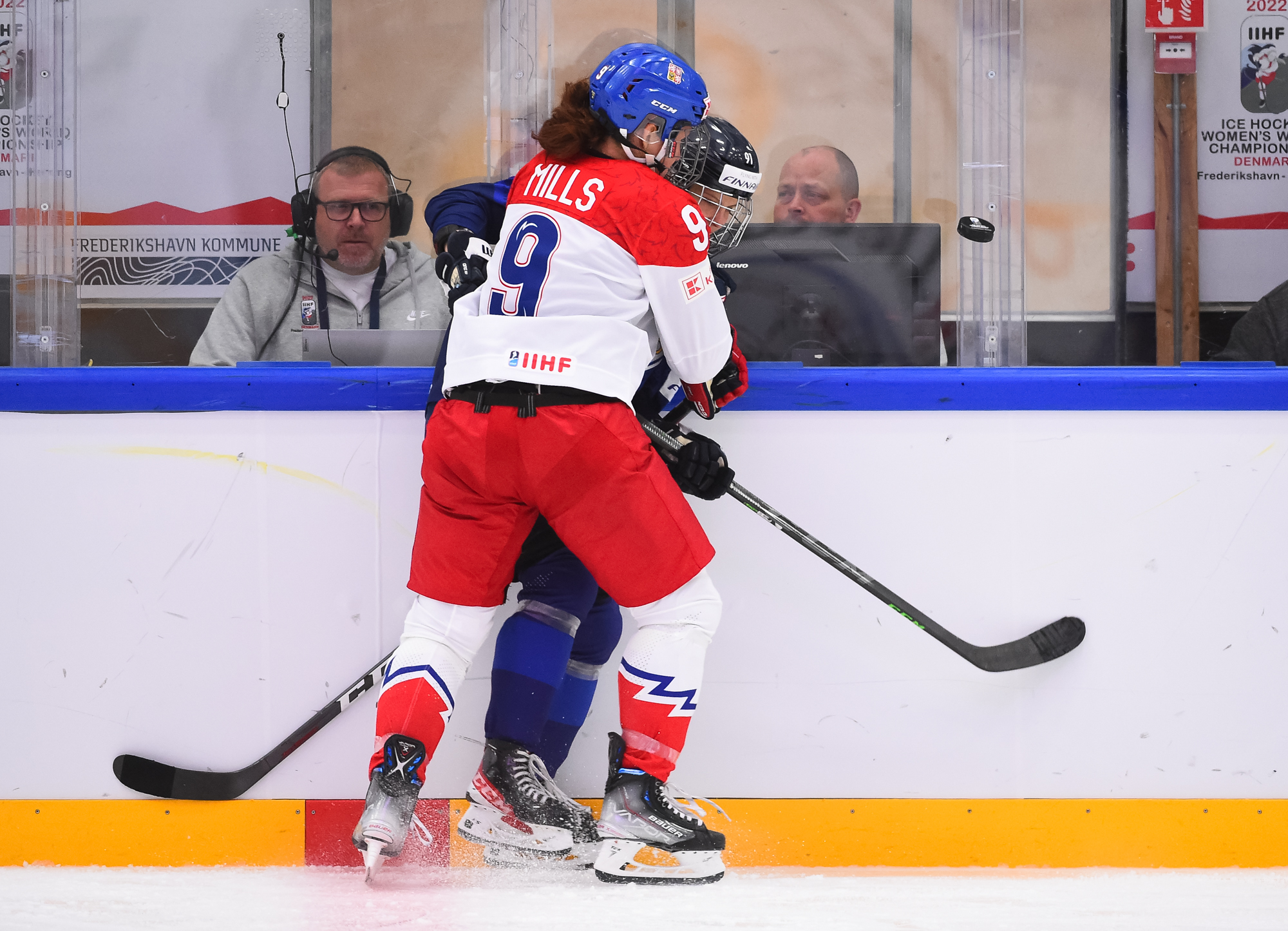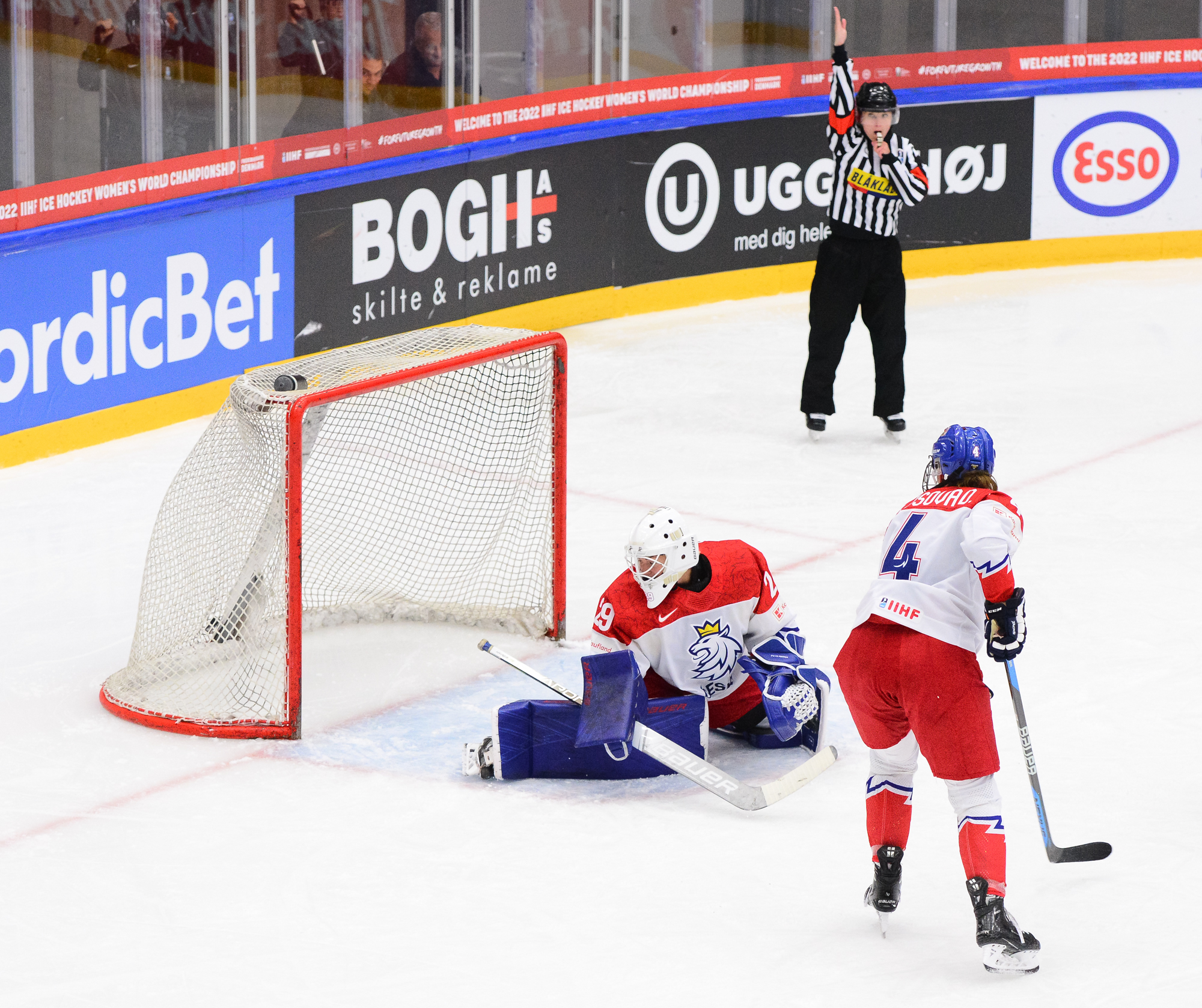 Defender Daniela Pejsova gave Czechia a 1-0 lead at 37:00. Jumping up into Finland’s zone, she received a pass from captain Alena Mills with her back to the net, and spun around to face Keisala and score her fourth of the tournament.