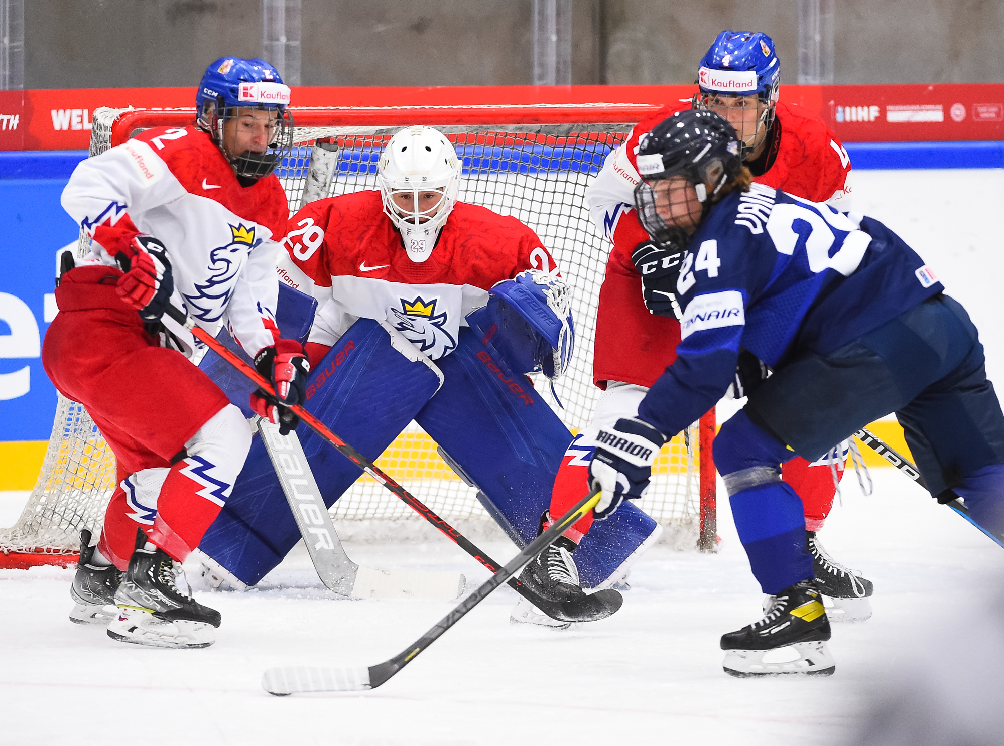 Finland started the third period with 56 seconds remaining on a power play, their best scoring chance coming from Holopainen. The Czechs nearly saw their one goal lead disappear a few moments after another successful penalty kill when Peslarova got tangled up with several players in the crease, sprawling on her back and leaving the top of the net wide open.