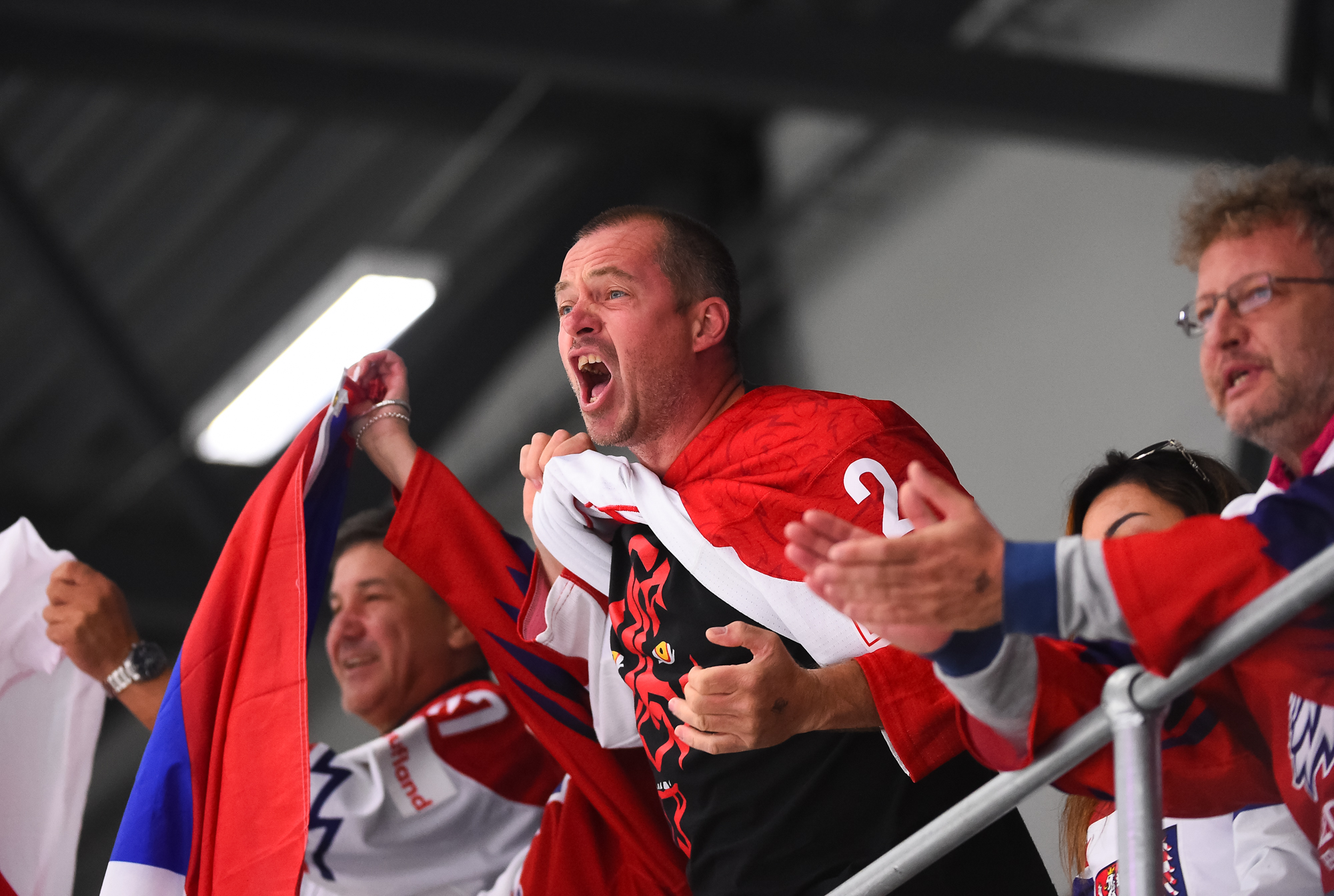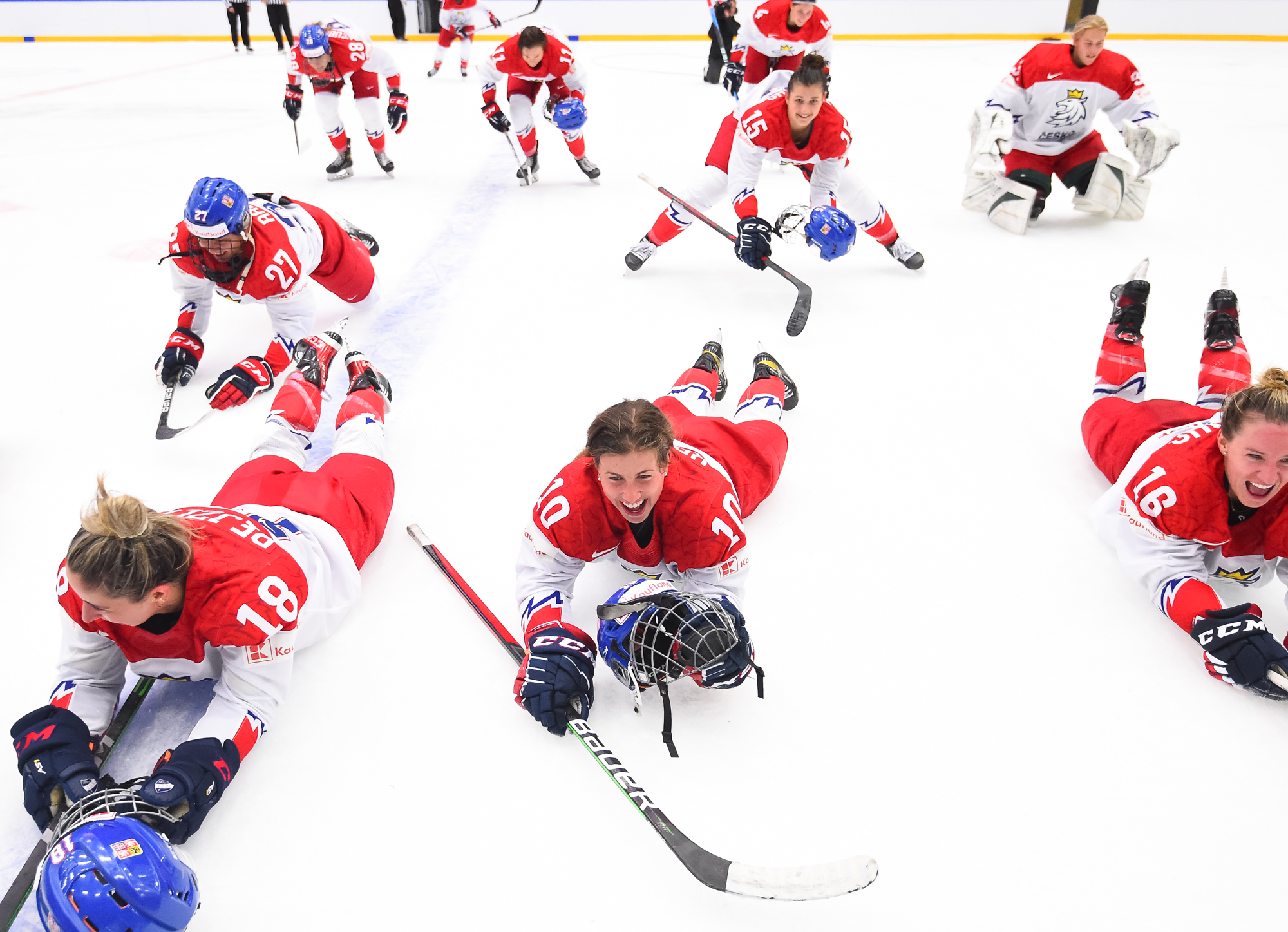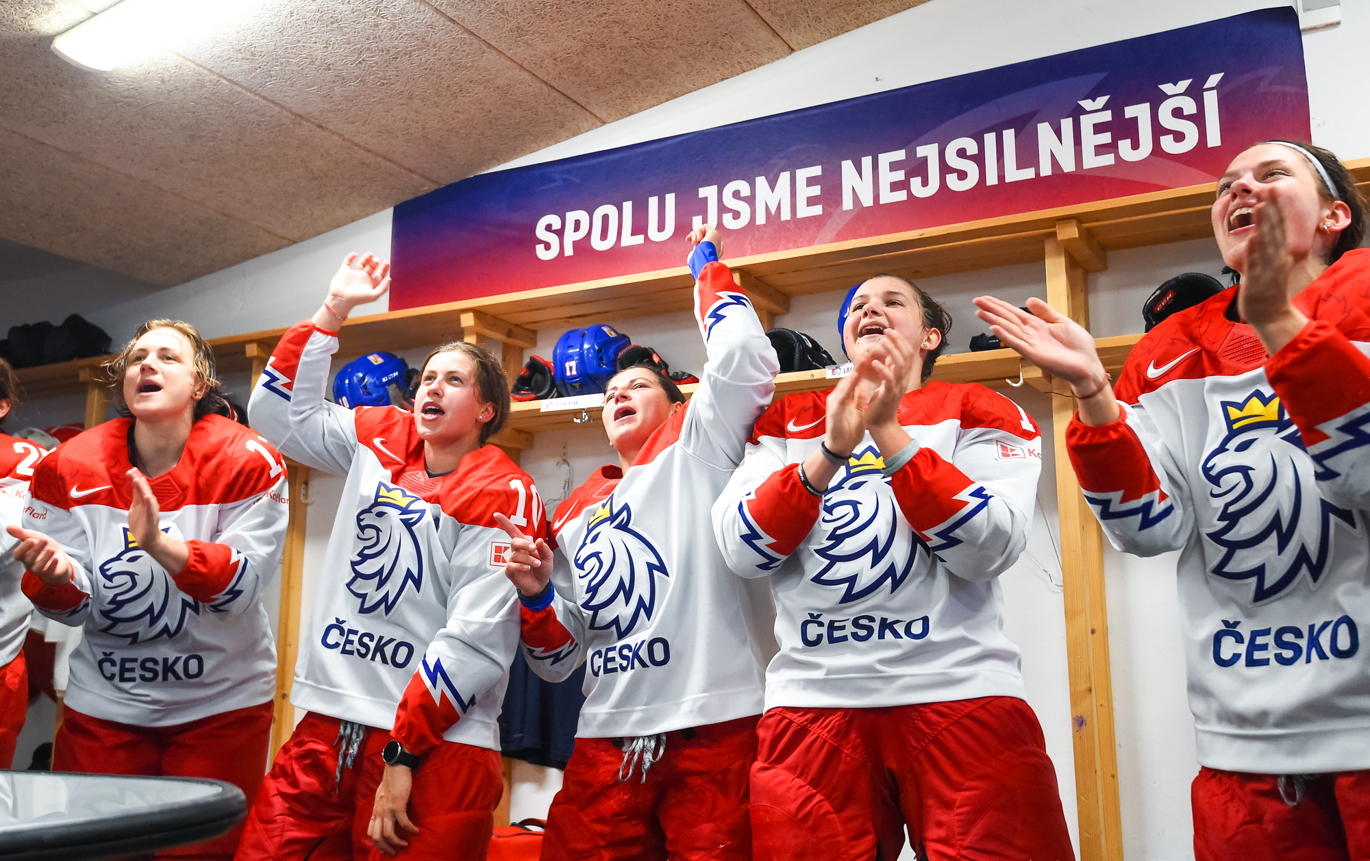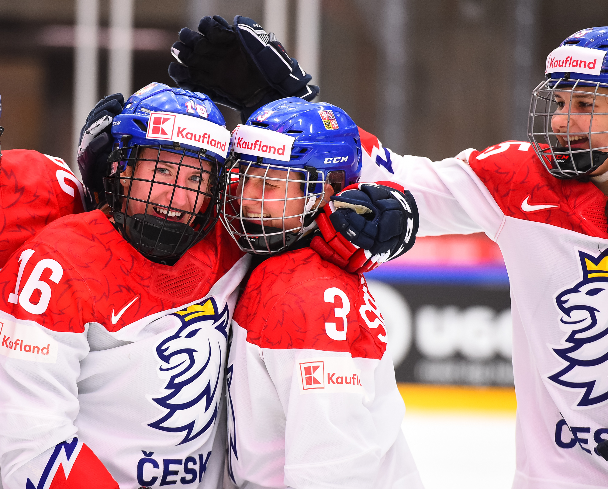 The entire Czech bench piled onto the ice as the buzzer sounded, celebrating what is a monumental moment for Czechia's women's ice hockey program.