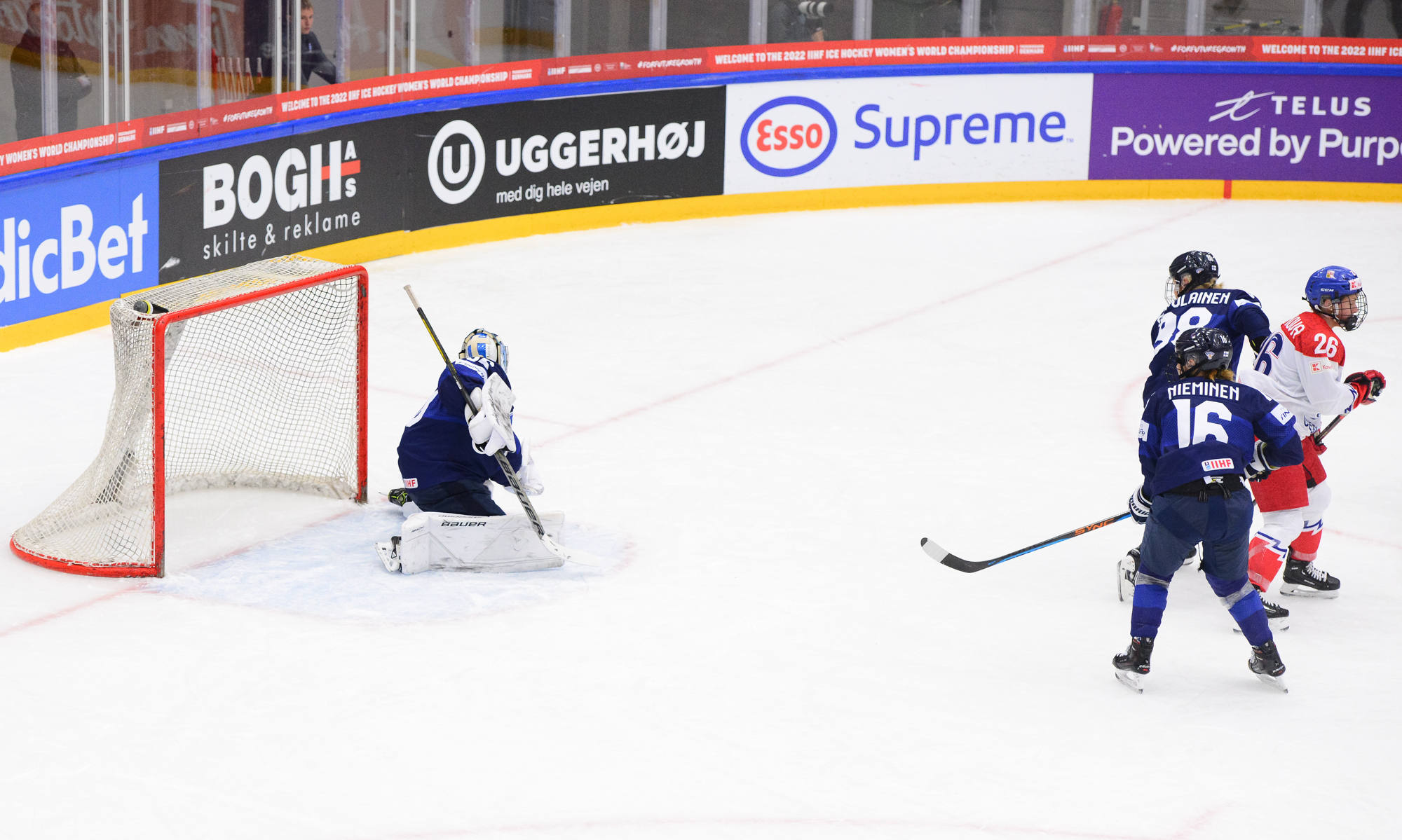 With the game tied at 1-1, Finland seemed to have found an extra gear. Peslarova made a big save on a breakaway from Petra Nieminen, who found another scoring opportunity a few moments later, but was stopped by Dominika Laskova, who took a penalty for interfering with Nieminen.