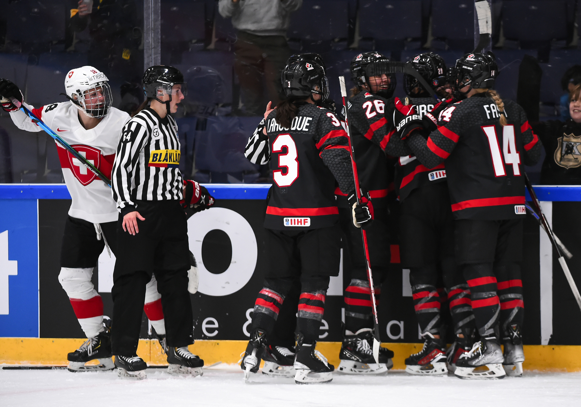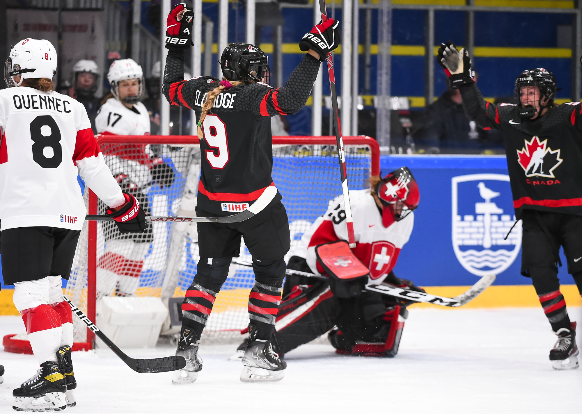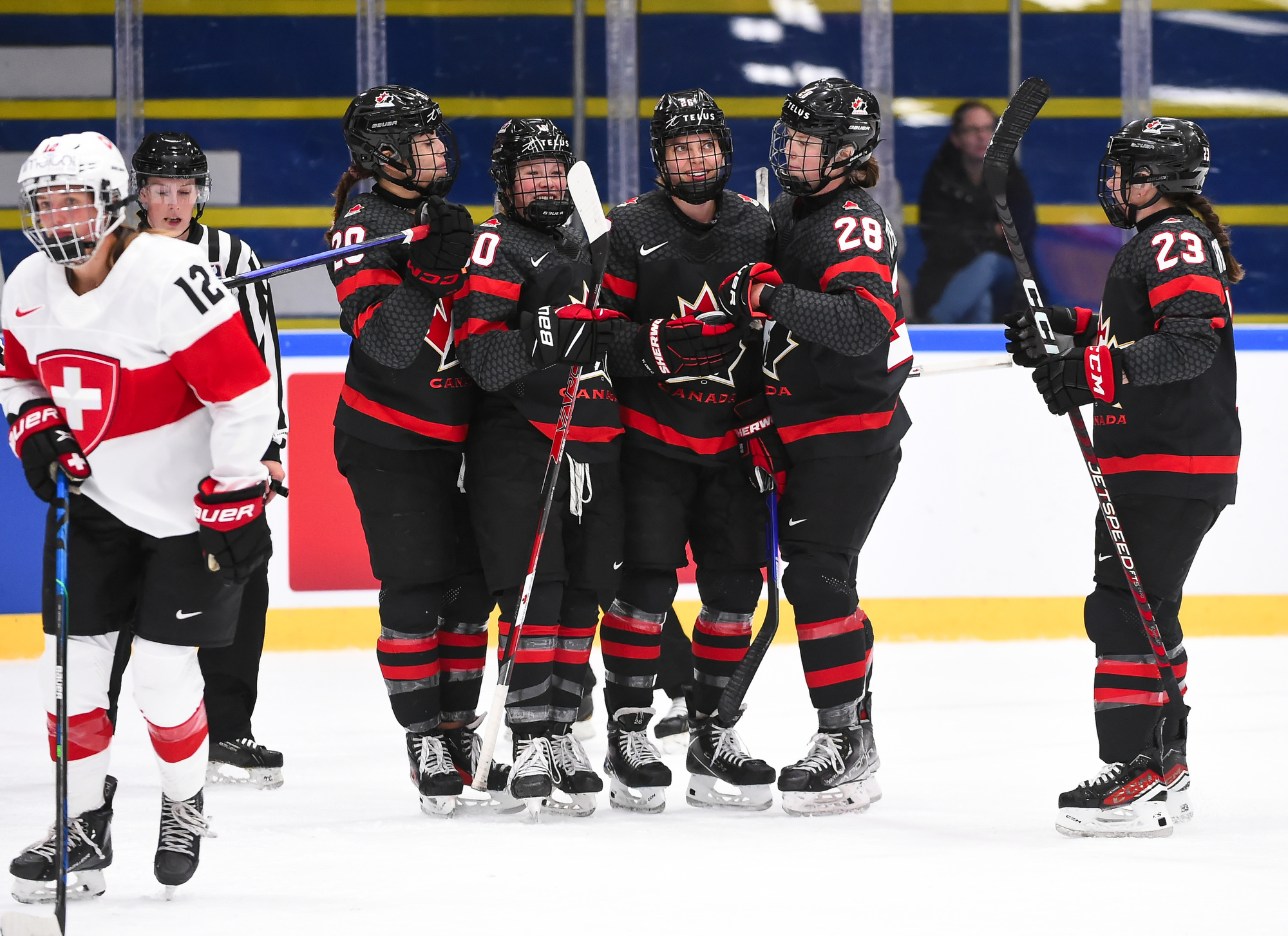 Canada jumped into an early 2-0 lead and never let up, defeating Switzerland 8-1 and advancing to the gold medal game.