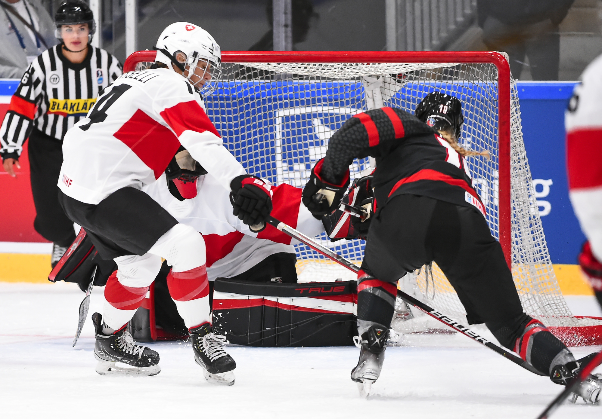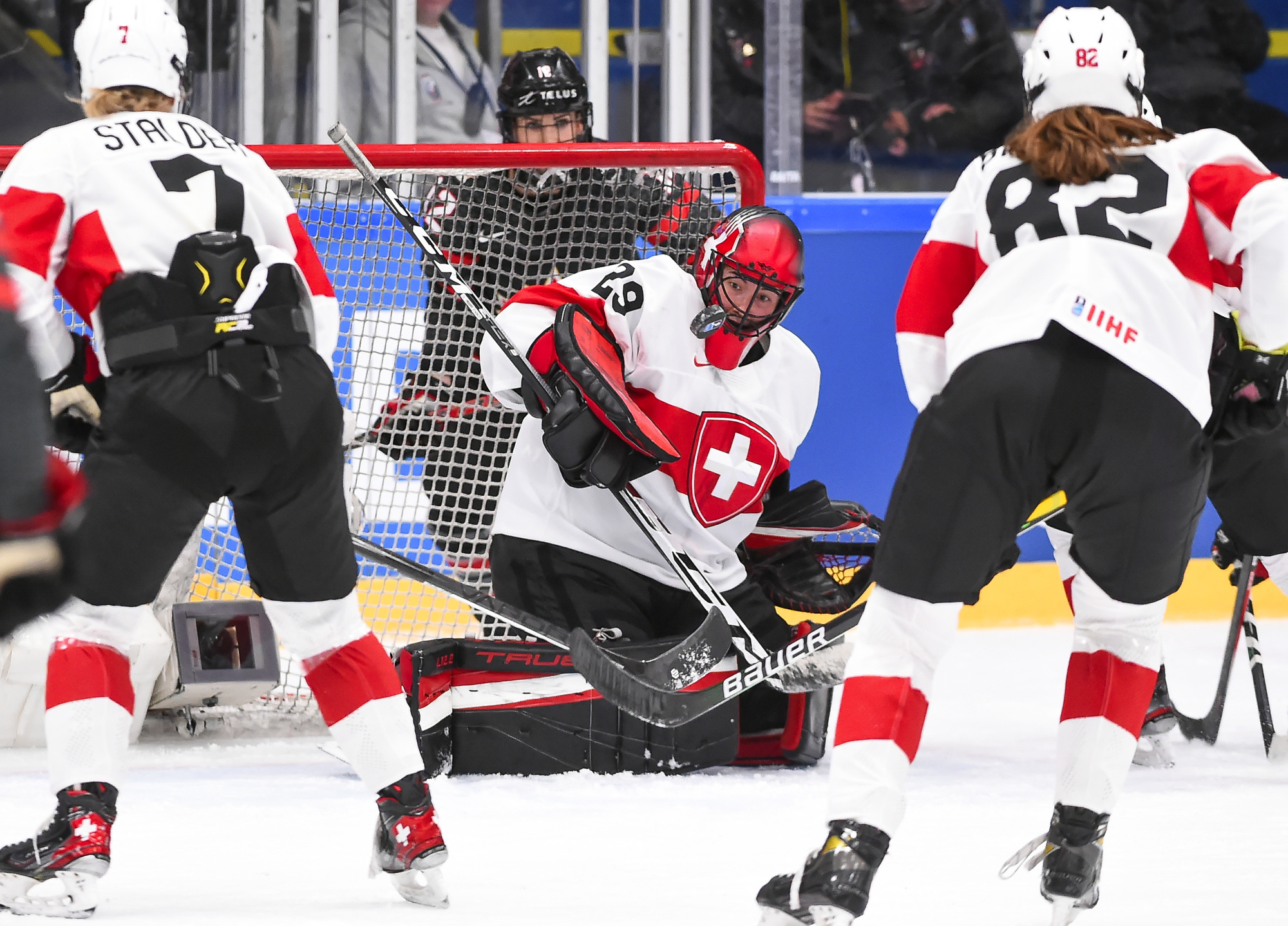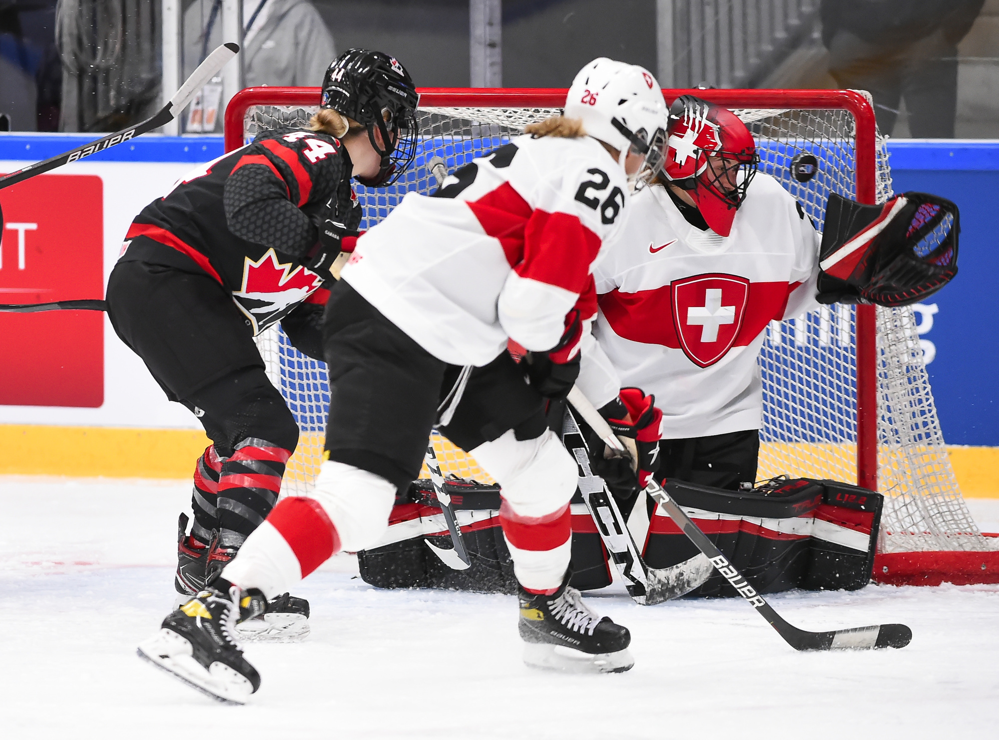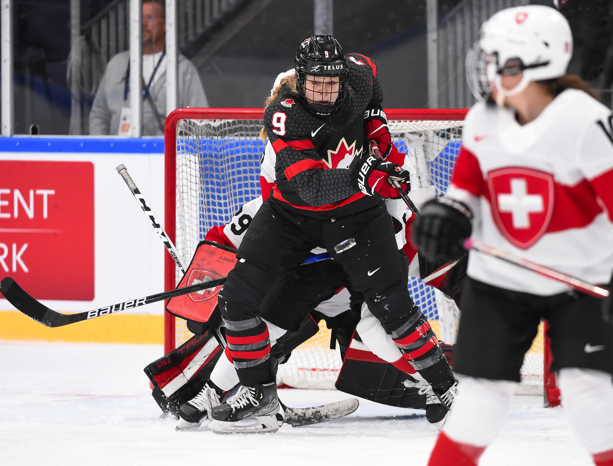 Canada outshot the Swiss, 56-6, Ann-Renee Desbiens recording the easy shutout while Saskai Maurer was peppered with many tough shots among the onslaught.
