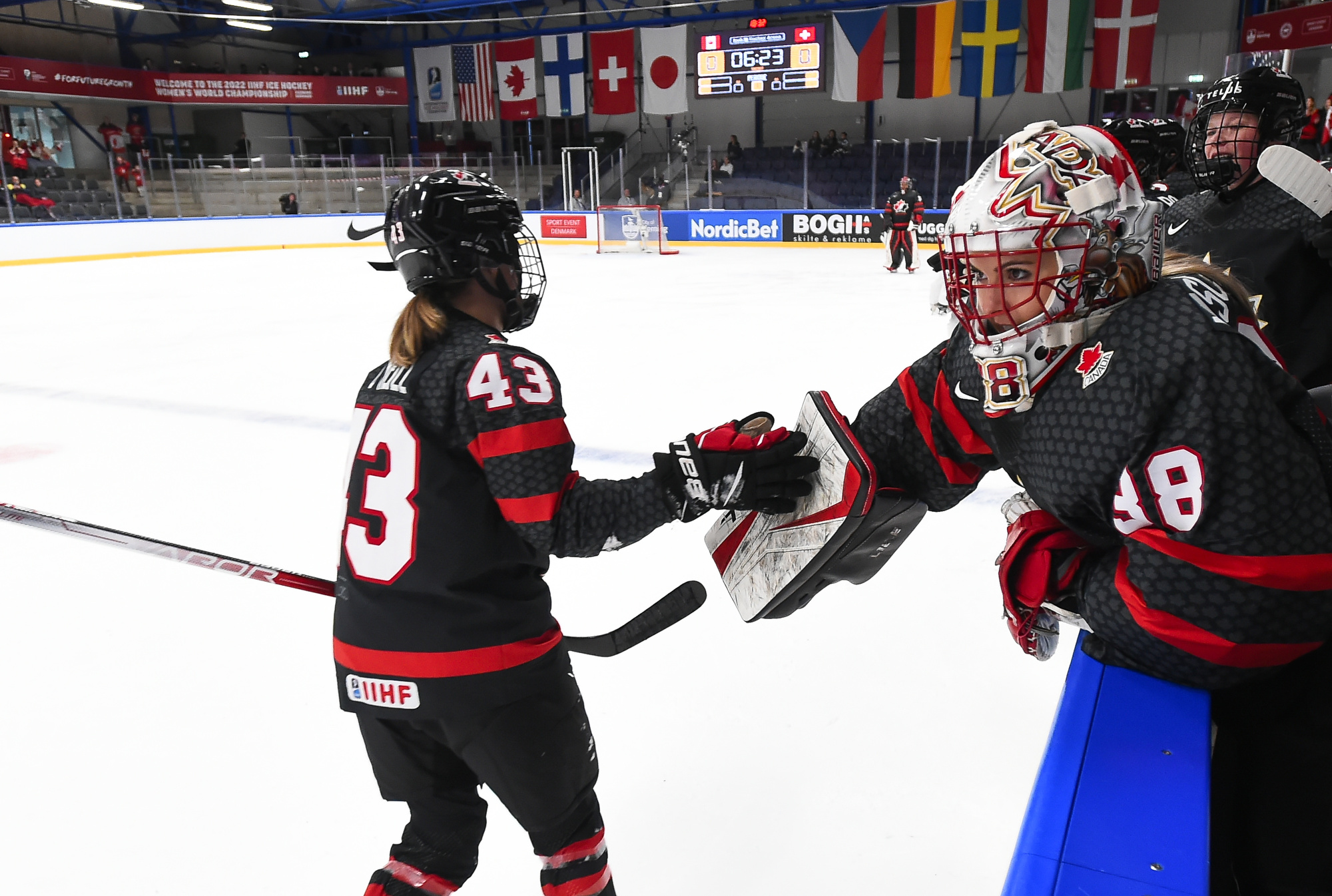 The roster-challenged Swiss will meet Czechia earlier in the day tomorrow for bronze. They played tonight’s game without three players, notably Alina Muller, who tested positive for Covid, as well as two injured teammates, Laura Zimmerman (foot) and Noemi Rhyner (hand) while Lara Stalder returned to the line-up. During the game, they lost another player, key defender Lara Christen, who was hurt in a collision in the second period and didn't return.
