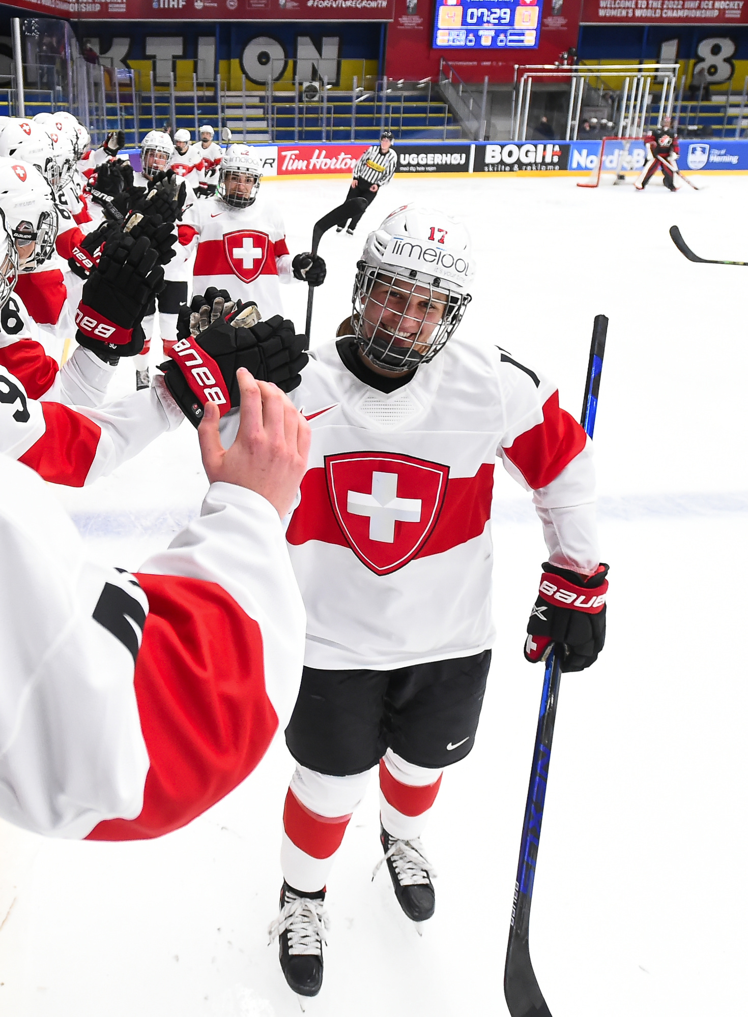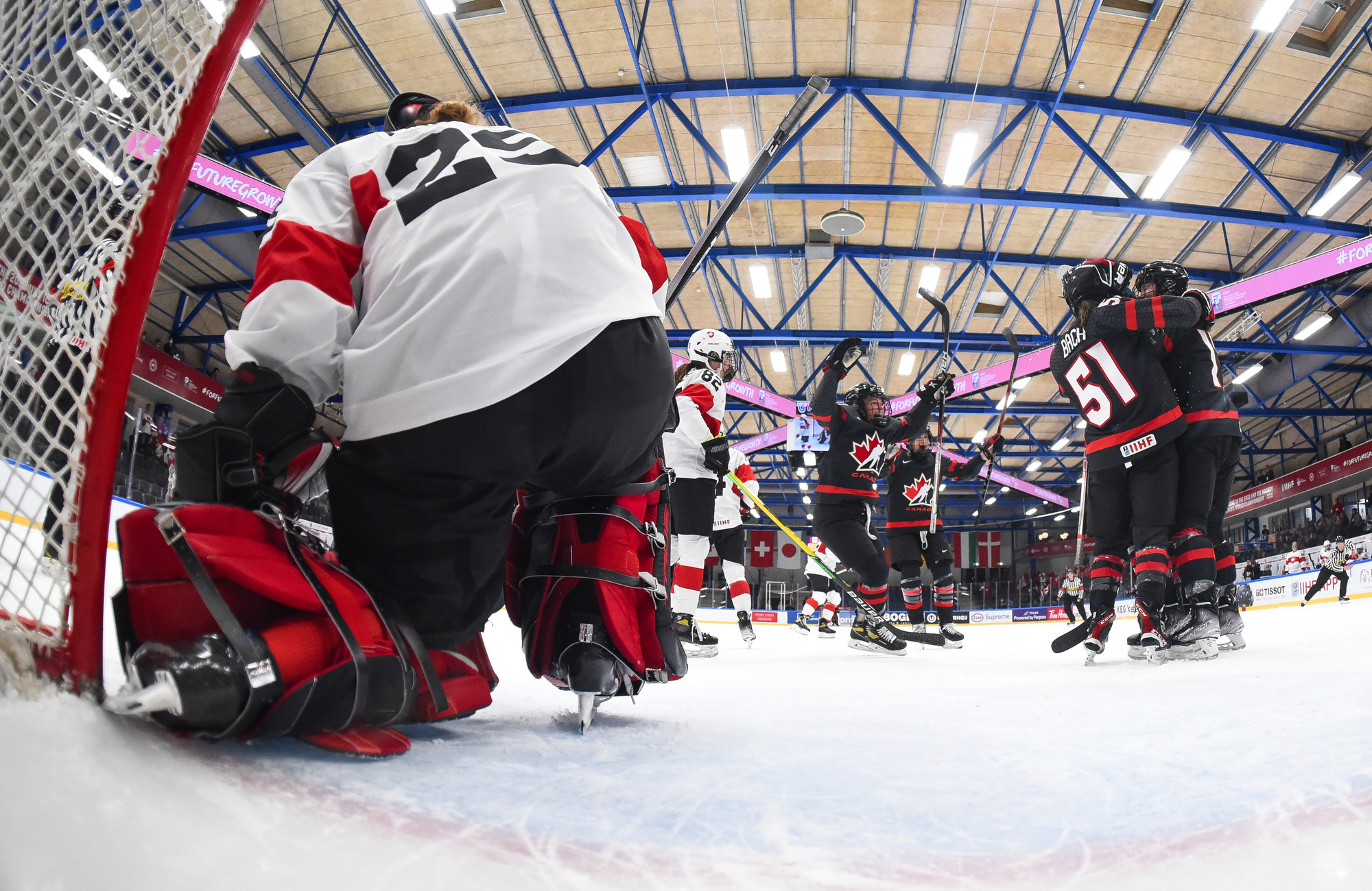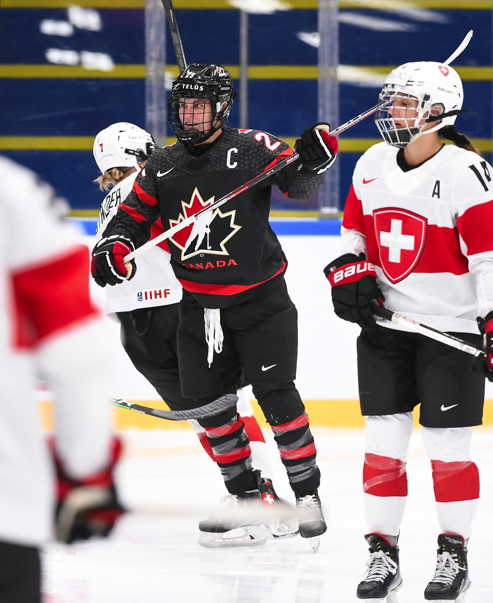 "When we face adversity, that's when we come together," suggested Swiss captain Lara Stalder. "We've grown as a family, and that's what keeps us going. We've got to get over this game and recover, and be ready tomorrow. You don't get the chance often to play for a medal. We've got to do everything it takes to win. We'll try to come out like we did today. We were flying for the first 15 minutes; we battled hard. At one point maybe when you're down seven goals, the legs get a little heavy."