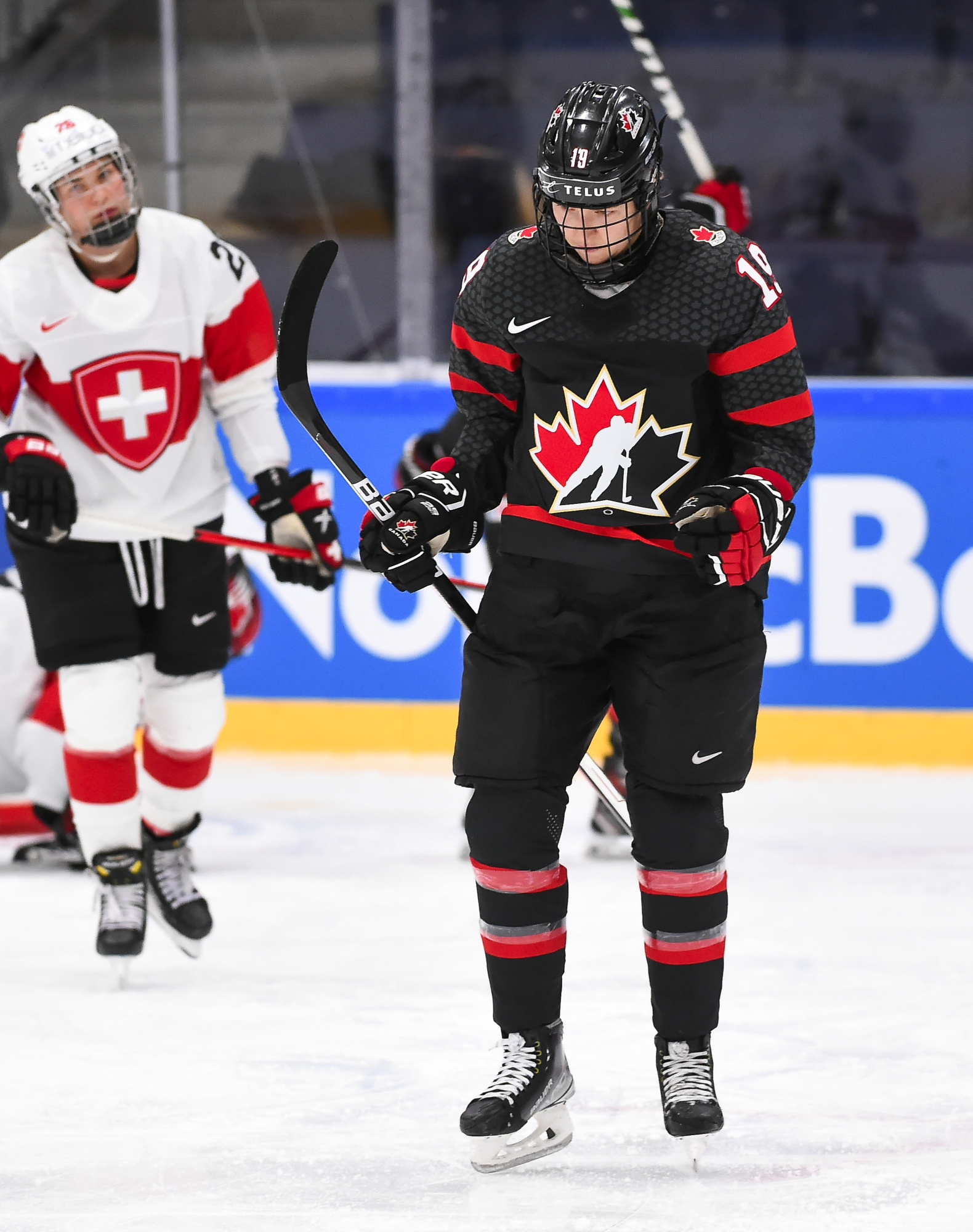 The Swiss did a good job to start the game, keeping Canada to the outside and containing the potent offence, but given that much of the play was in the Swiss end it seemed like only a matter of time before the favourites would connect. They went one better, scoring two goals just ten seconds apart.