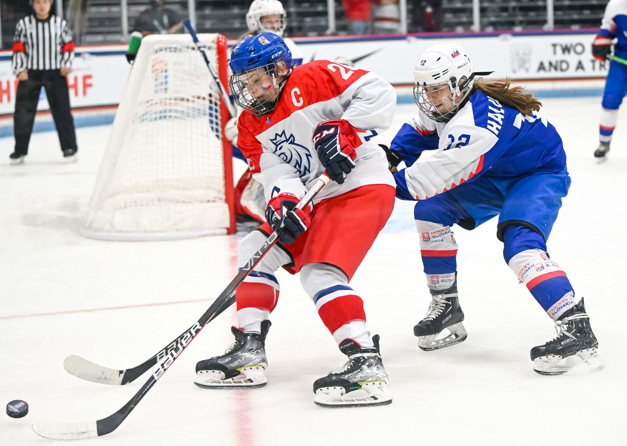 The duo registered three points apiece as Czechia opened round-robin play at the 2022 IIHF Ice Hockey U18 Women’s World Championship with a convincing 4-0 win over rival Slovakia.