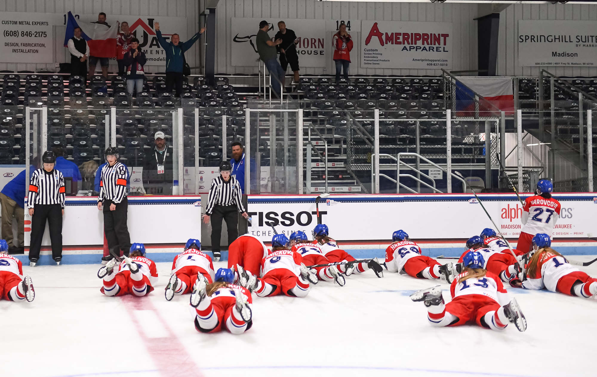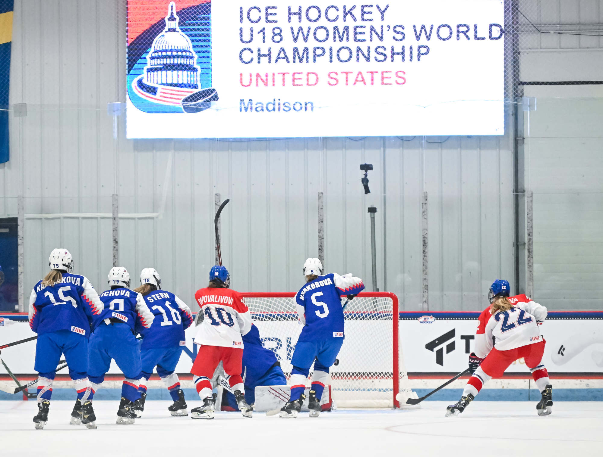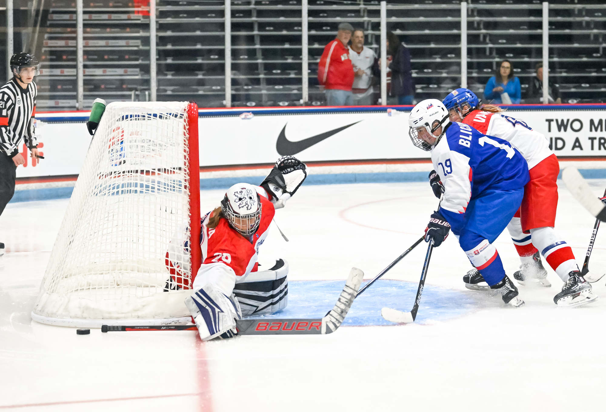 The Czechs scored on the power play with 11:20 left in the third to go up by four. Defender Eliska Hotova fired a shot from the high slot which hit the crossbar and went in.
