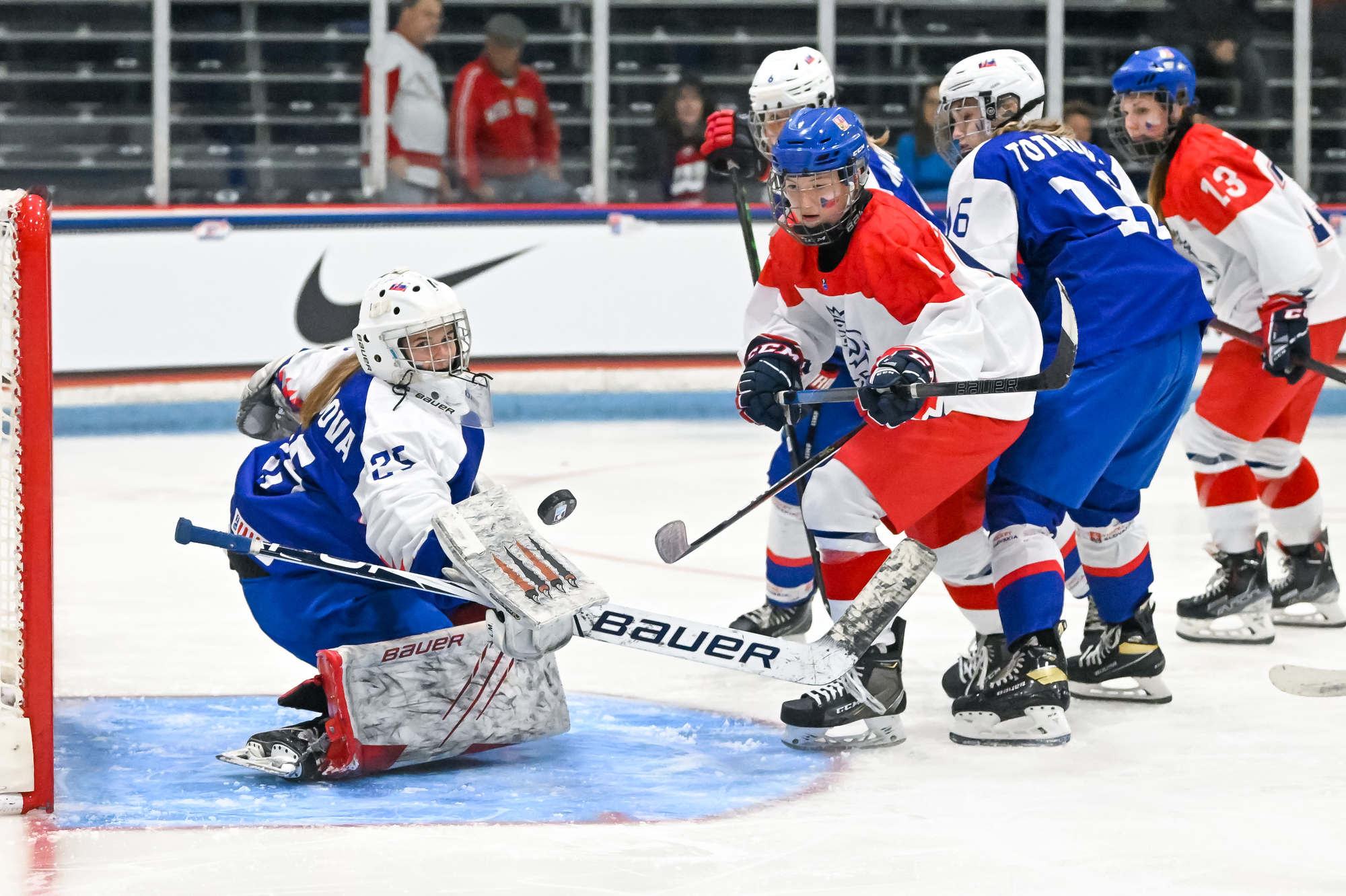 After a scoreless first period in which Czechia survived three penalties including a 5-on-3, Sapovalivova broke the deadlock 5:31 into the second. The 16-year-old drove to the right side of the net and lifted a backhand over the shoulder of Slovakian netminder Laura Medvidova.
