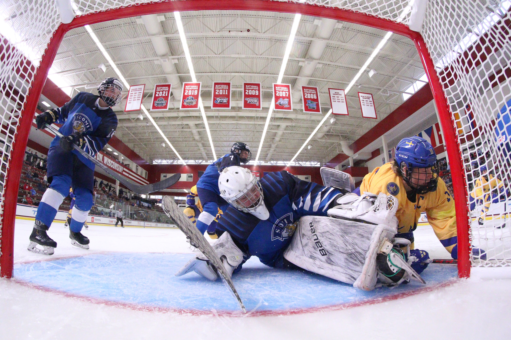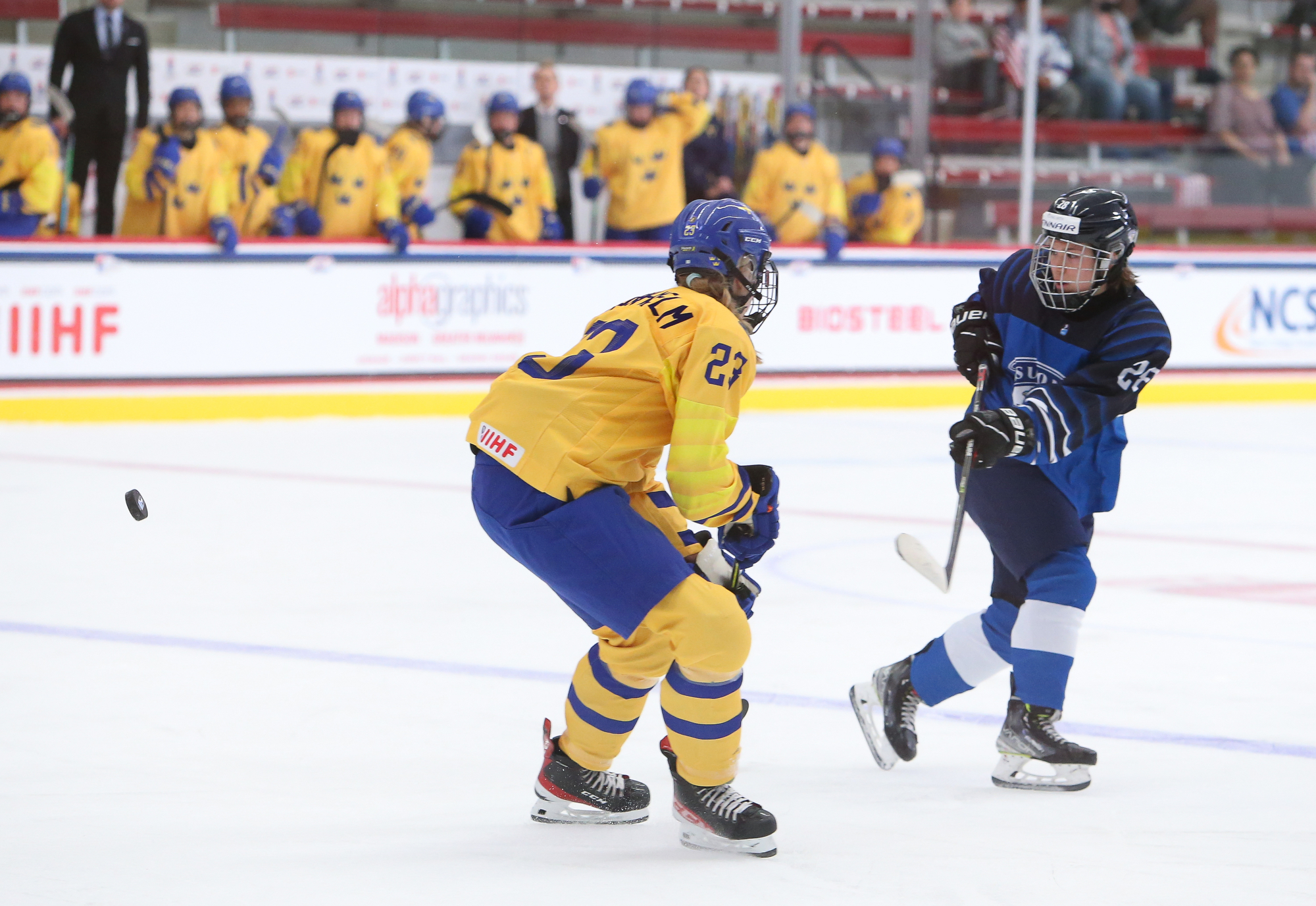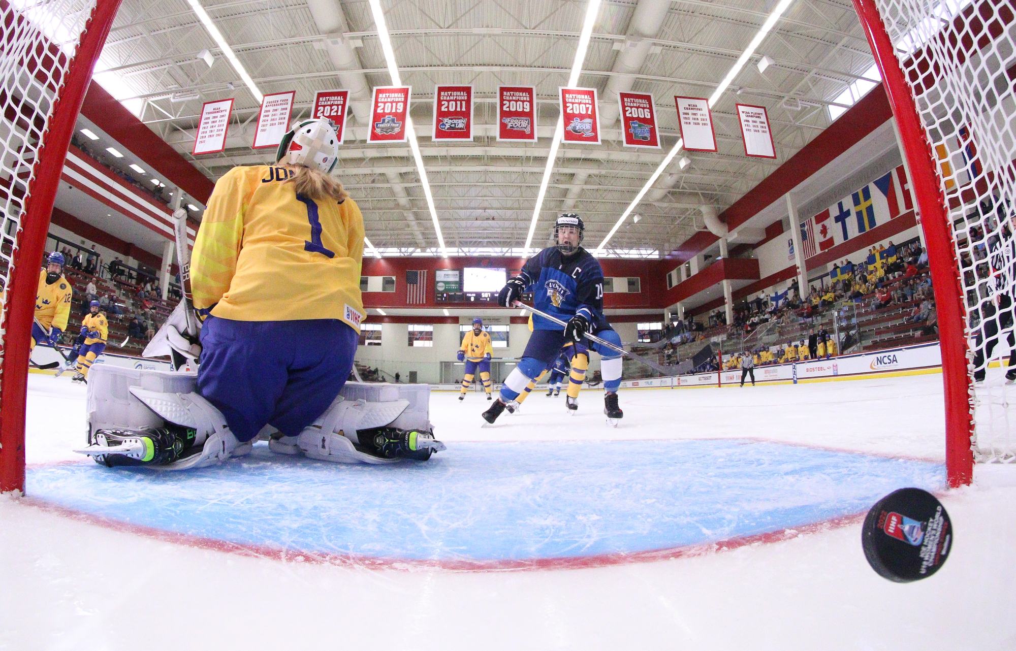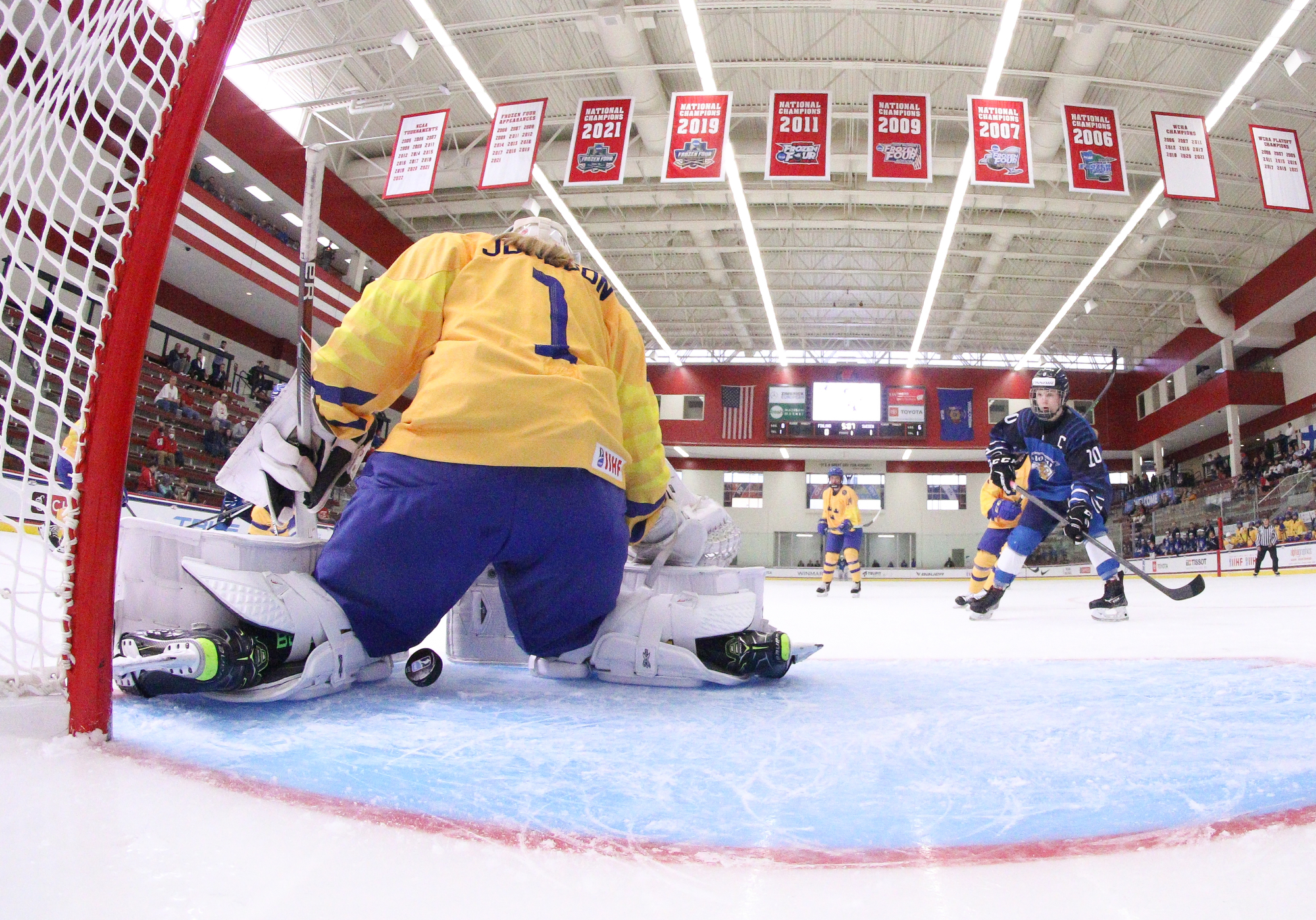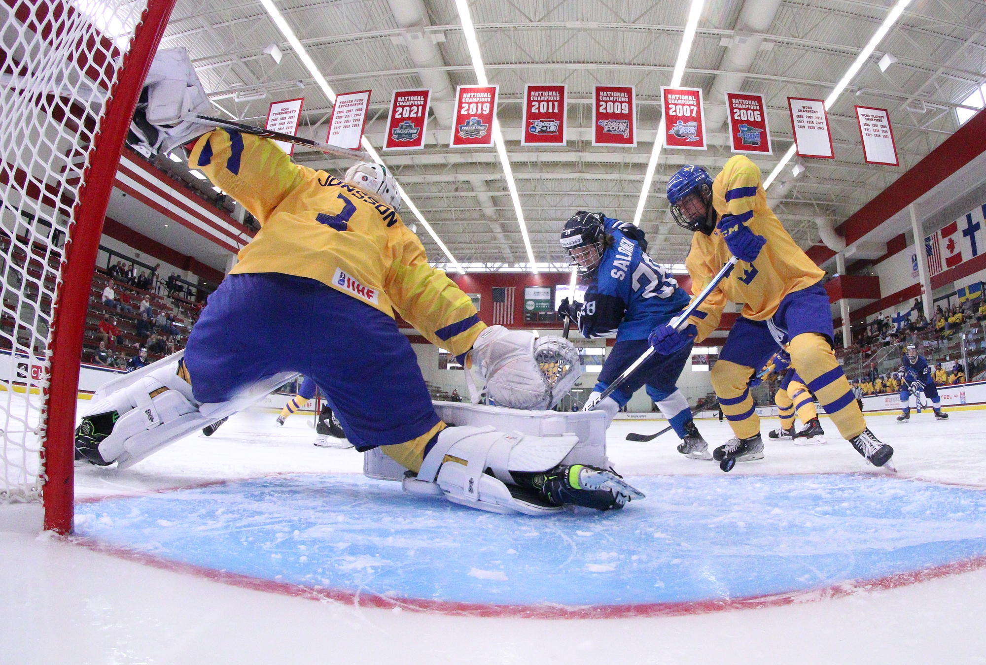 In net, Finland's Emilia Kyrkko, who had a 40-save shutout against Canada, returned between the pipes. Sweden's Lisa Jonsson, who registered 53 saves in the 3-1 loss to Canada, got her second start.