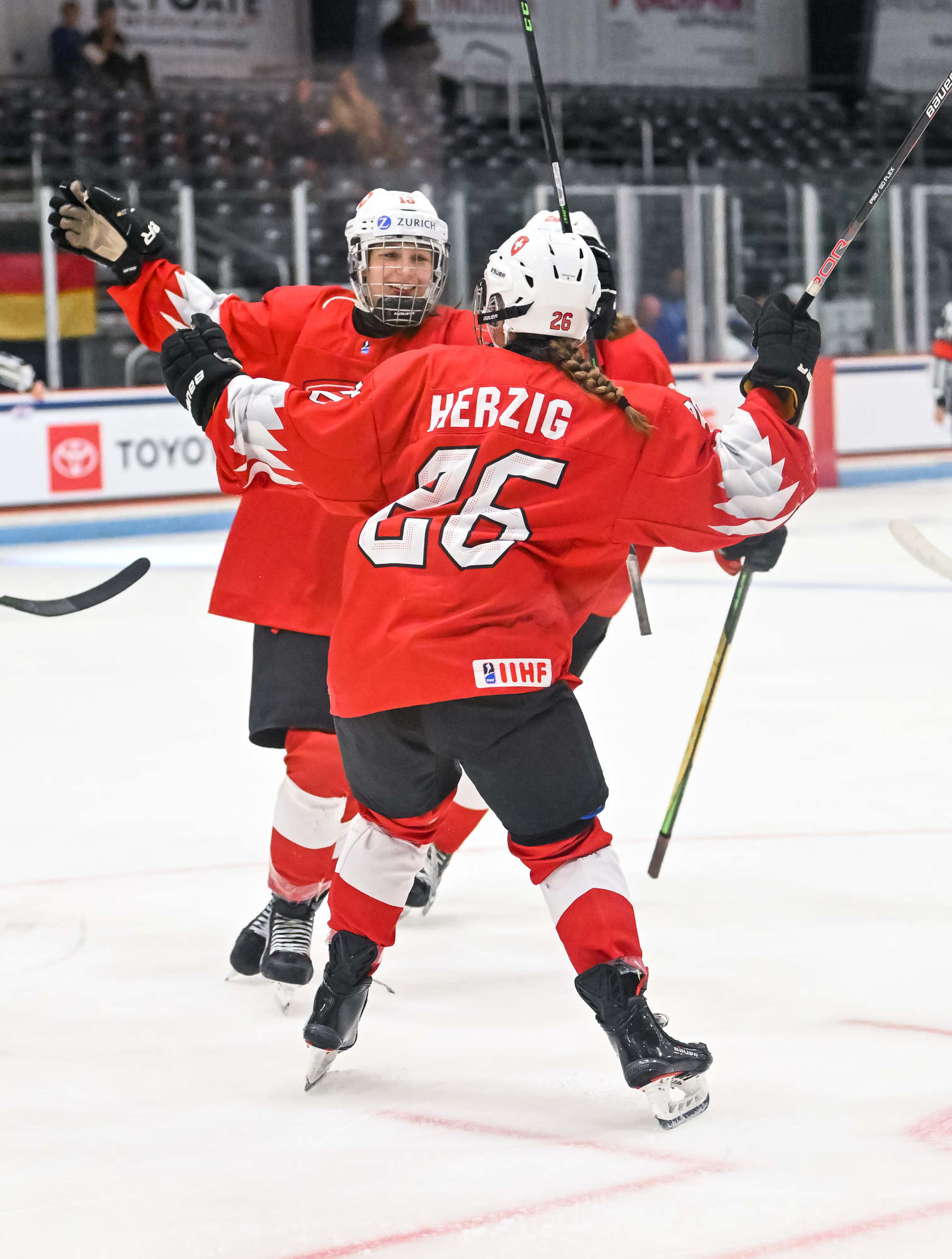 Alessia Baechler and Alina Marti picked up assists on the play.