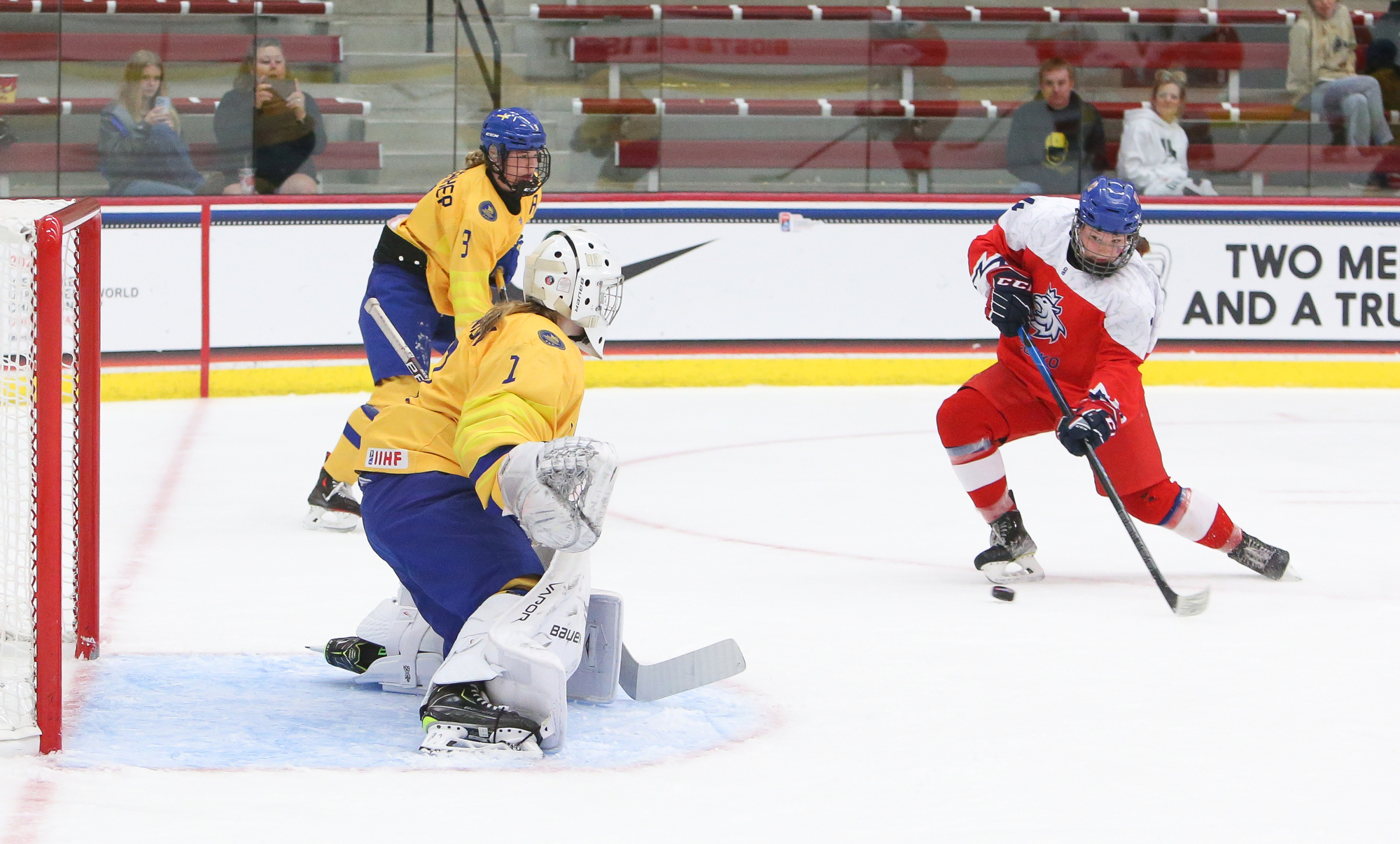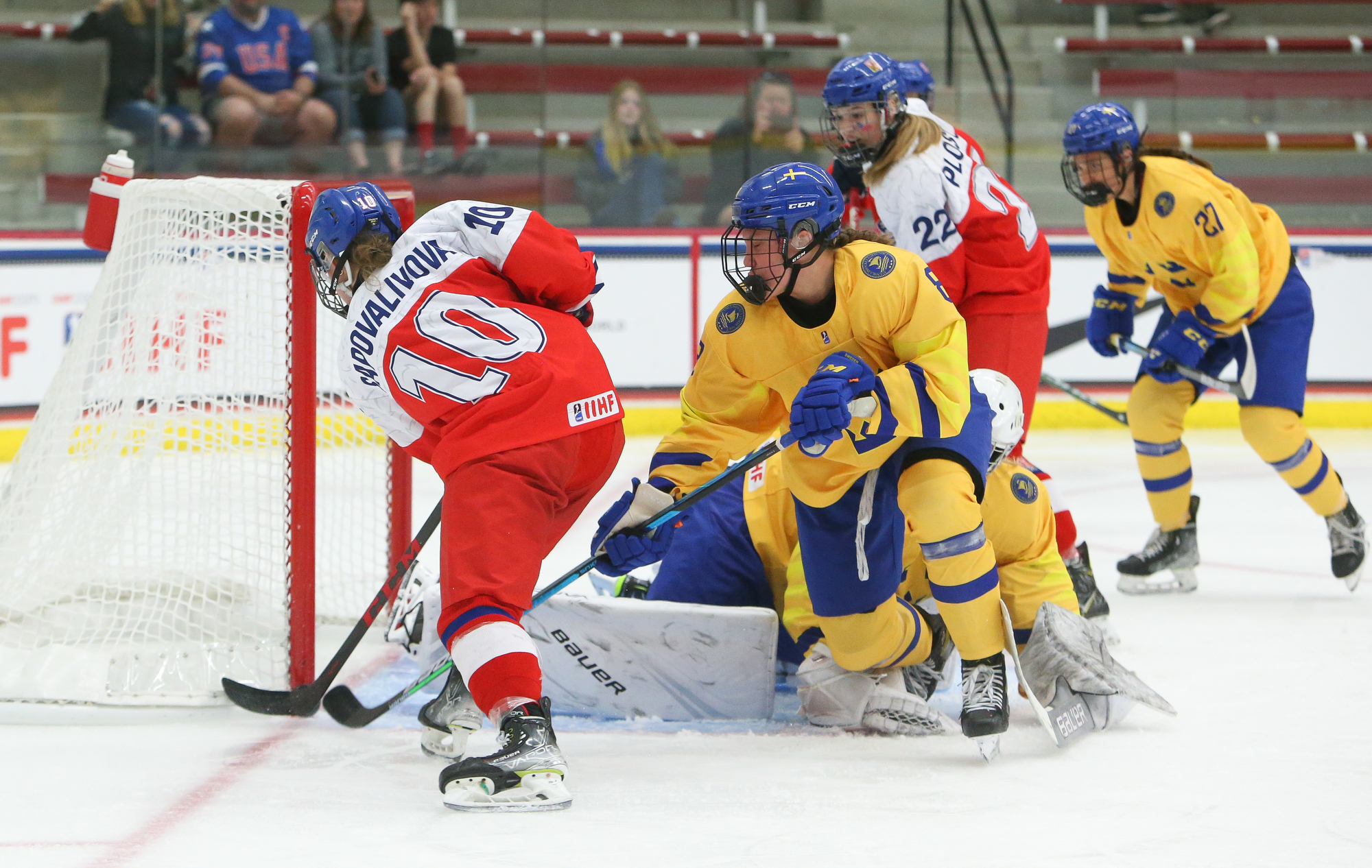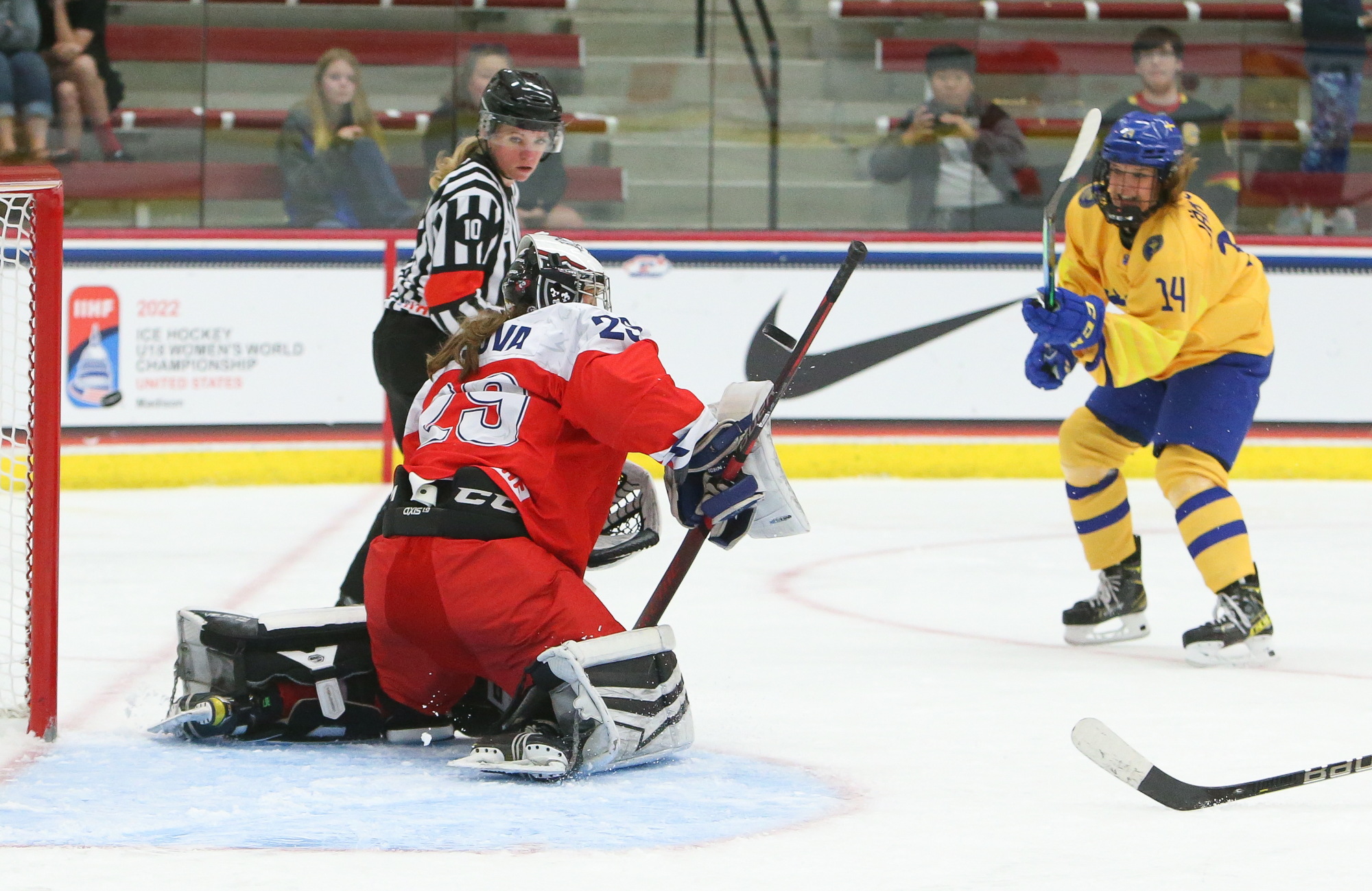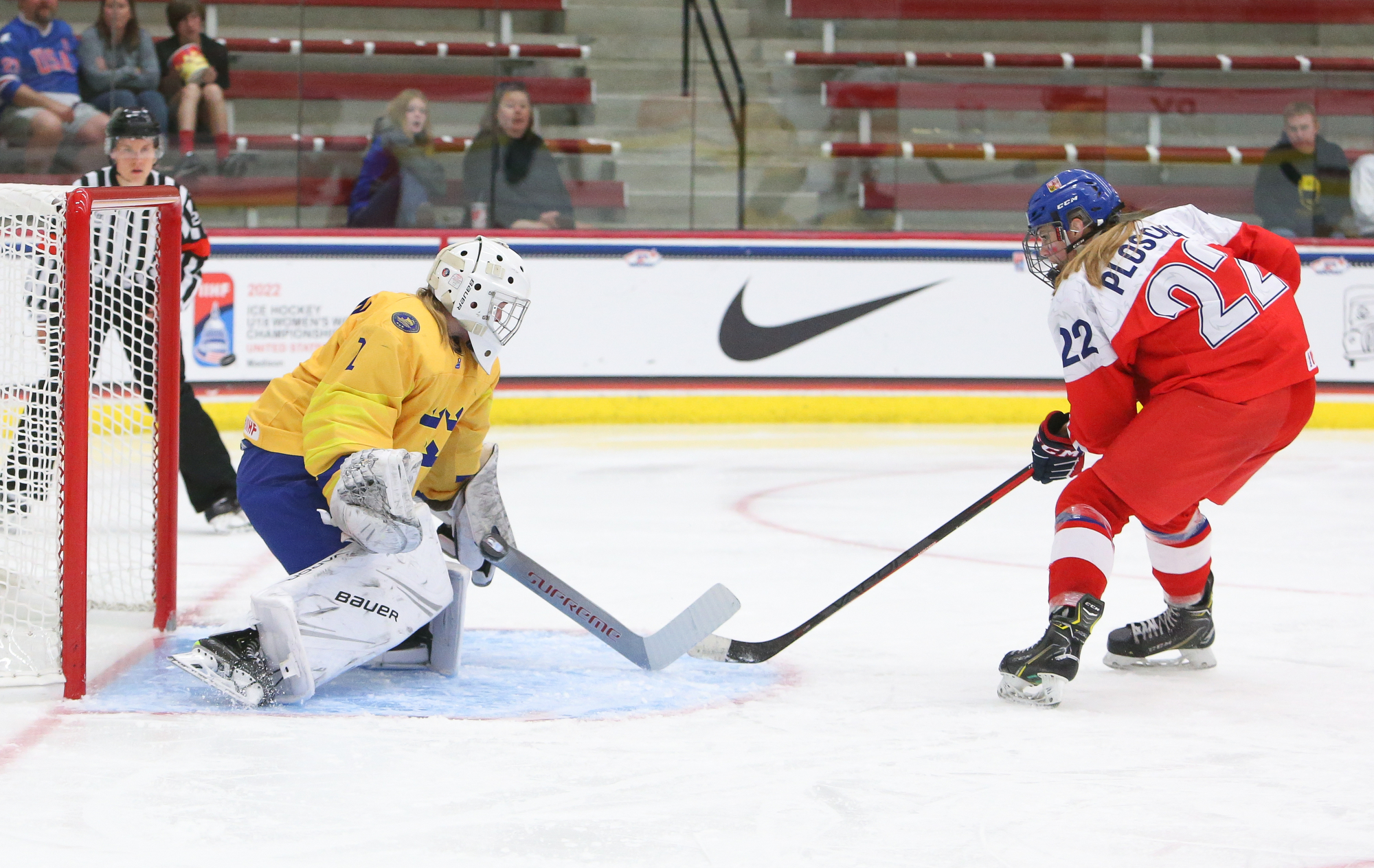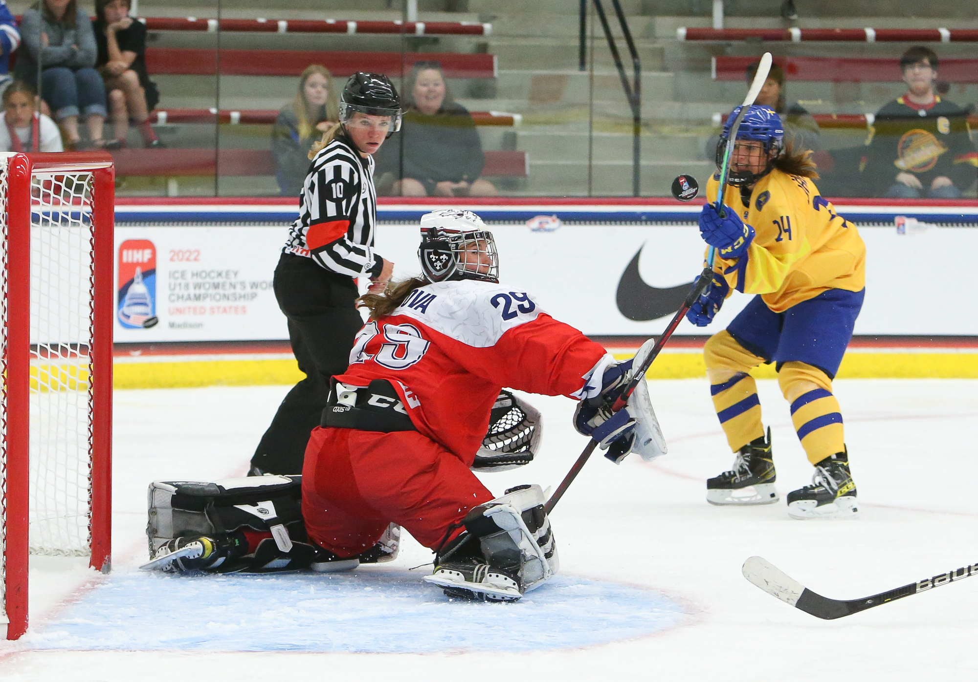 Sweden booked a semi-final date with the defending champion U.S. with a hard-fought 2-1 win over Czechia in Friday’s second quarter-final at the 2022 U18 Women's Worlds in Madison. For the second straight game, Jenna Raunio had the go-ahead goal for the Swedes.
