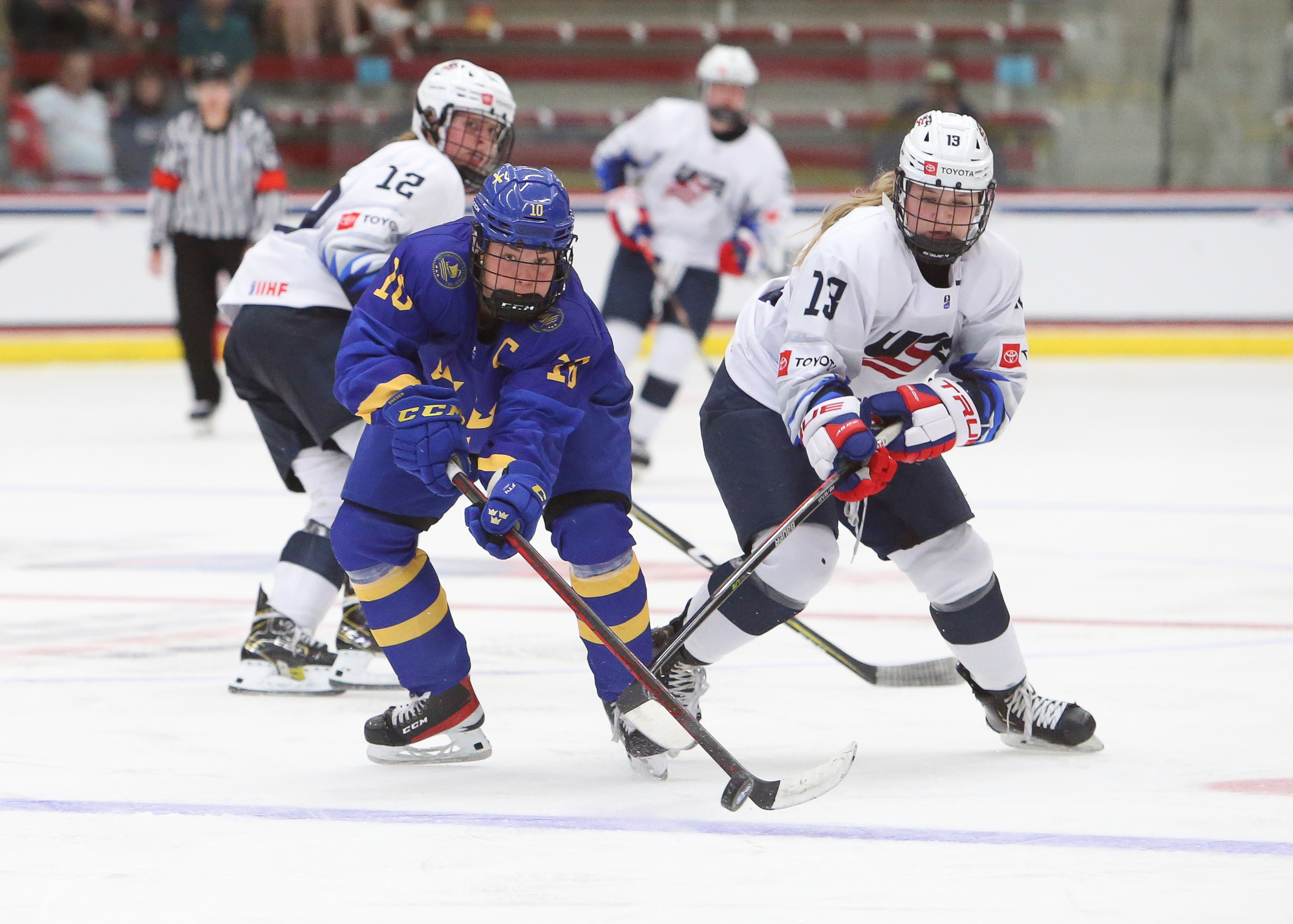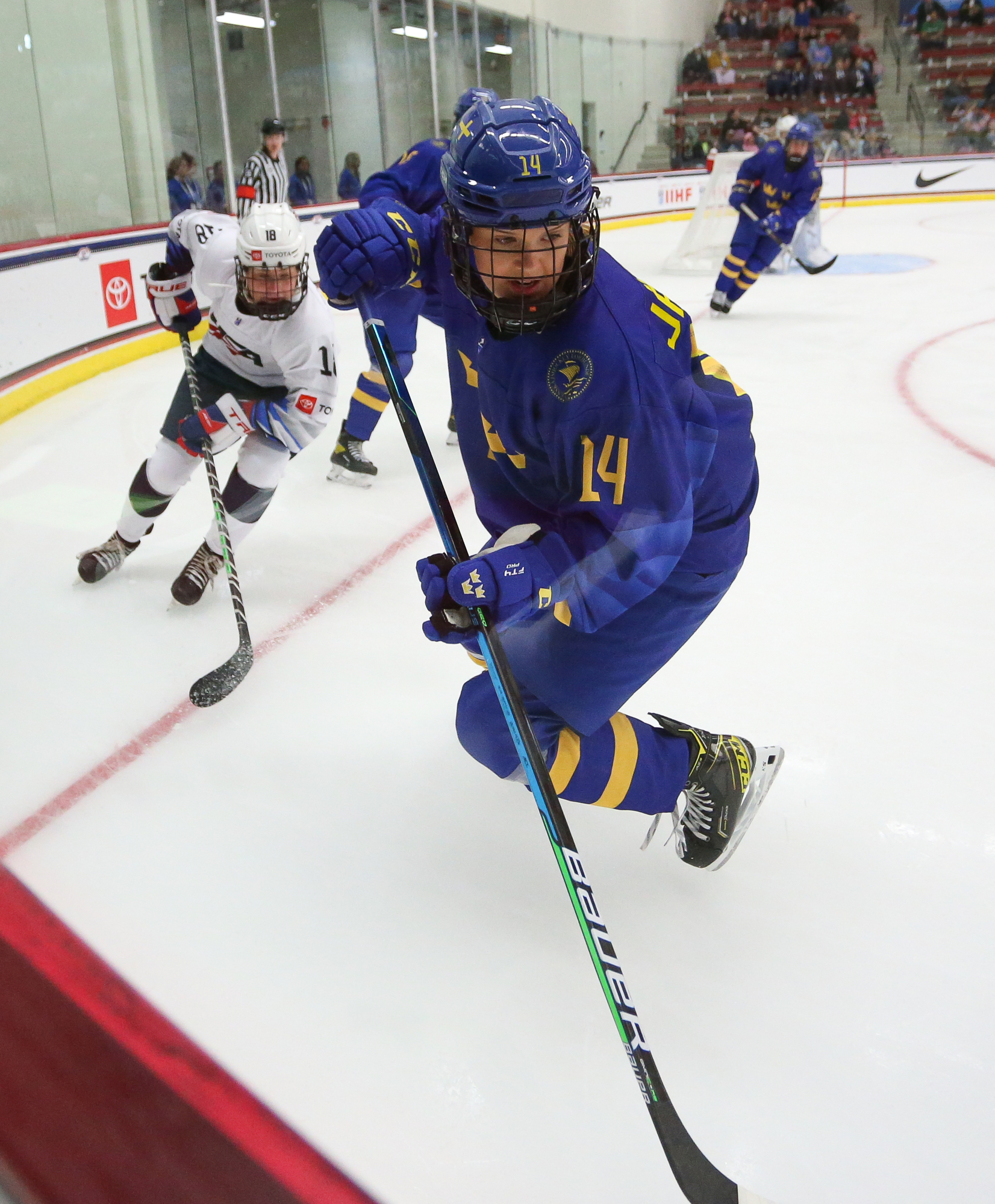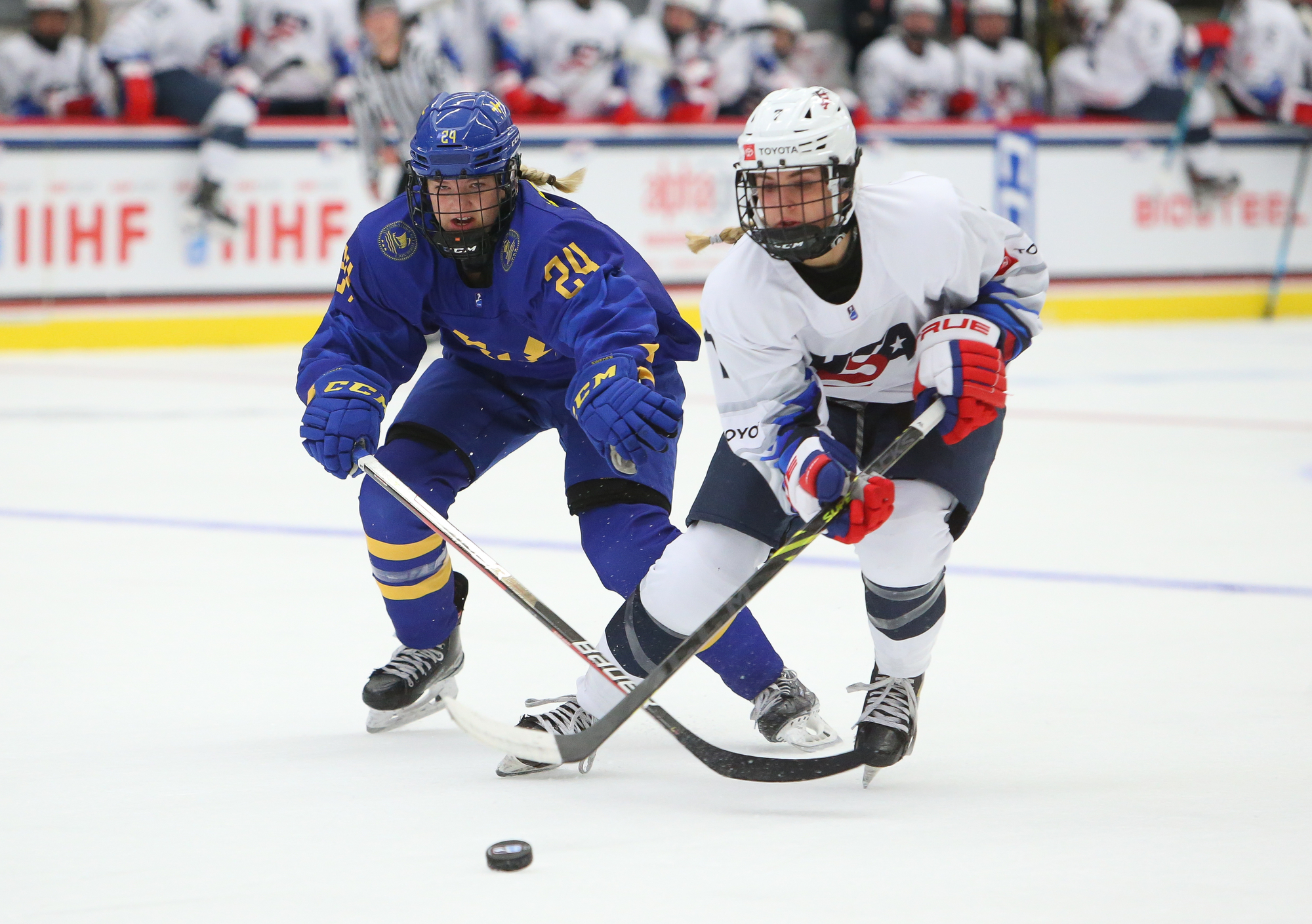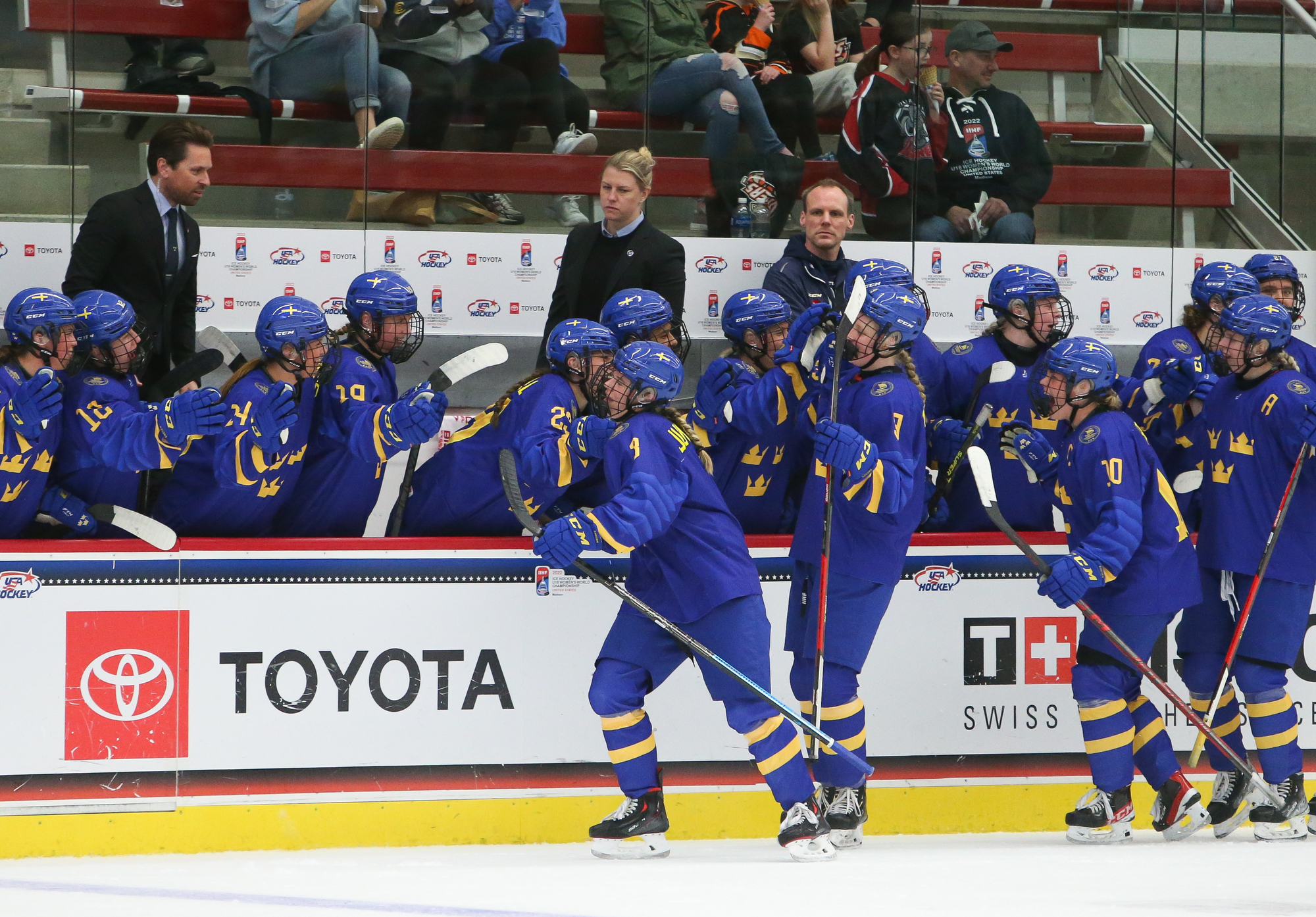The host Americans are one win away from capturing consecutive U18 Women's Worlds titles. On Sunday, despite struggling to stay out of the penalty box, they rallied to defeat Sweden 3-2 to move on to the 2022 gold medal game versus archrival Canada.