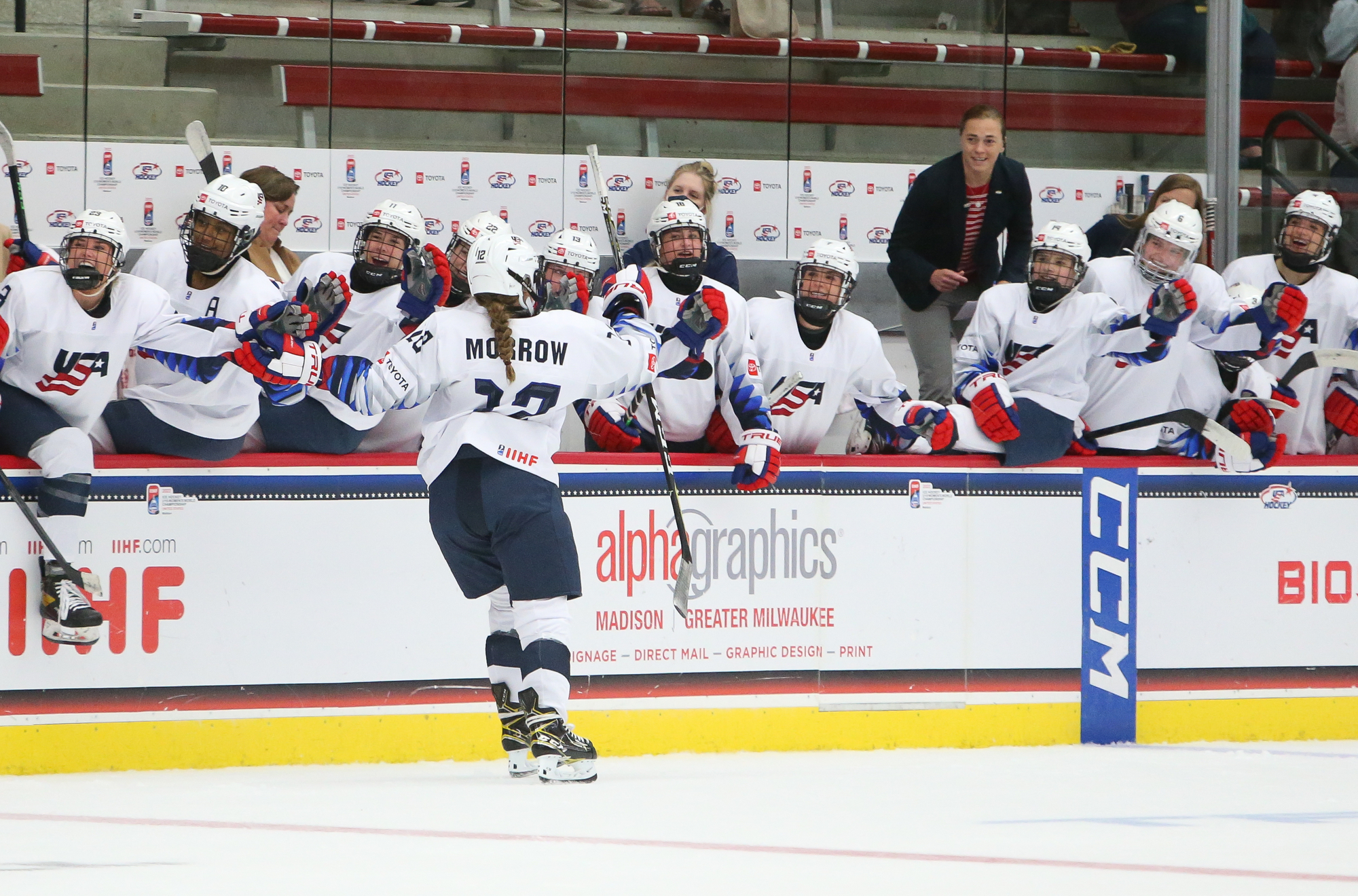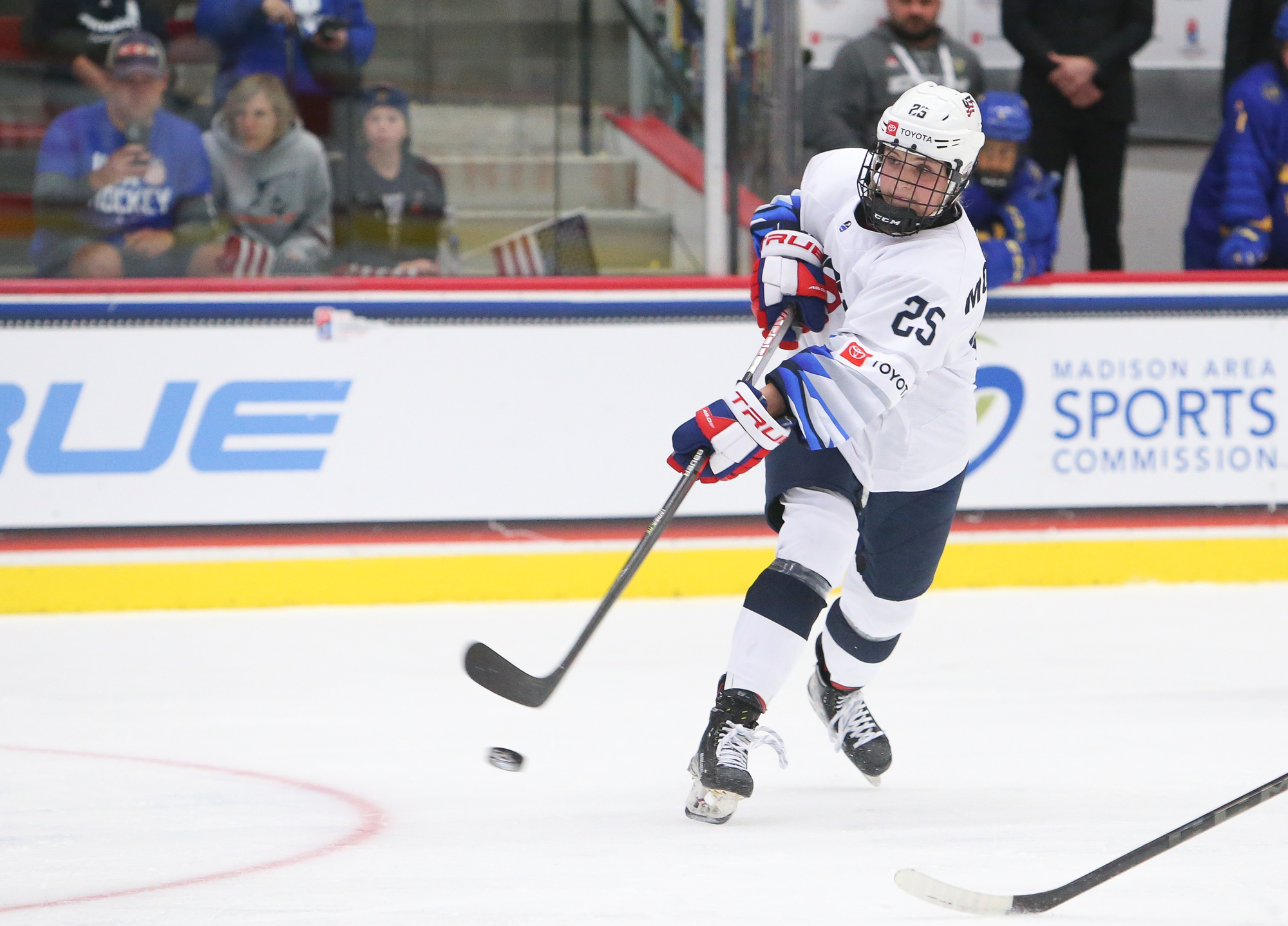 But here, it was clear the Swedes weren't going to roll over. Still, the Americans dominated with a 13-2 edge in shots. They hit a couple of posts before Morrow kicked off the scoring at 12:51 with a satisfying bar-down goal from a tough angle in the right faceoff circle.