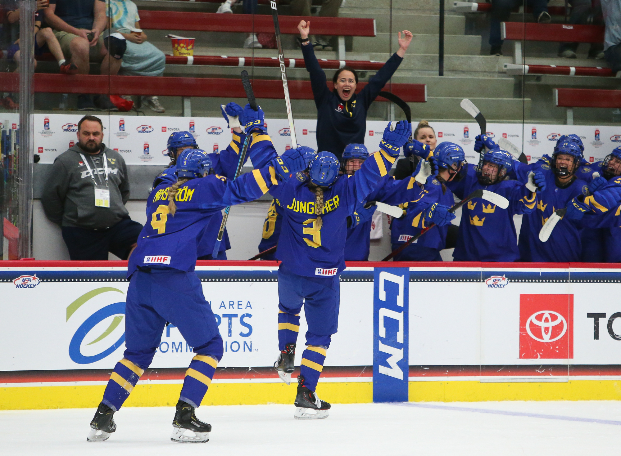 Stella Lindell and Mira Jungaker replied for Sweden. Tuva Kandell, the leading scorer among Swedish blueliners, added two assists.