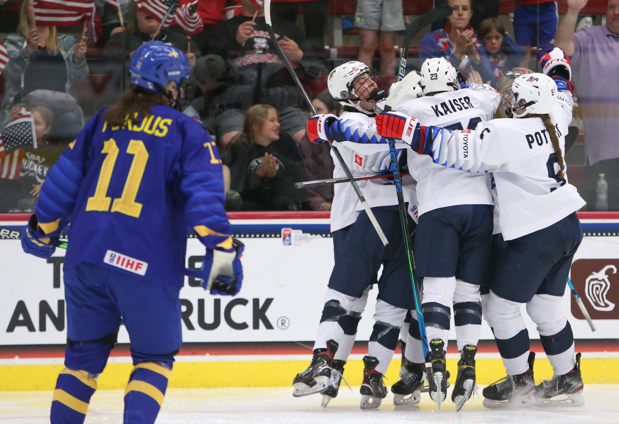 Over the years, the Swedes have struggled to beat the Stars and Stripes. For example, the Americans walloped Sweden 9-3 in the 2018 gold medal game in Dmitrov, Russia. The bigger U.S. win ever over Sweden was 10-0 in 2011. And of course, the U.S. won the opener here in Madison 6-1, kicking off a preliminary round with a goal difference of 18-1.