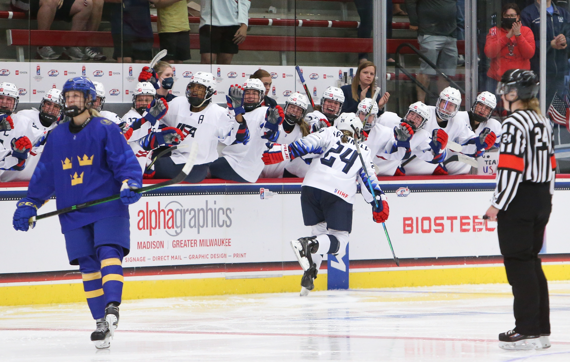 The Americans maintained their perfect record against Sweden at the U18 Women’s Worlds with 14 straight wins and a goal difference of 82-11.