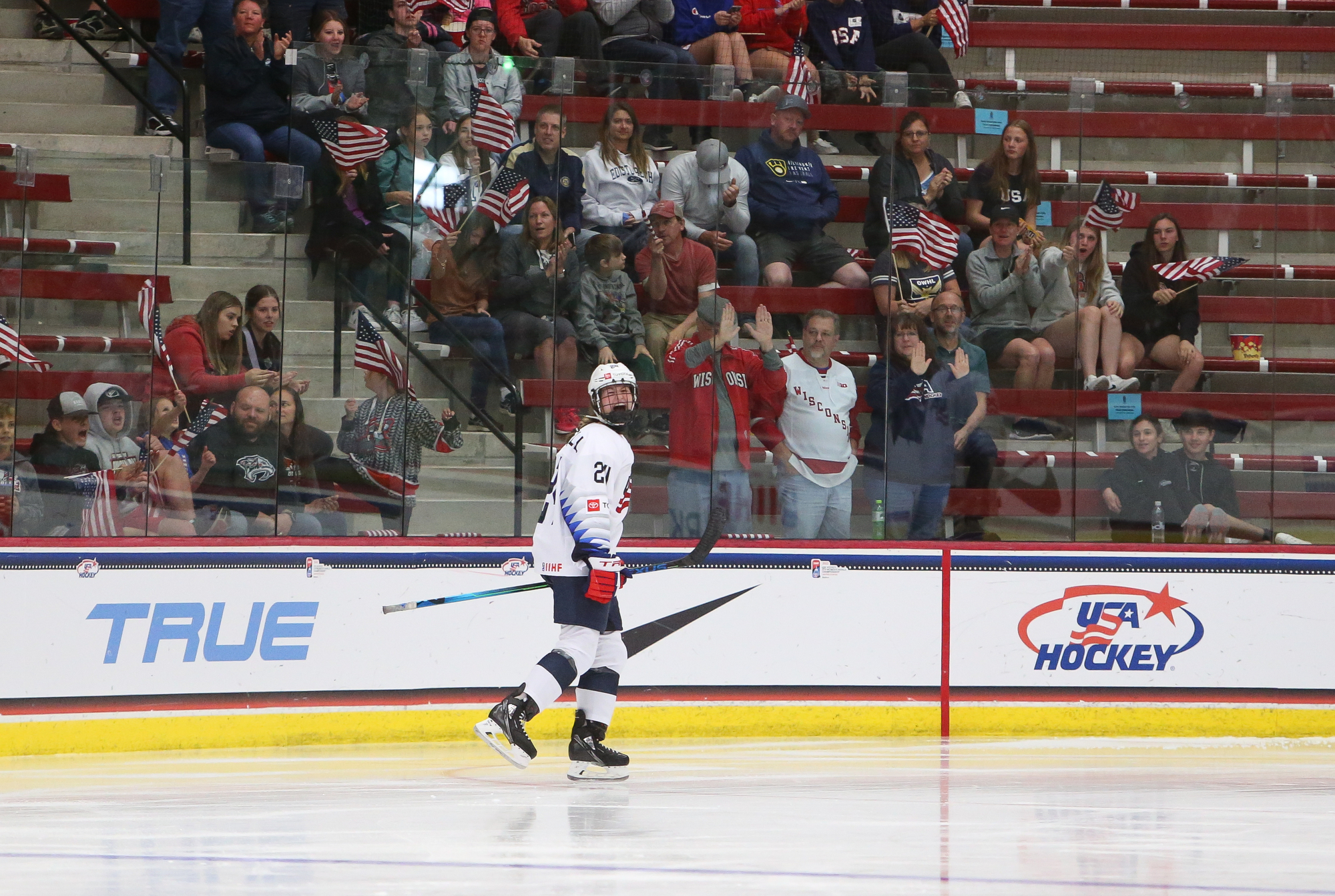 In the third period, the Americans came out storming, buoyed by a sea of waving flags and chants of "USA!" at LaBahn Arena. They made it 2-2 at 1:18 when Scannell powered off the half-wall into the slot and zinged the puck high past Jonsson's blocker.