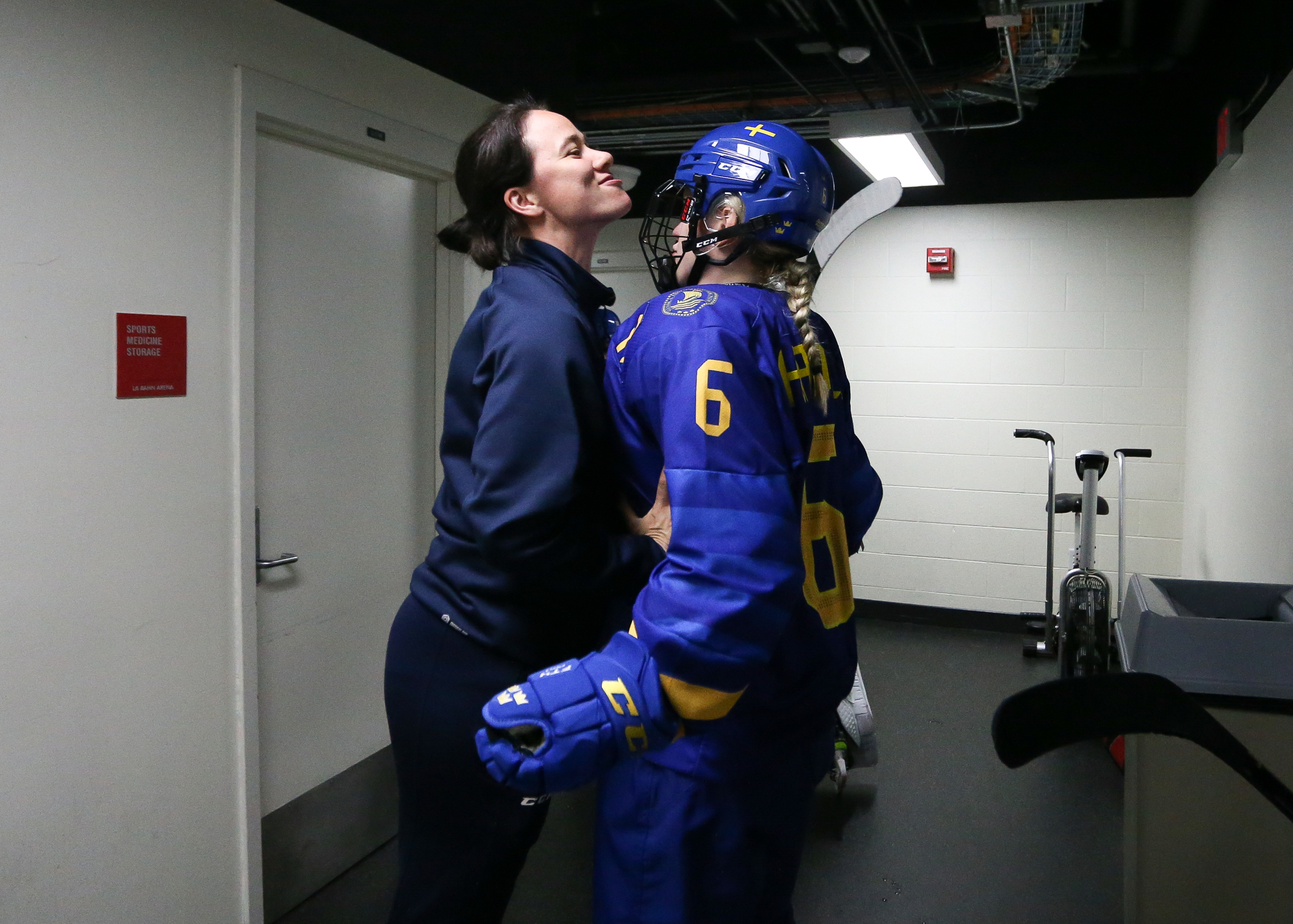 When Morrow and Tessa Janecke took tripping and roughing penalties on the same sequence, the Swedes got a full two minutes with a 5-on-3, but still couldn't cash in. Jungaker set up captain Nicole Hall for a back door tap-in, but Hall put it through the crease. Mira Markstrom hammered one off Bergmann's right post.