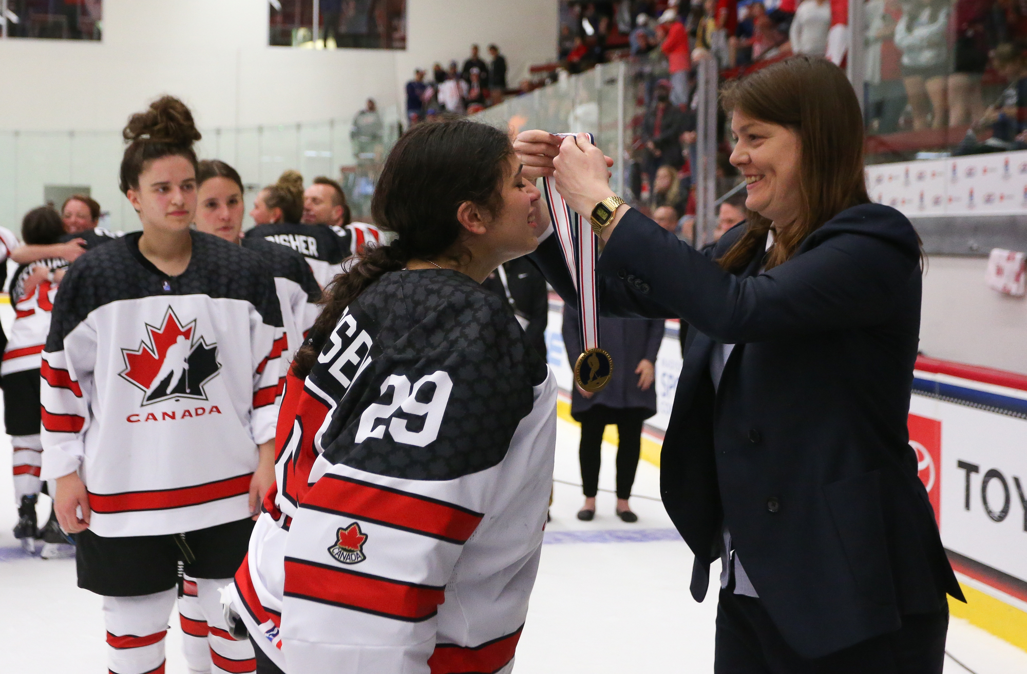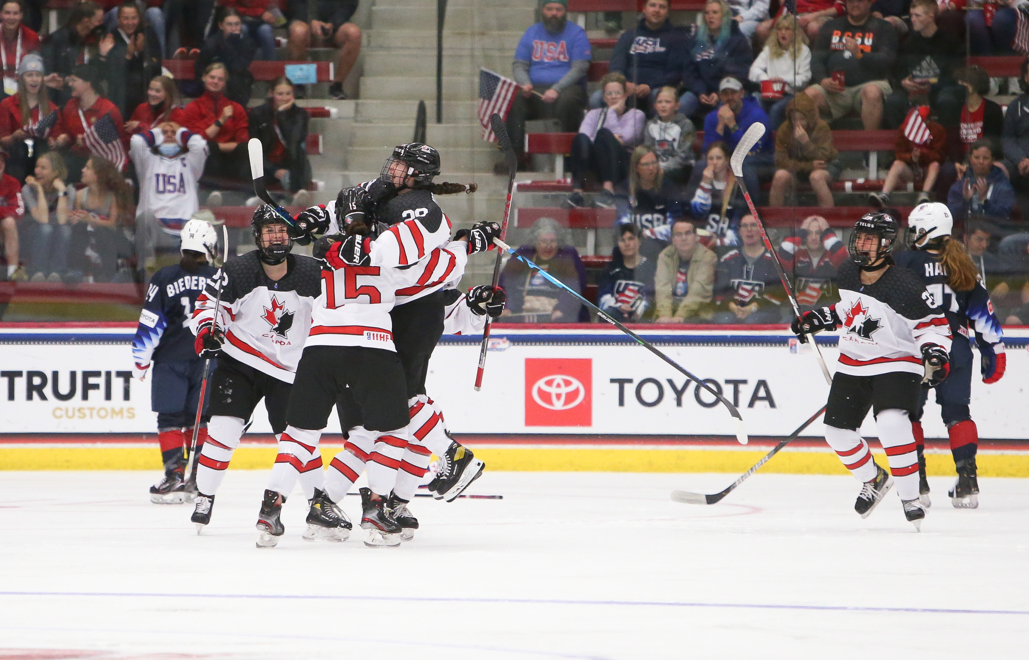 Canada was eager for revenge after getting demolished 7-0 by coach Katie Lachapelle's Americans in the preliminary round. That was the most goals Canada has ever allowed versus the U.S., the largest margin of Canadian defeat, and the only time Canada has been shut out by the U.S. at this tournament.