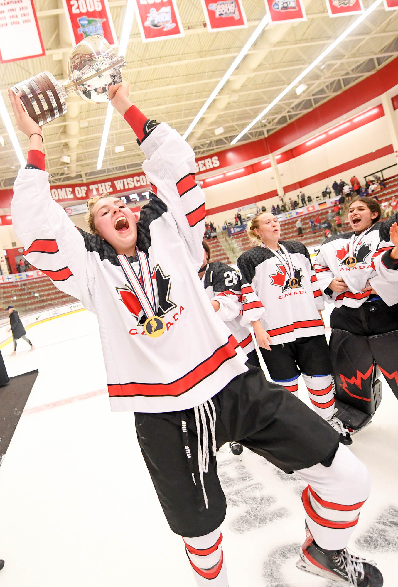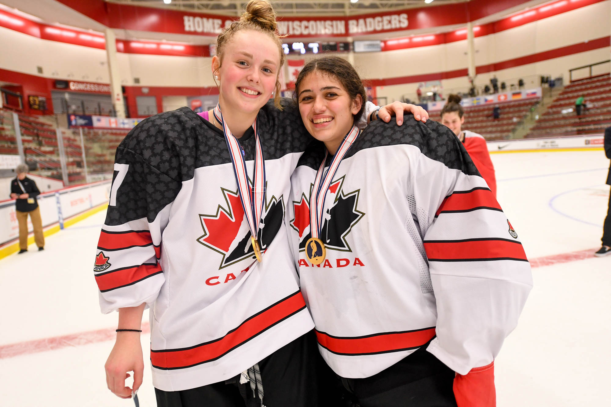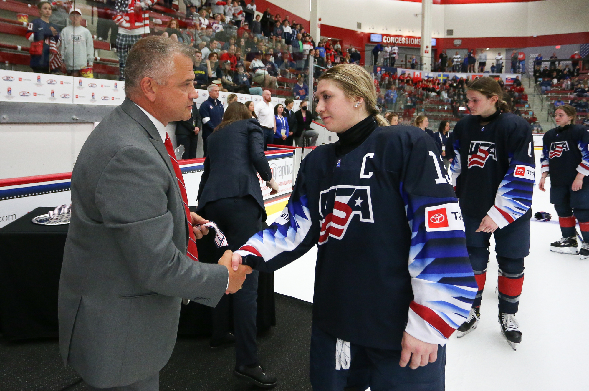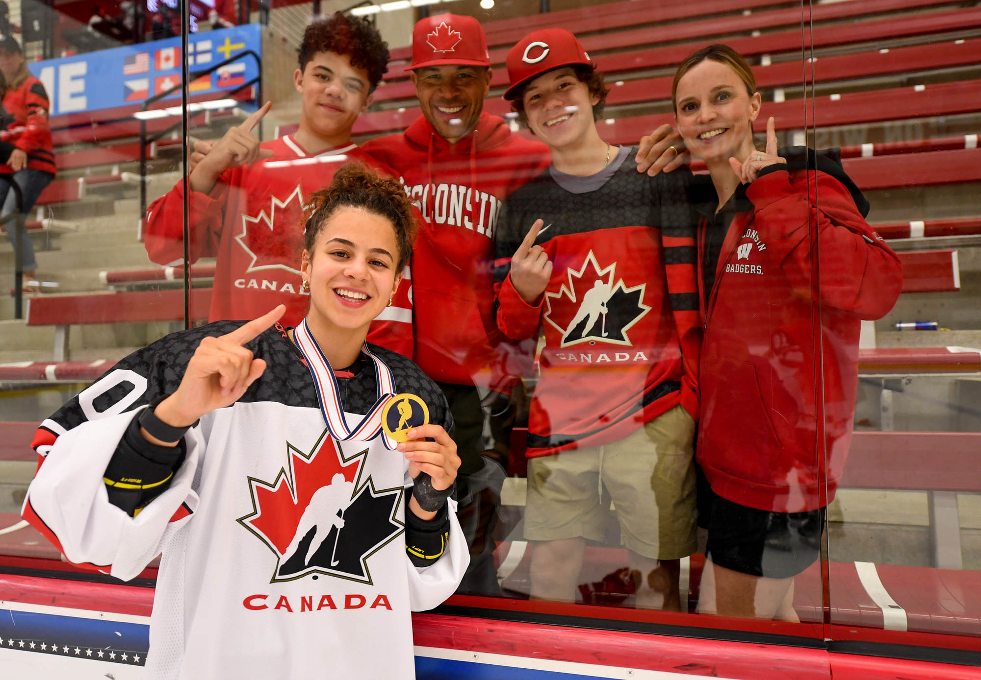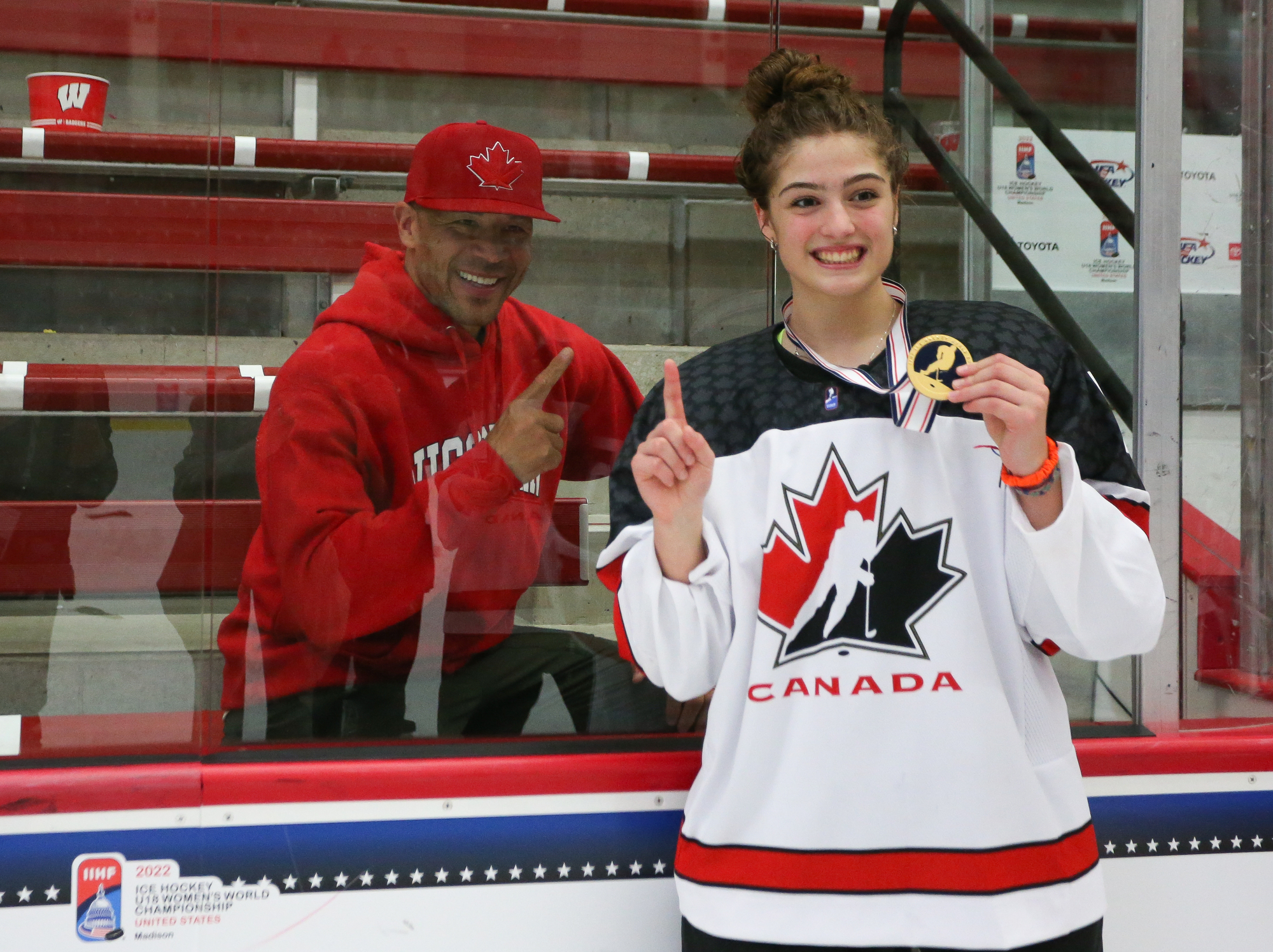 Former Calgary Flames captain Jarome Iginla – whose Olympic exploits include racking up three points in the 2002 gold medal game in Salt Lake City and setting up Sidney Crosby’s overtime winner in the 2010 final in Vancouver – was there with his family to cheer on his daughter Jade. Ryan Suter of the Dallas Stars, who owns Middleton’s Capitol Ice Arena (the secondary venue for this tournament) and the USHL’s Madison Capitals, also watched with his family.