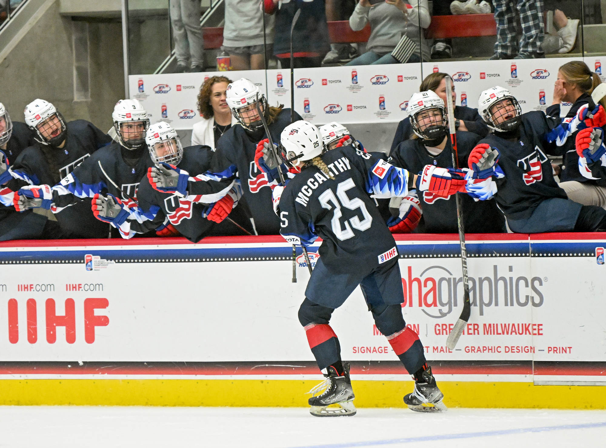 The LaBahn Arena fans remained exuberant, doing the wave. The U.S. rewarded their ardor with 1:37 left in the period. McCarthy cut the deficit to 3-1 on the power play. She cut past Alex Law inside the blue line and winged a long shot that eluded Pietersen.