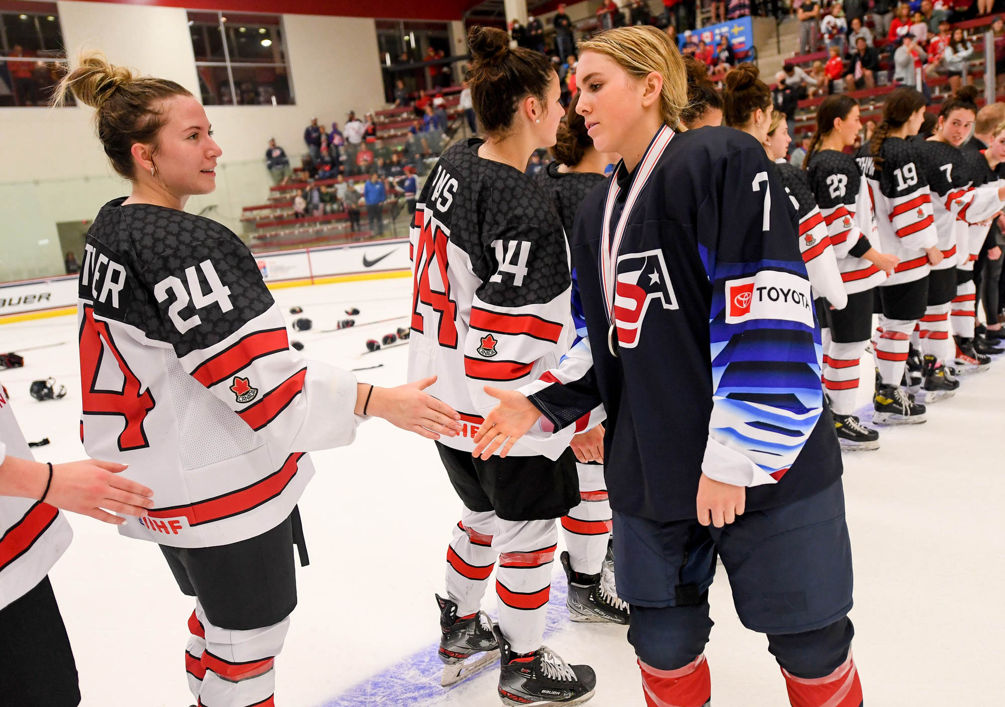 "Three goals is a big deficit," said the U.S.'s Sydney Morrow, a tournament all-star who led all blueliners in scoring (1+7=8). "And in these games, which are super tight and back and forth, it's hard to get that deficit back. But we gave it everything and we just fell a little short."