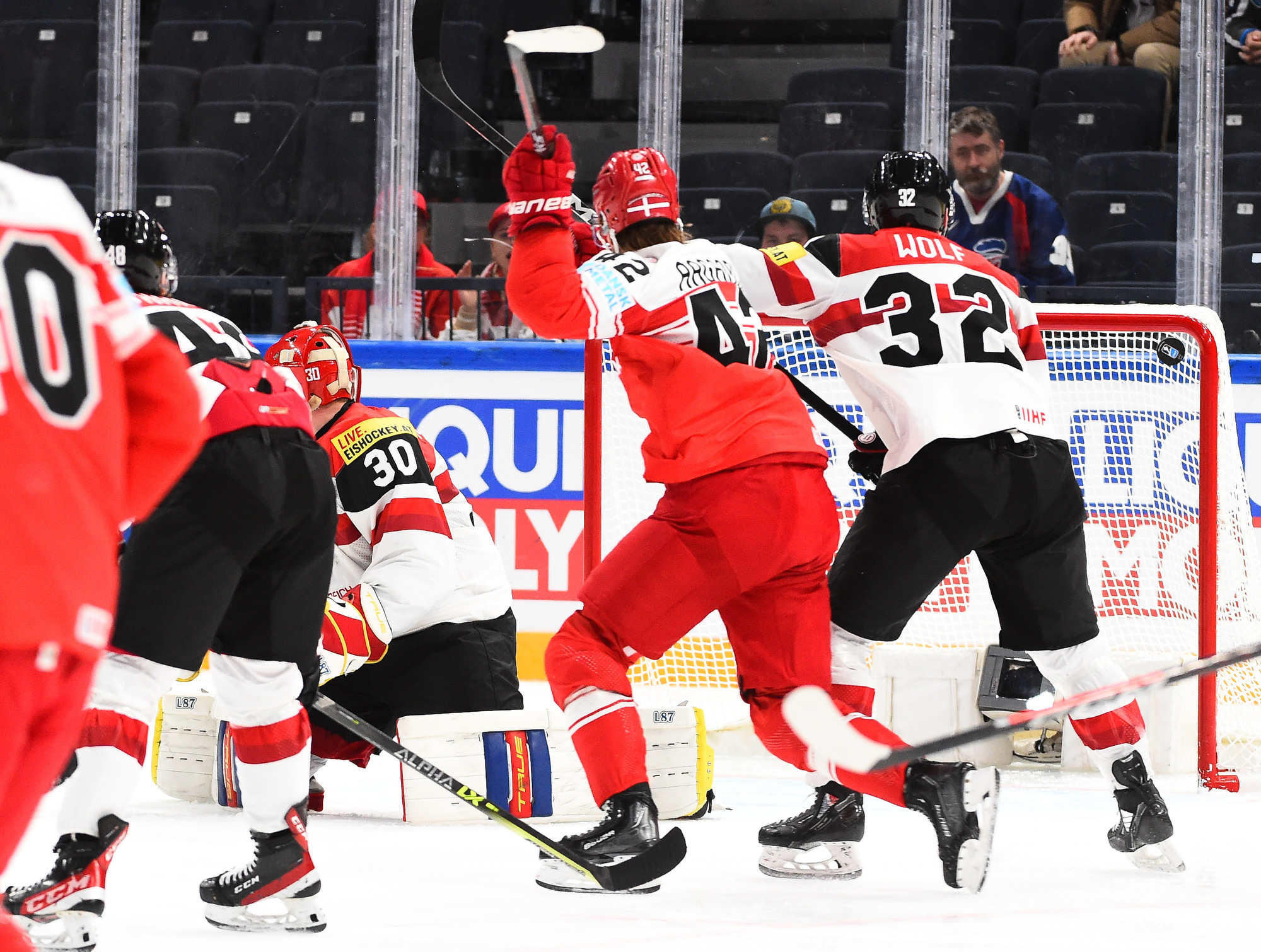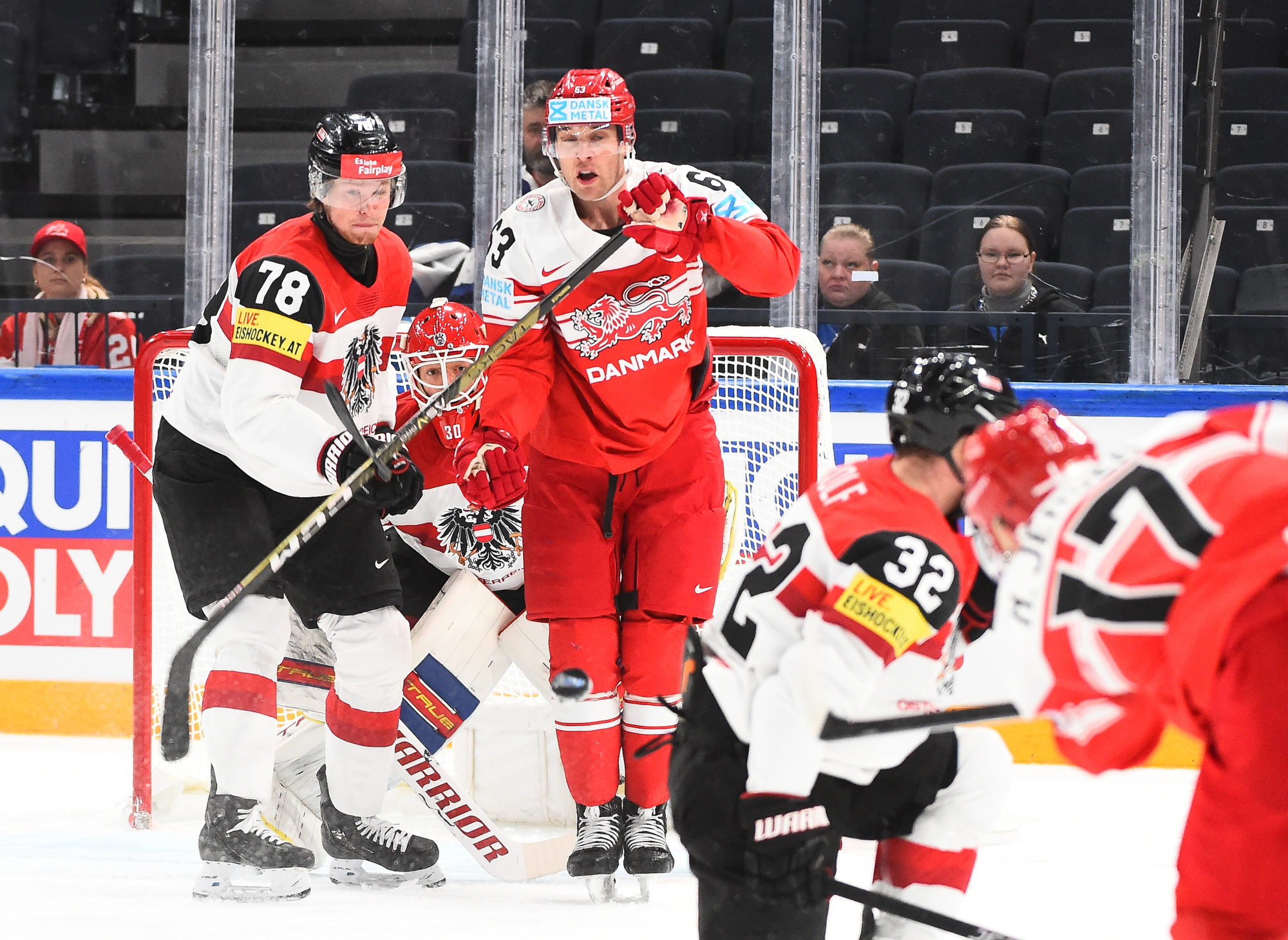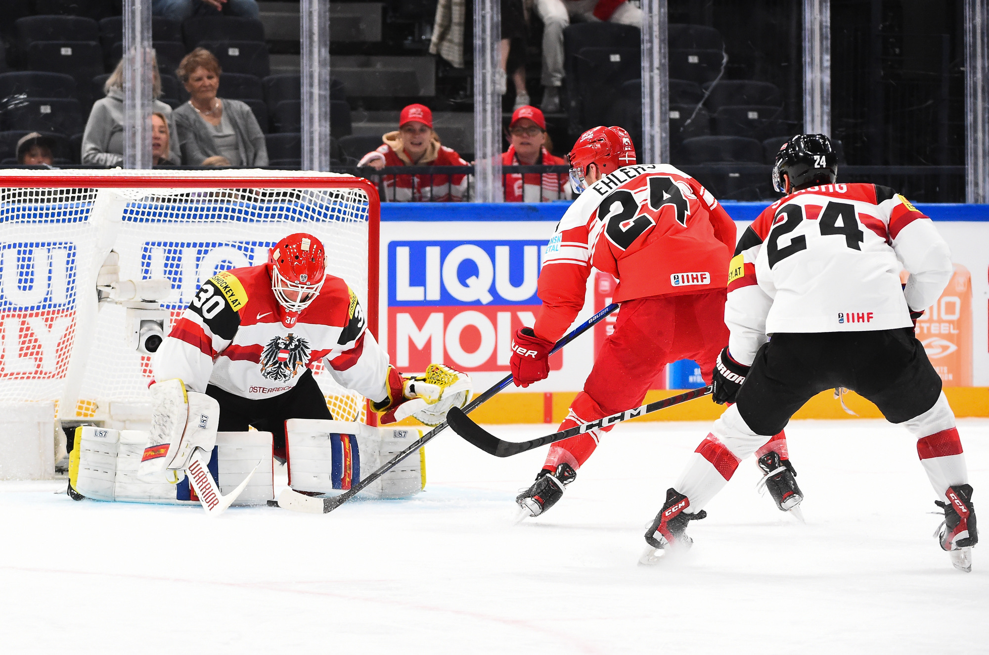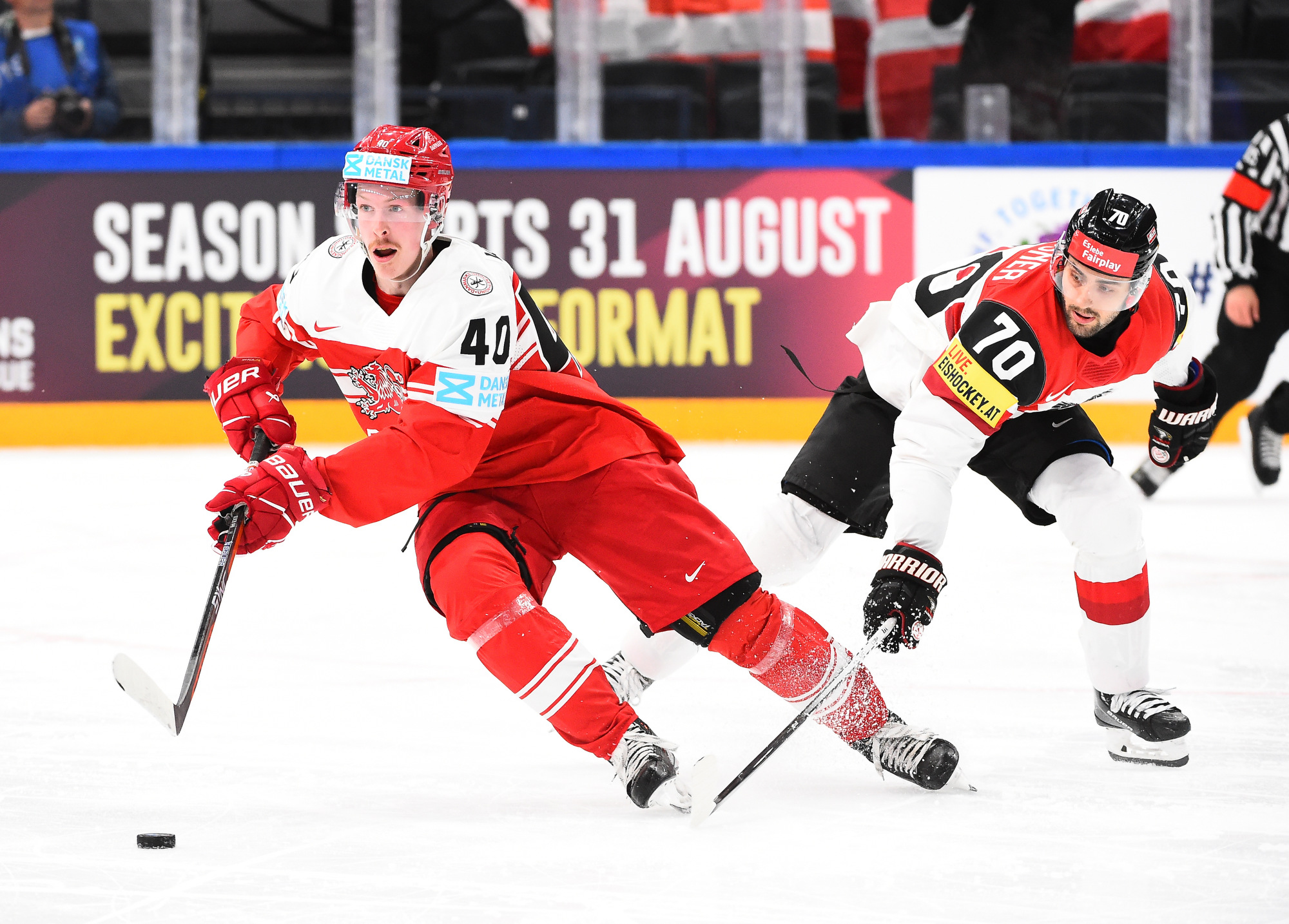 Nikolaj Ehlers (#24) extended his goal streak as Denmark defeated Austria 6-2 for its third consecutive victory at the 2023 IIHF Ice Hockey World Championship.