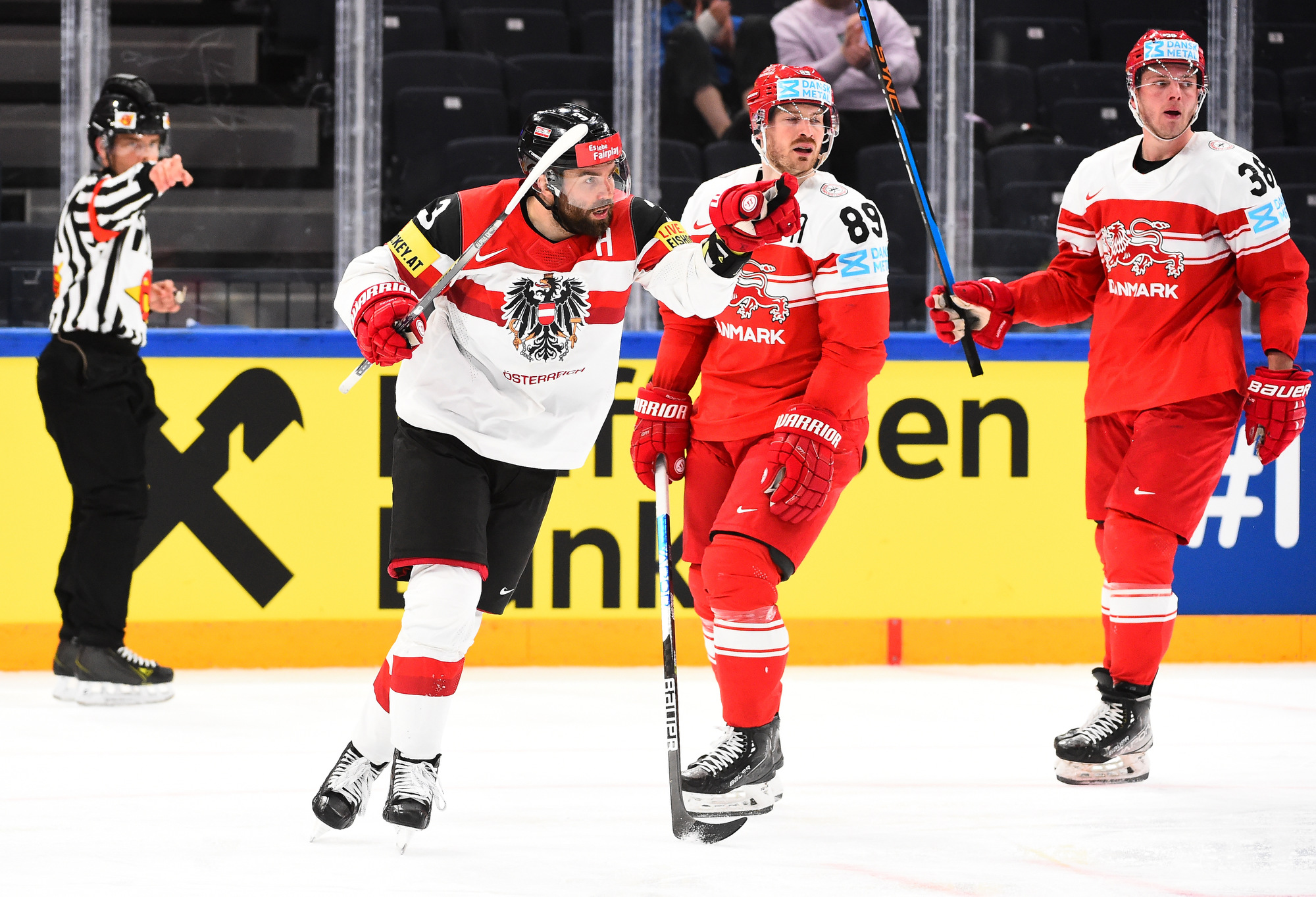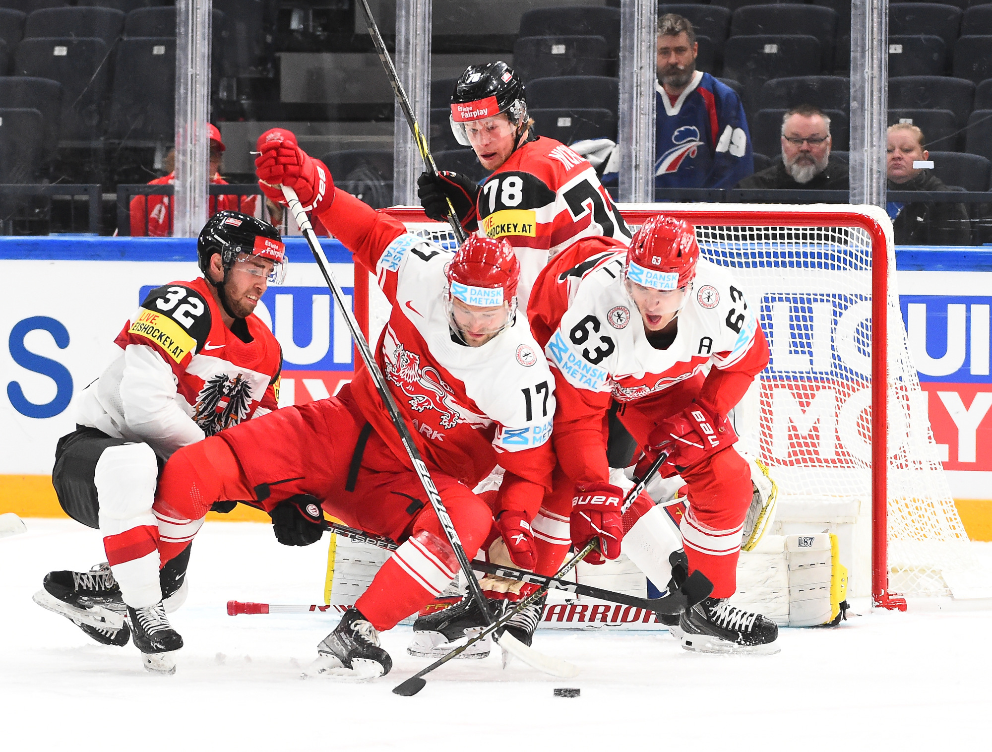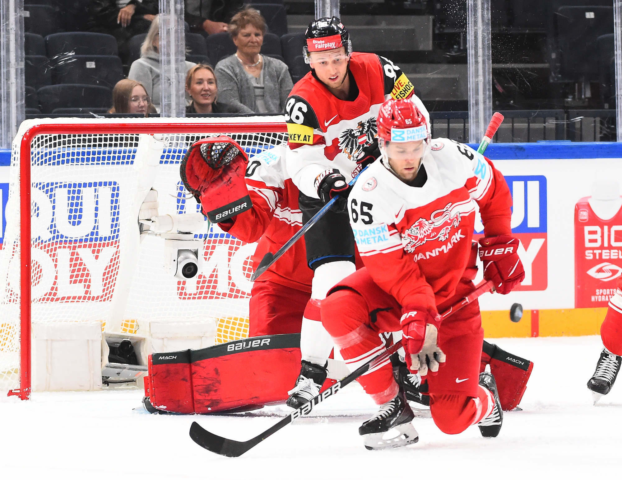 Nikolaj Ehlers (#24) extended his goal streak as Denmark defeated Austria 6-2 for its third consecutive victory at the 2023 IIHF Ice Hockey World Championship.
