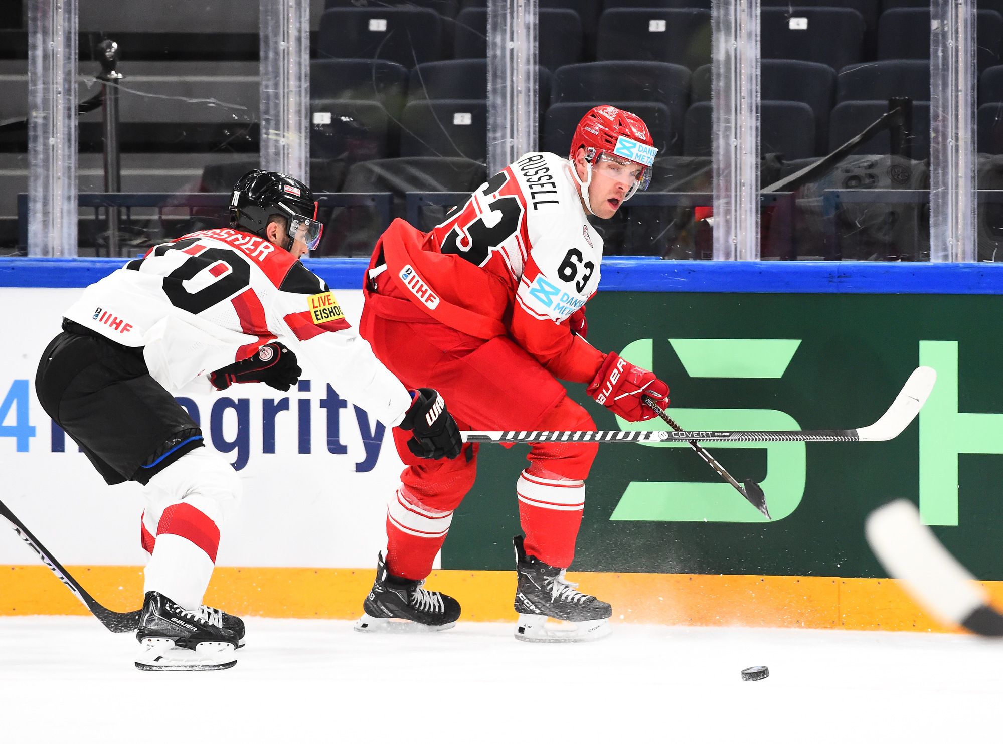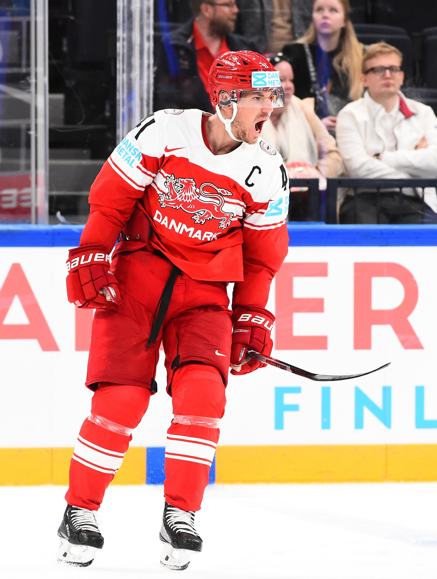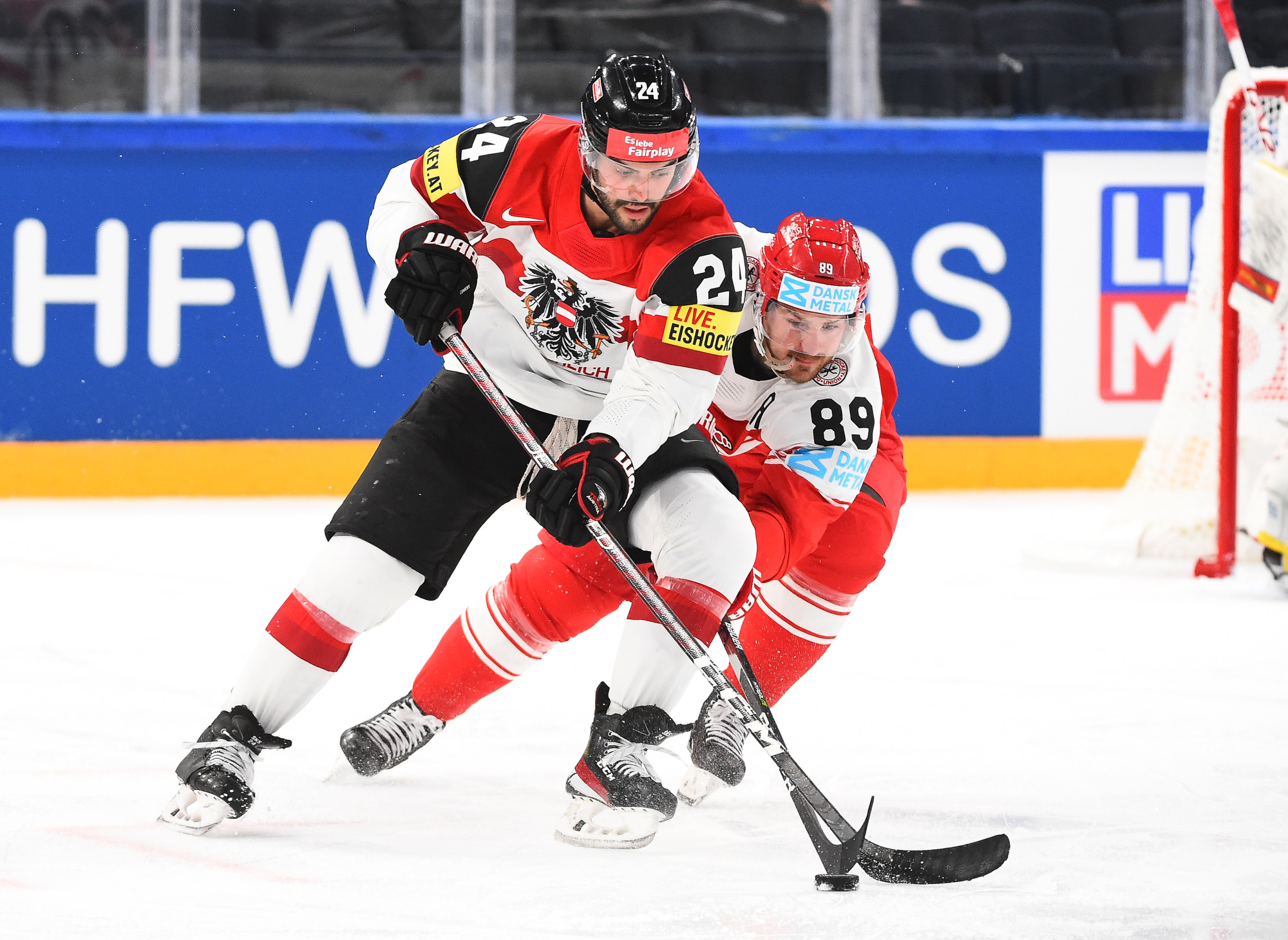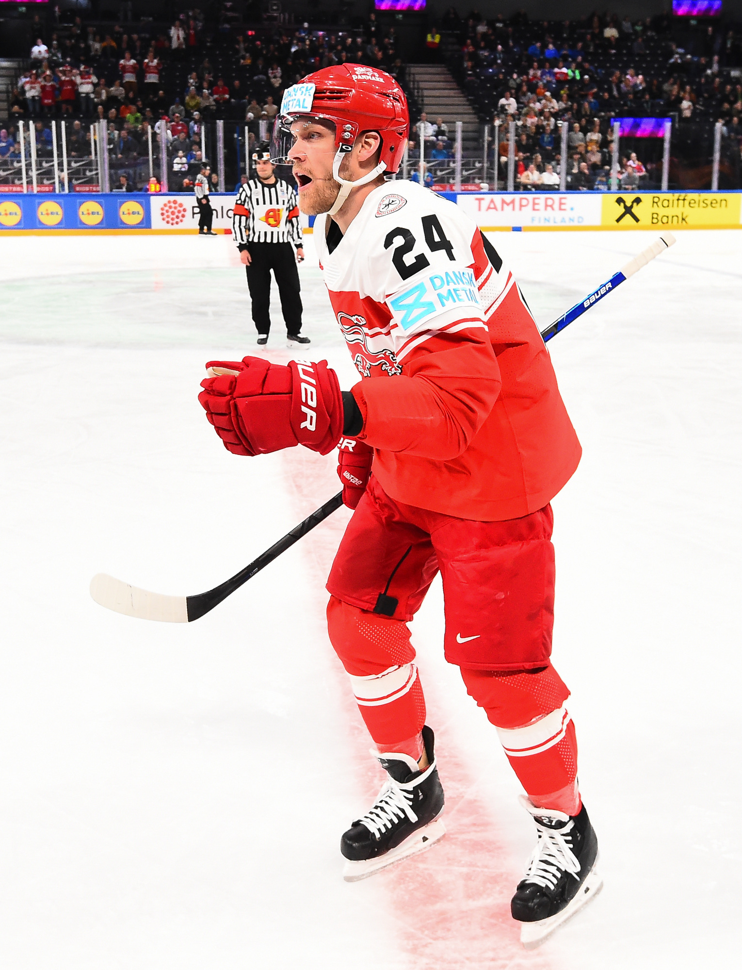 Nikolaj Ehlers (#24) extended his goal streak as Denmark defeated Austria 6-2 for its third consecutive victory at the 2023 IIHF Ice Hockey World Championship.