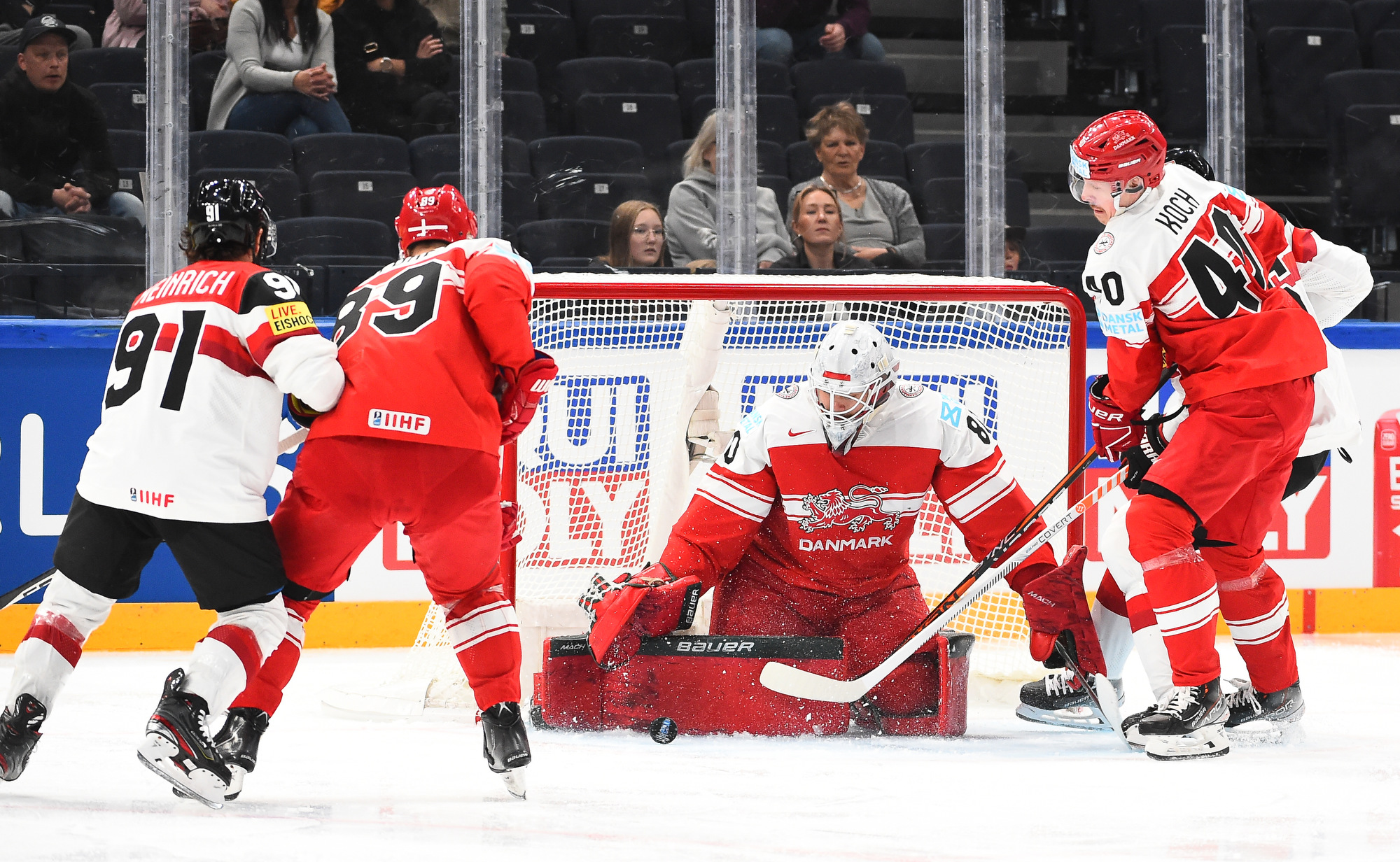 Danish starting goalie Frederik Dichow had another quality outing as shots favoured Denmark 27-21. David Kickert was swamped in net for Austria.