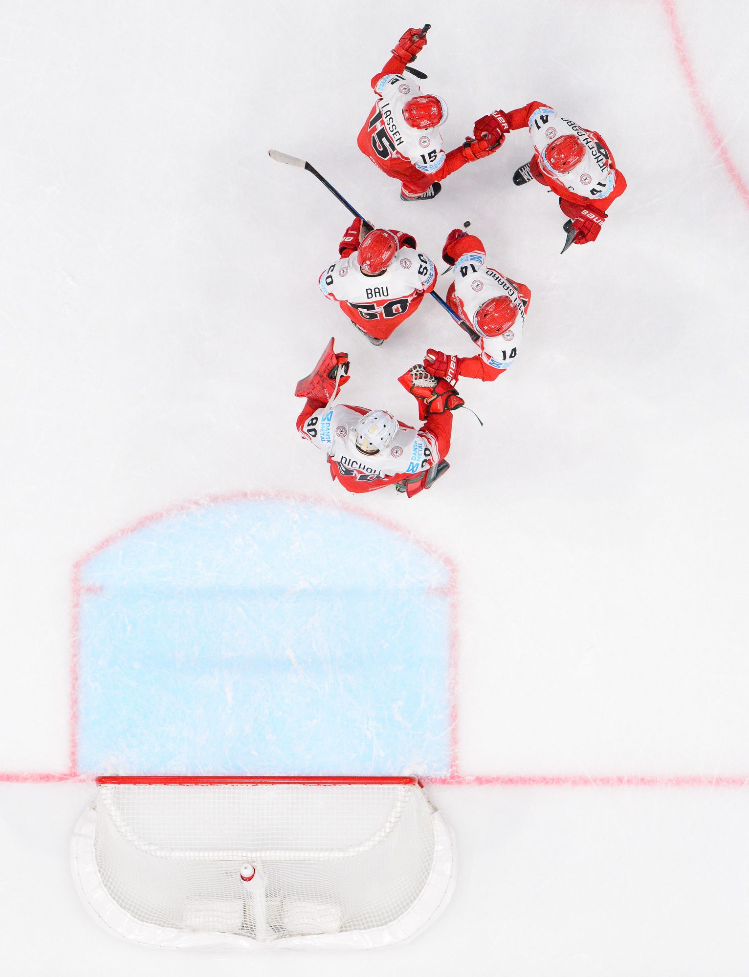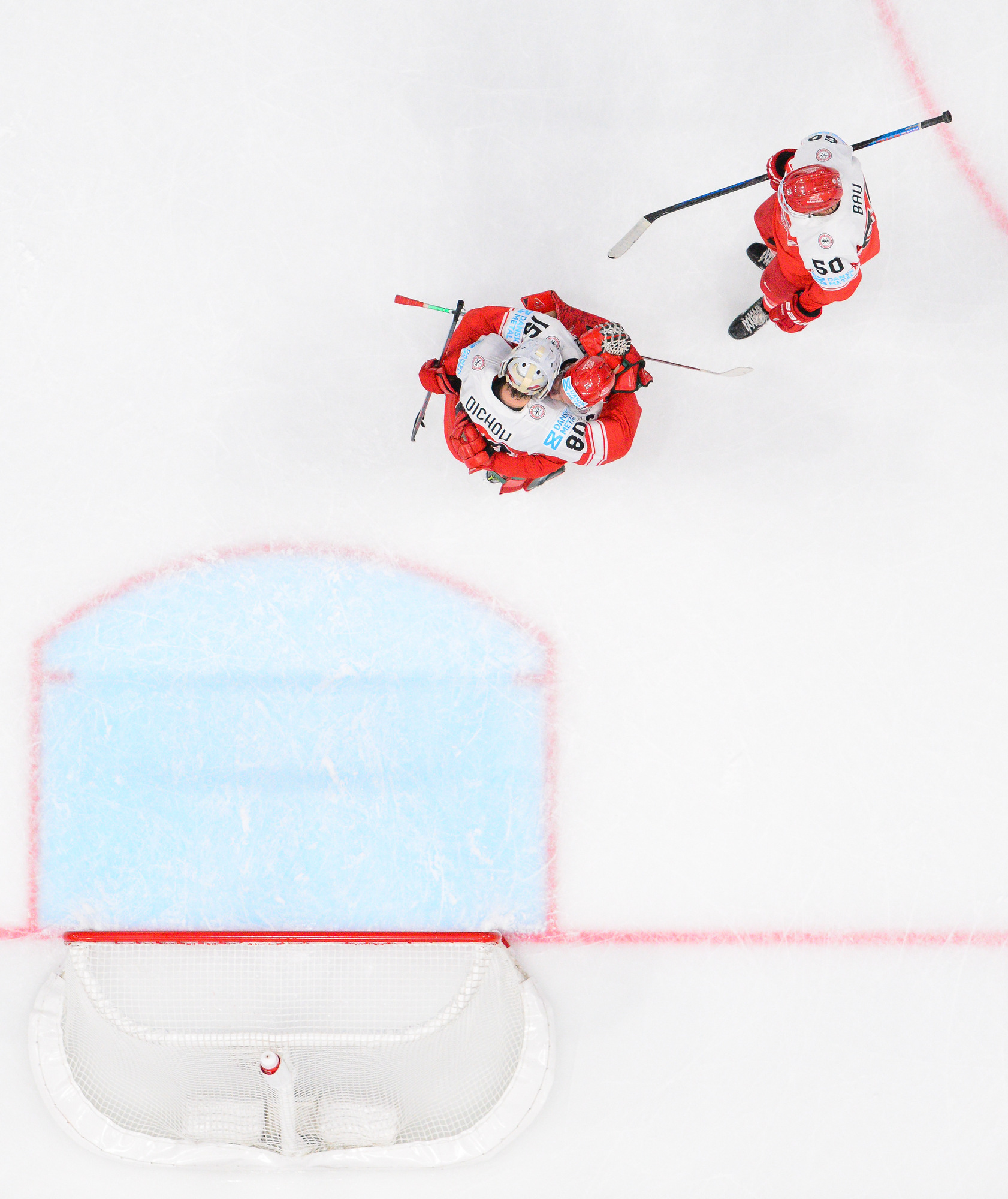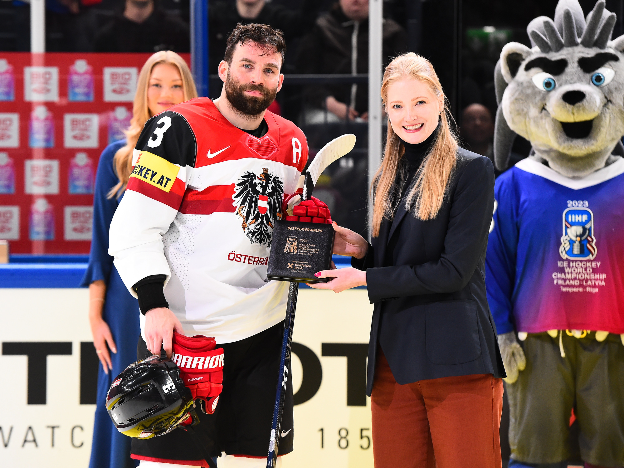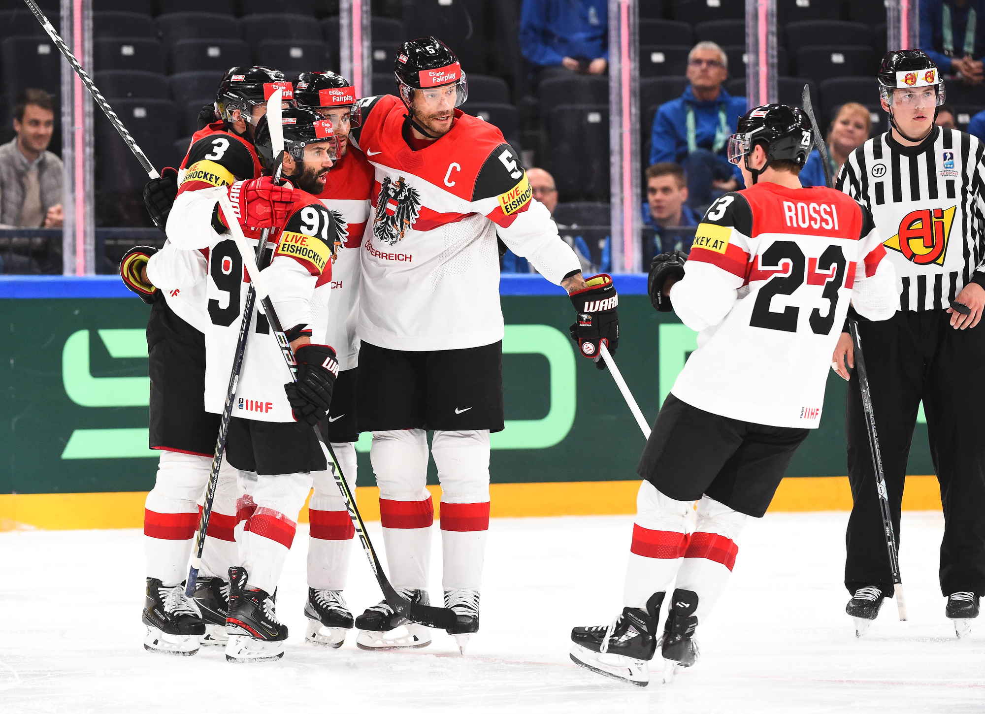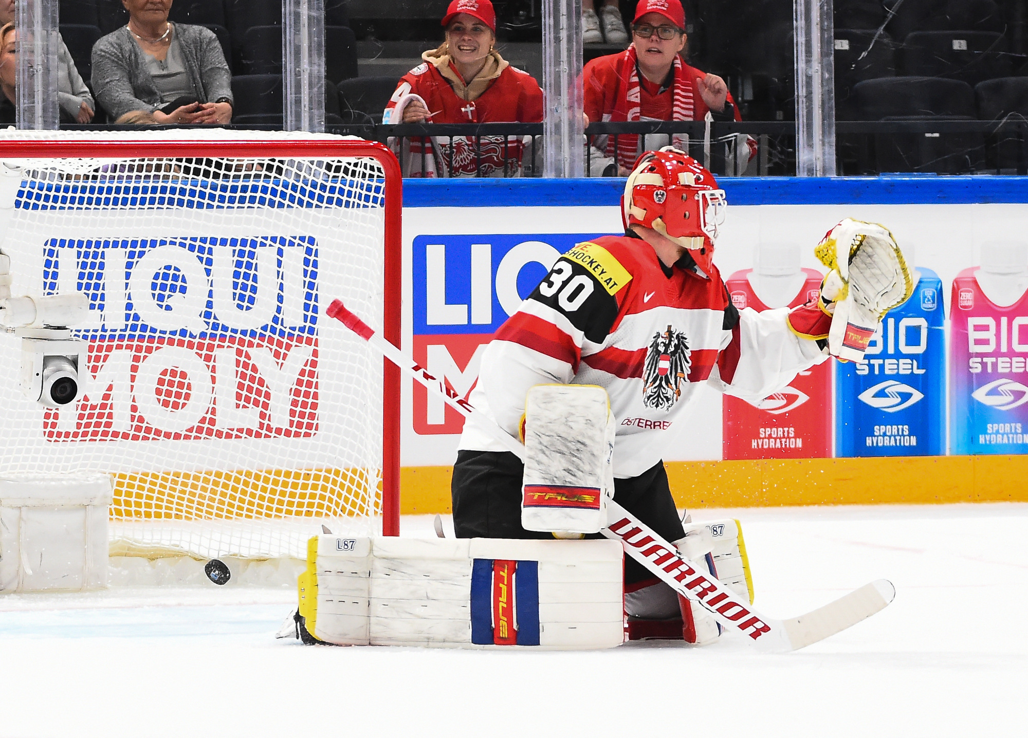 Despite the enthusiastic singing and drum-beating of United Fans Team Austria (UFTA), which unfurled big flags and banners over their section, coach Roger Bader’s boys couldn’t mount a comeback. Austria had to make do without defenceman David Reinbacher, who was injured against Sweden.