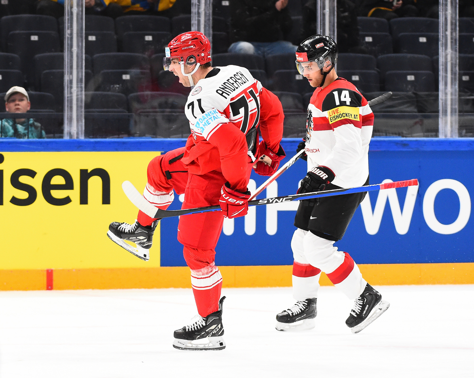 Niklas Andersen set the pace with a goal and two assists as Denmark downed Austria 6-2 on Tuesday to stay unbeaten in Tampere. Denmark has won three straight games to open the IIHF World Championship for the first time in history.