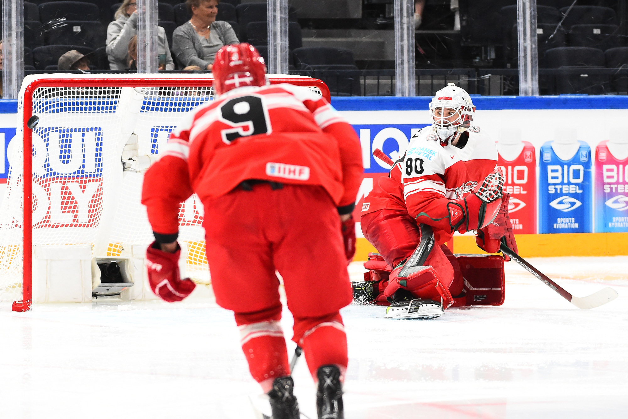 At 6:37 of the third period, captain Jesper Jensen Aabo made it 3-1 for Denmark with a rising slapper.