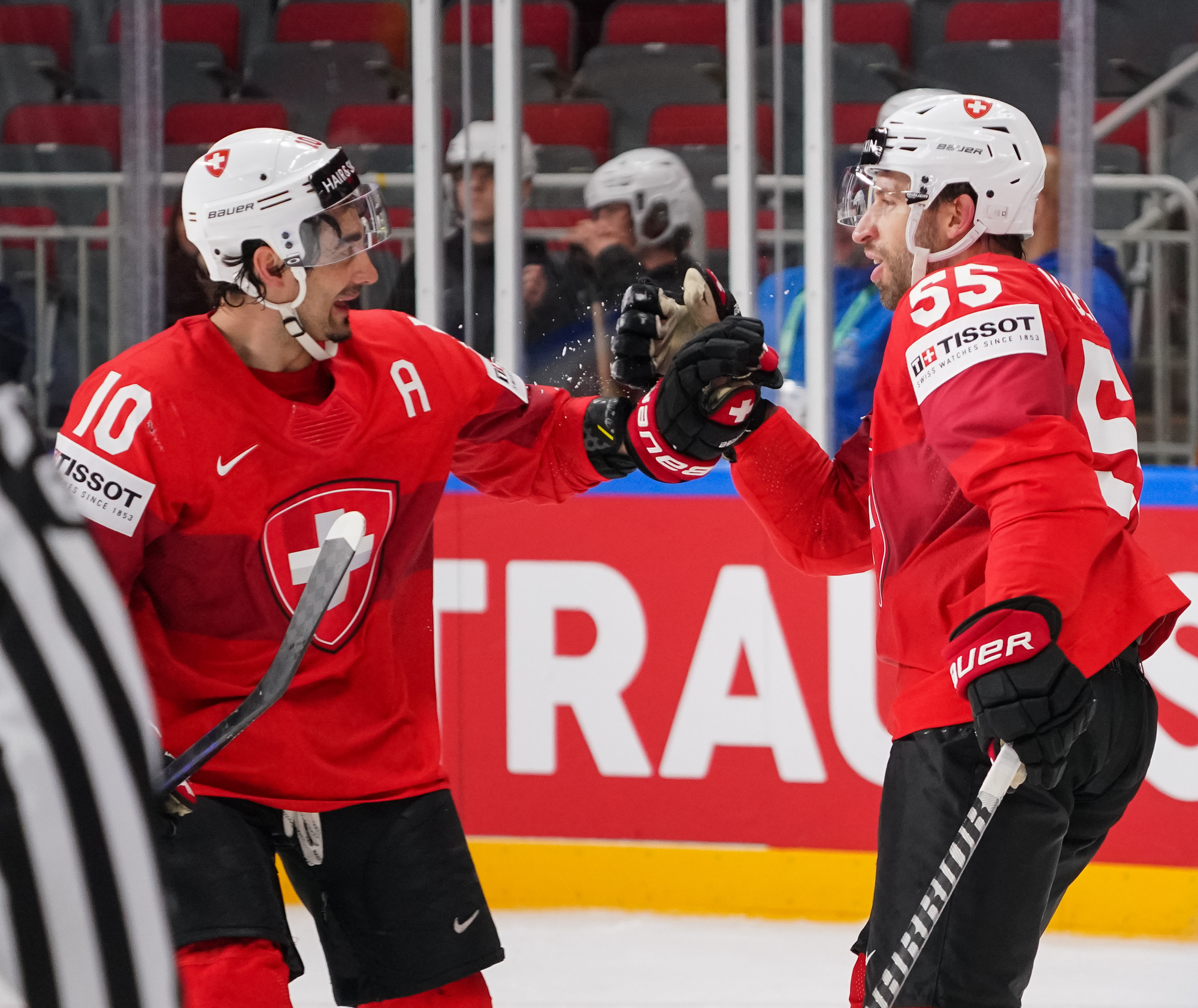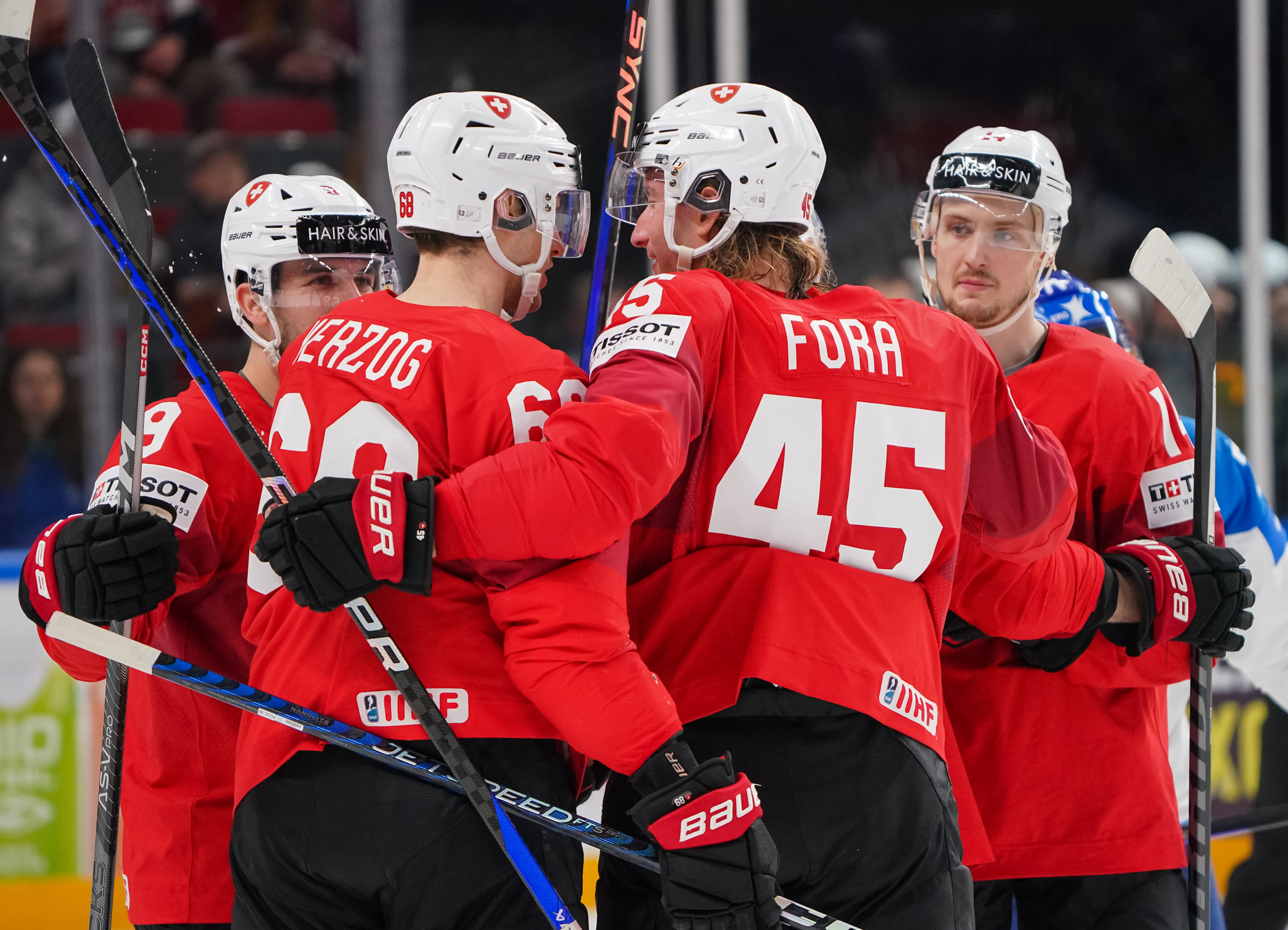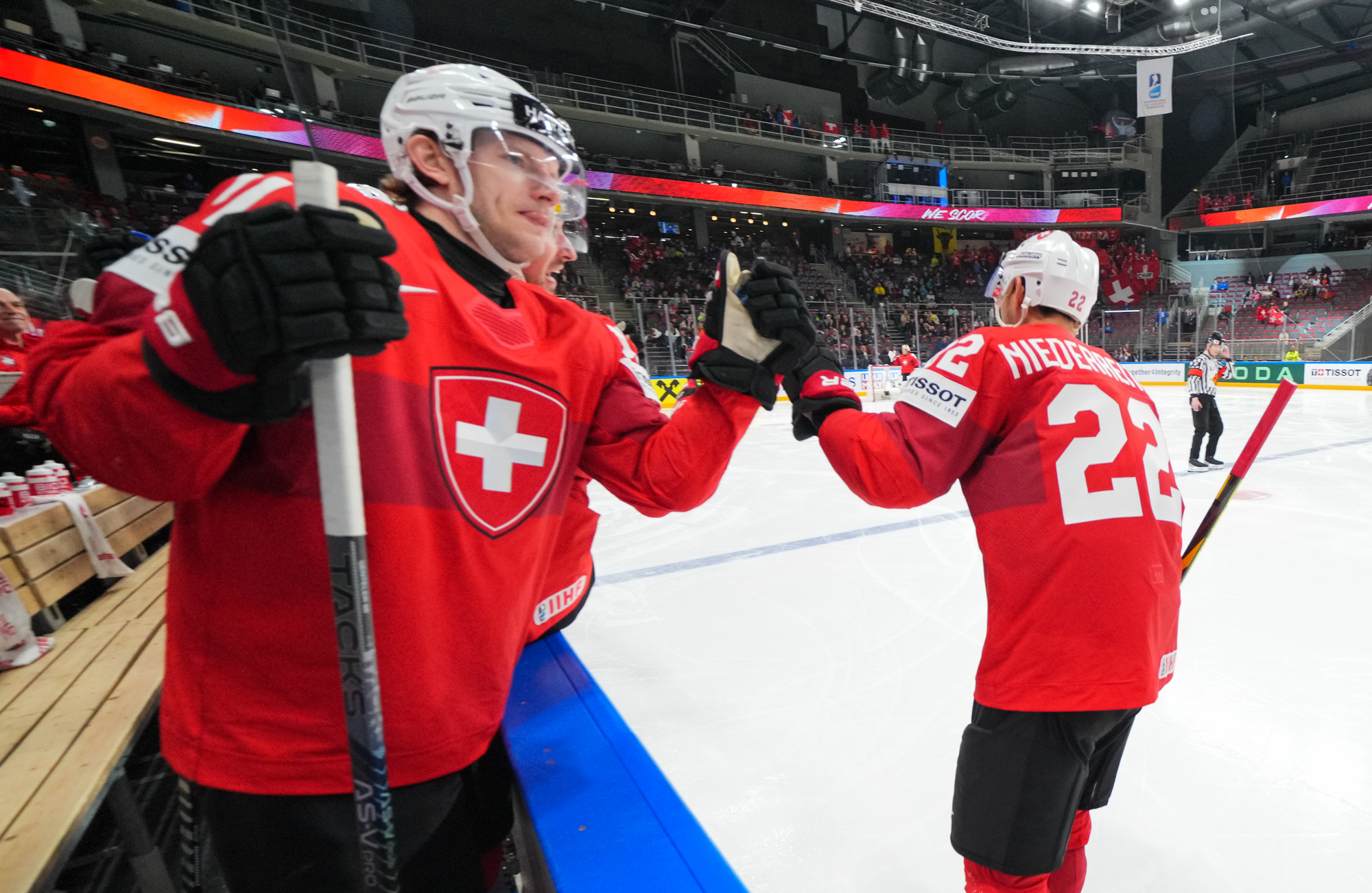 The Swiss added what they thought was a fourth goal off a nice series of passes, but referee Liam Sewell ruled that there was goalie interference when Andrea Glauser's shot entered the net.