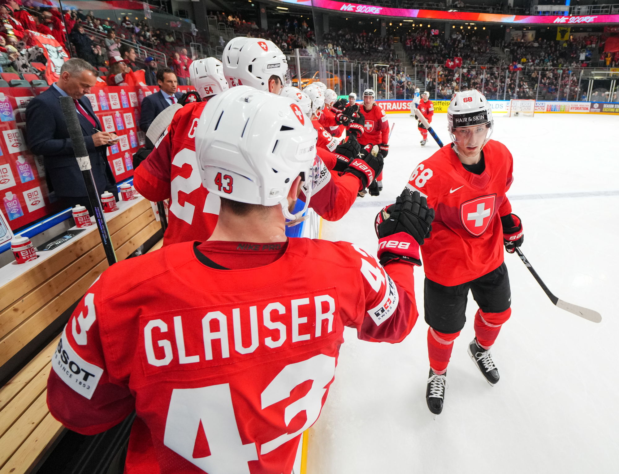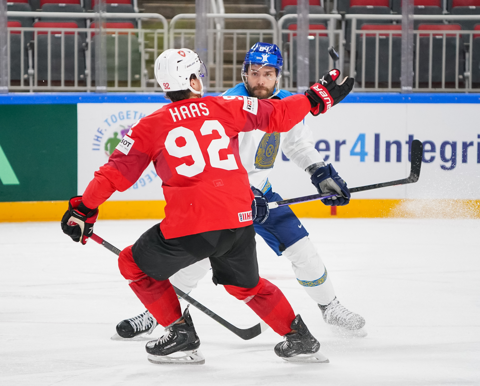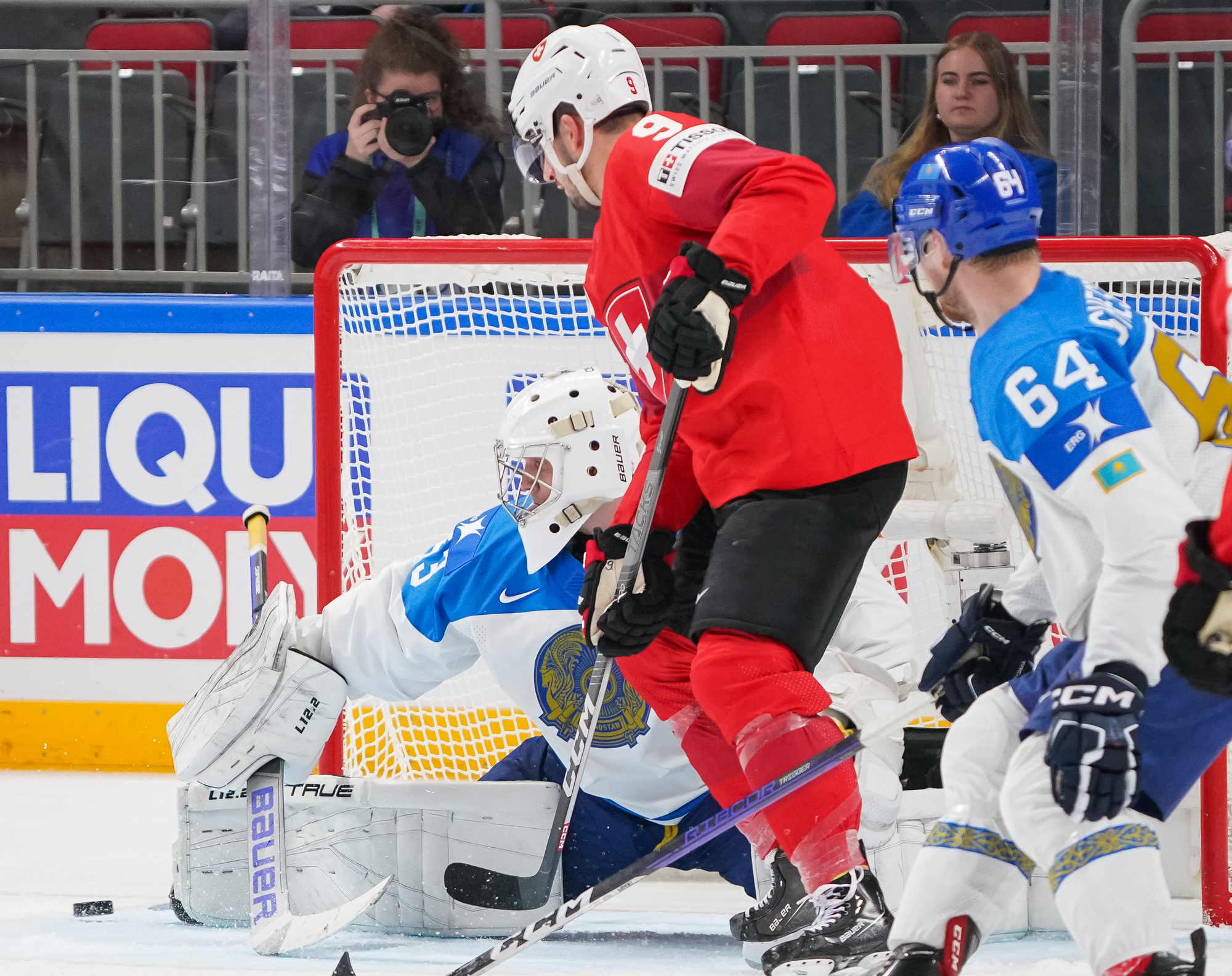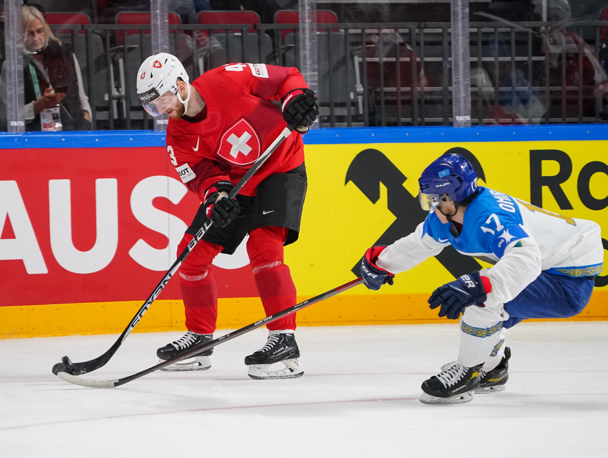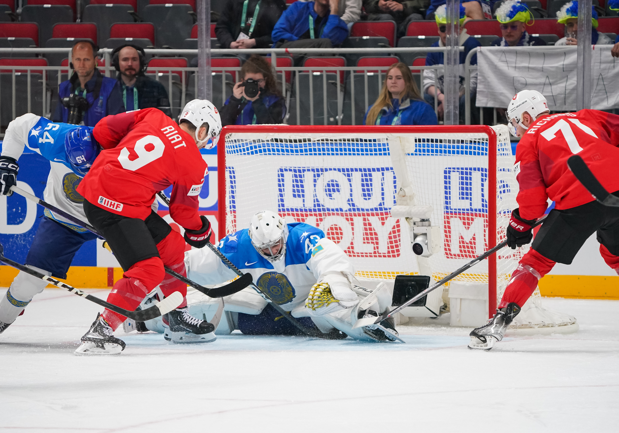 Buoyed by two wins by shutout and by the additions of Kevin Fiala and Damien Riat, the Swiss came out flying, outshooting the Kazakhs 17-4 in the opening period and firing on all cylinders. They also got the early goal, at 4:48, to give them added momentum.