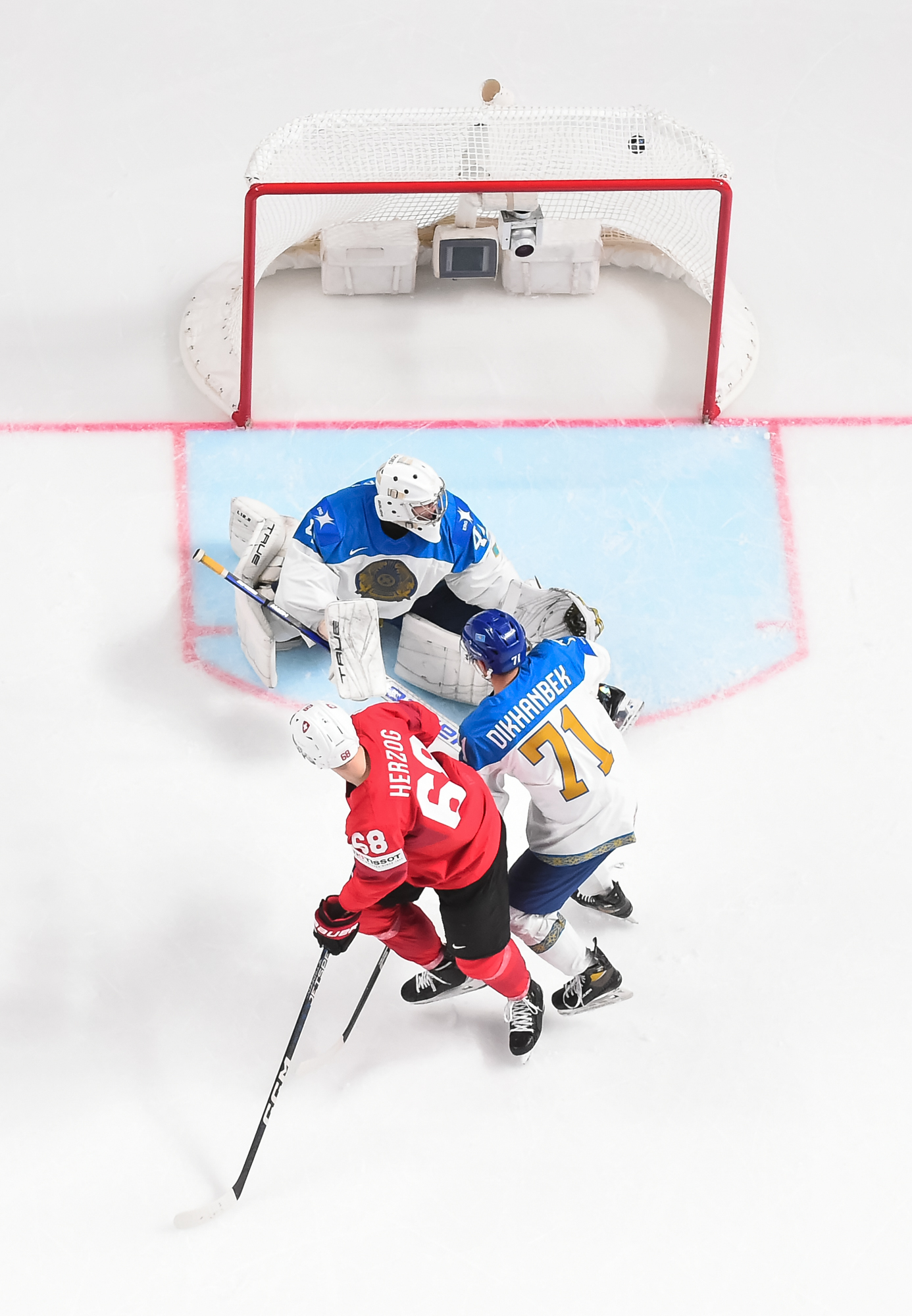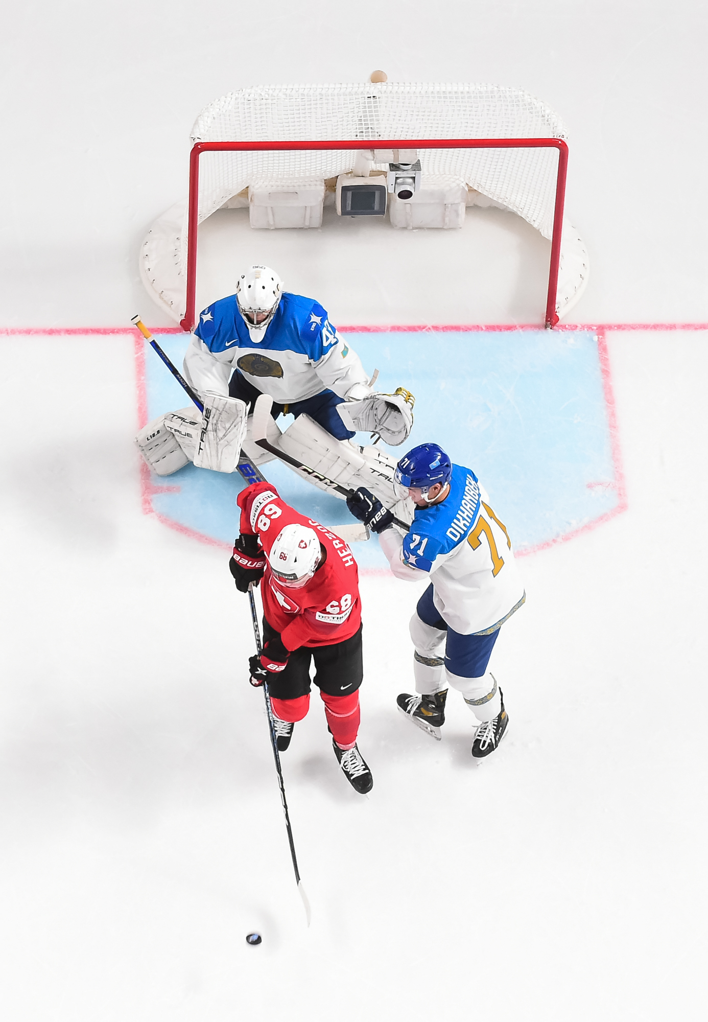No matter. They got that one back just 44 seconds into the third on a power play. Nino Niederreiter drew the penalty, then scored the goal. Standing in the middle of the Kazakh box, he took a pass from the side from Denis Malgin, and fired a one-timer in.